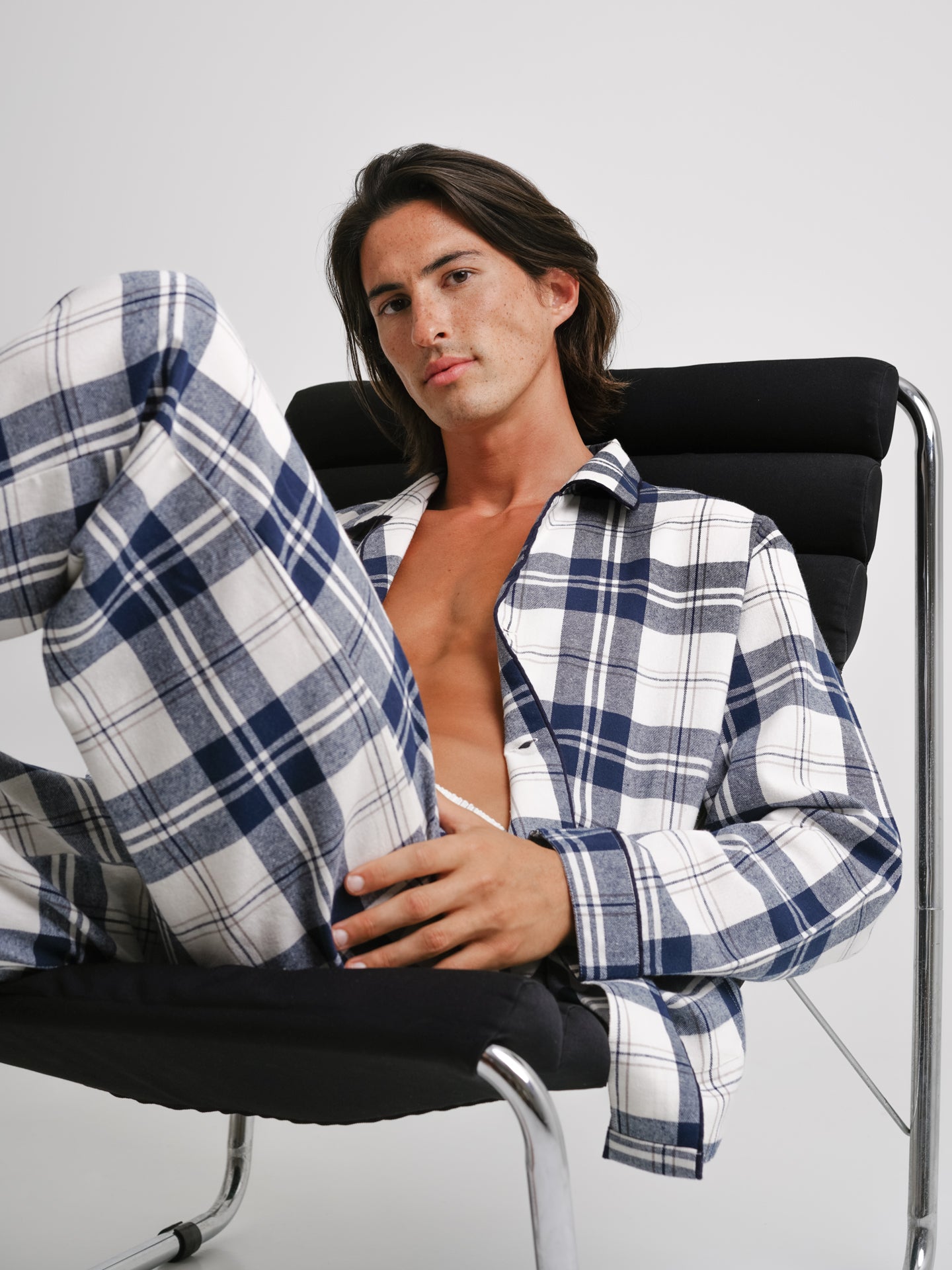 Pijama desportivo quadrados azul e vermelho