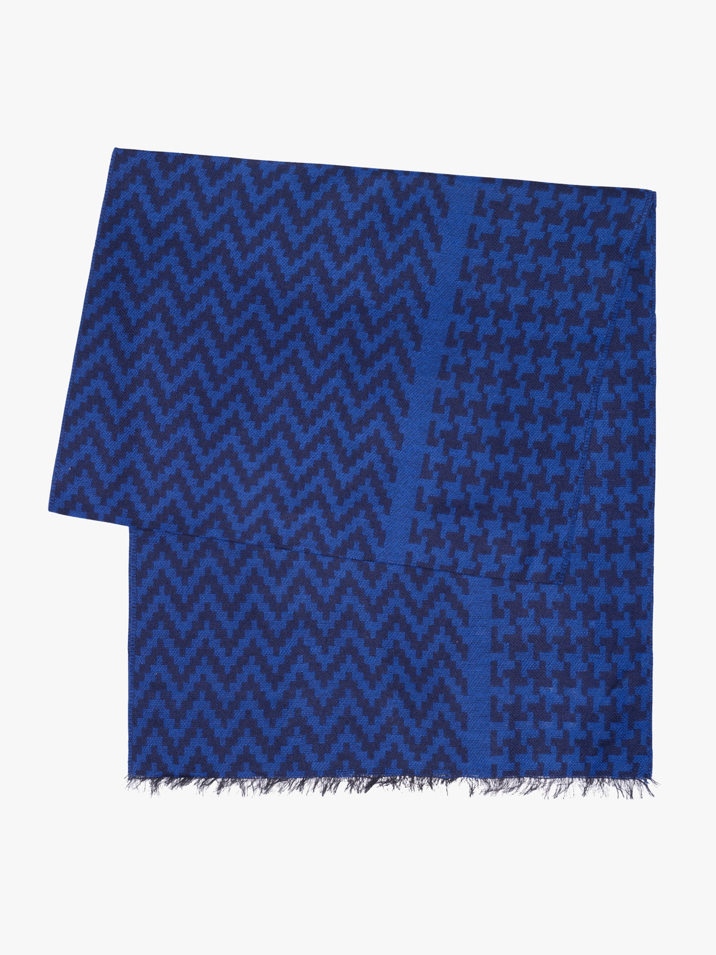 Cachecol Lã riscas grossas azul escuro e cinzento