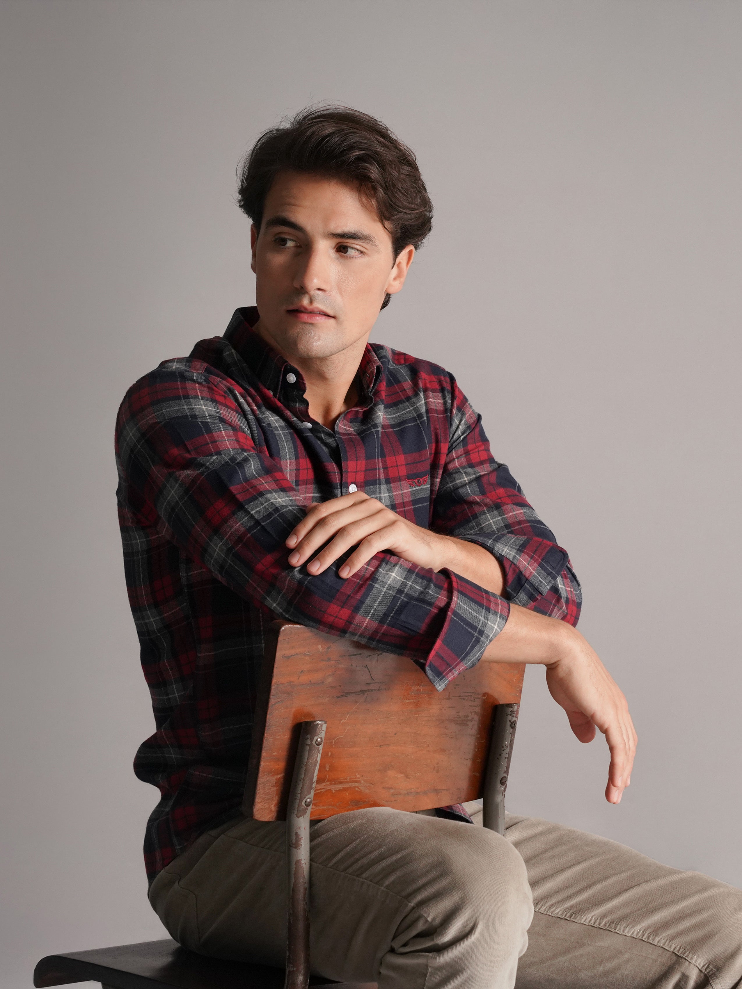Camisa Flanela Vermelha Manga Comprida Regular Fit