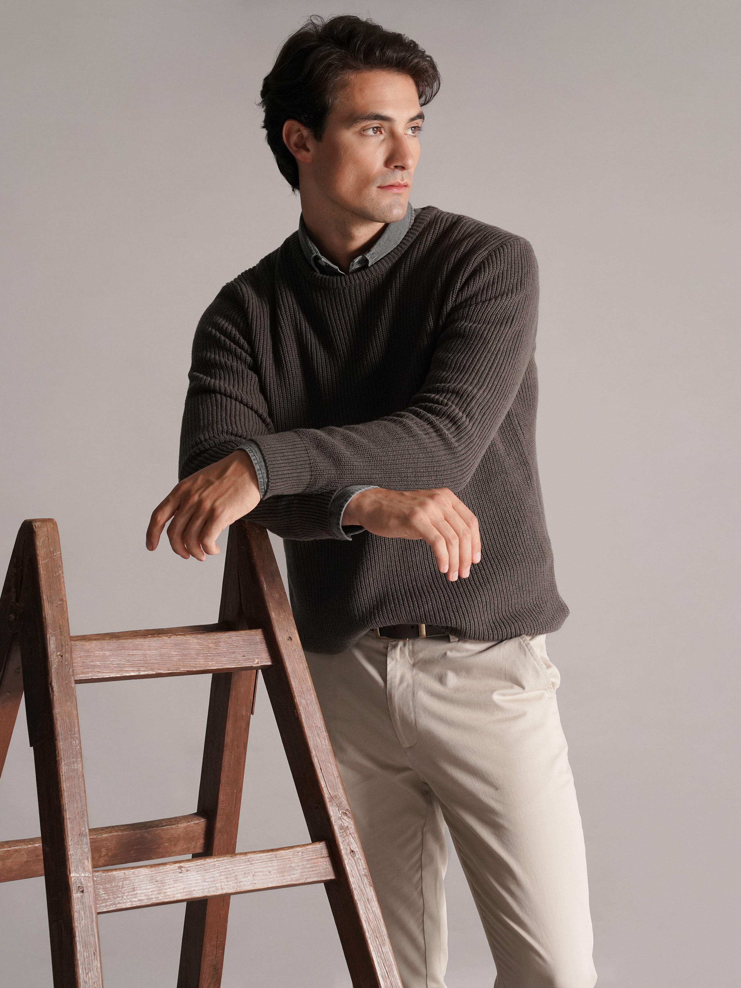 Pullover Caxemira Castanho Com Cotoveleira Regular Fit