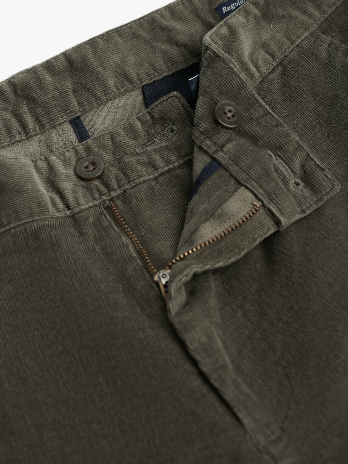 Calças Bombazine Regular Fit Verdes De Algodão Lisas