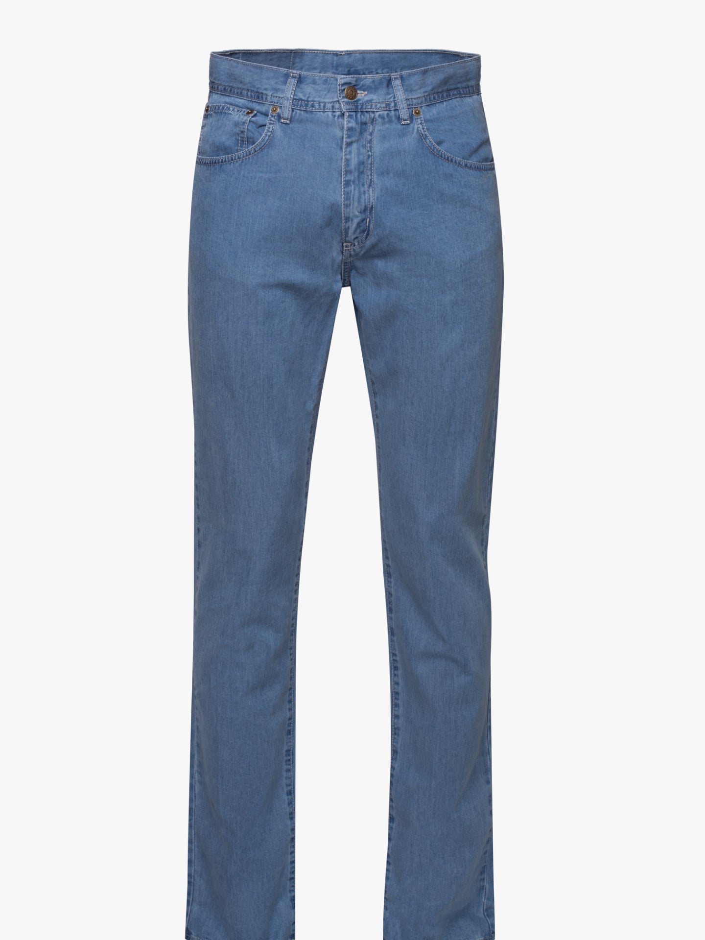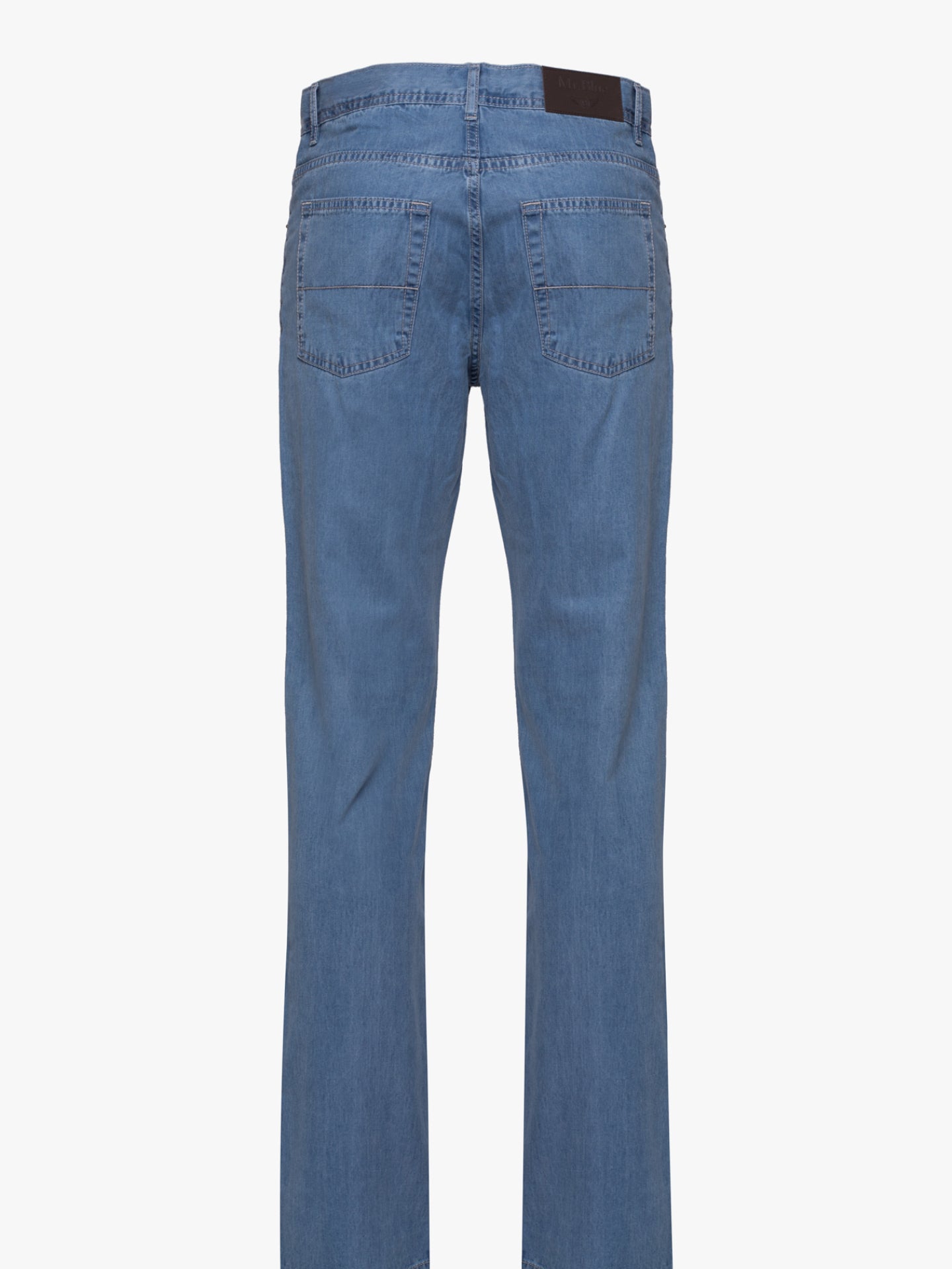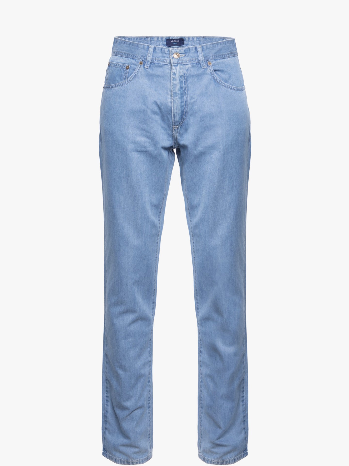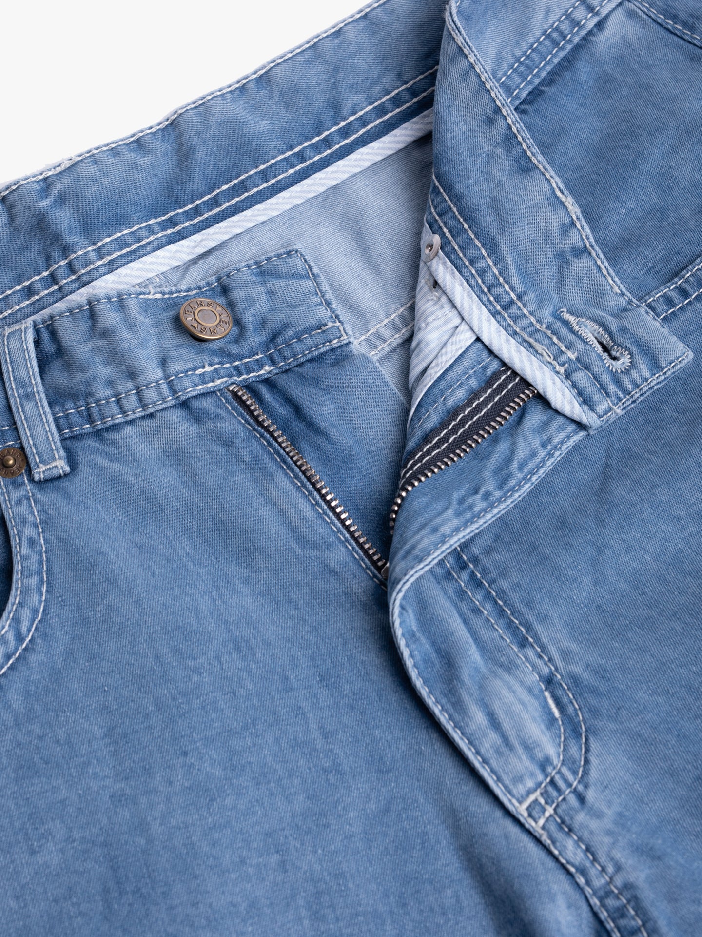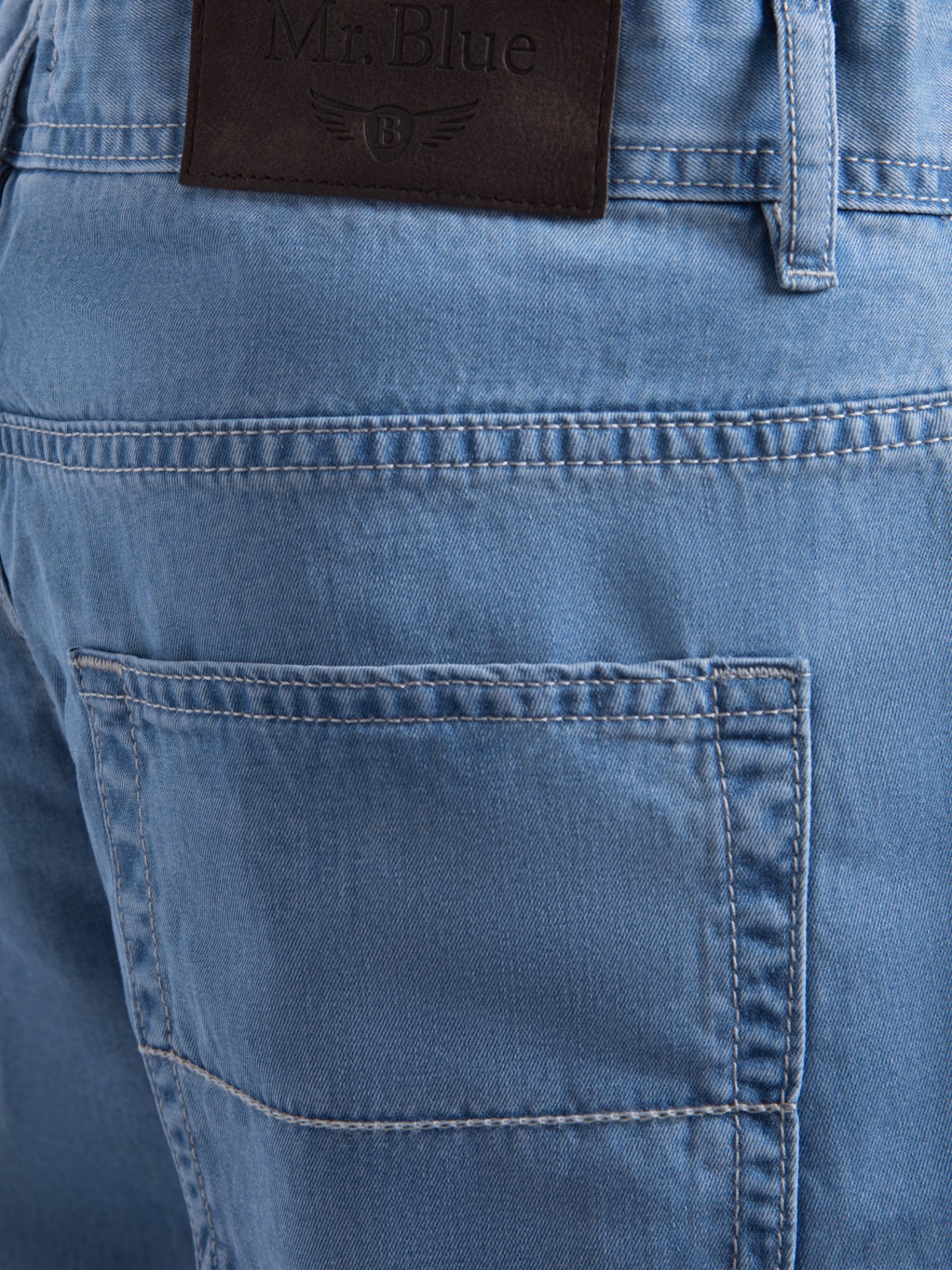 Calças de ganga cintura subida azul claro em tencel e algodão