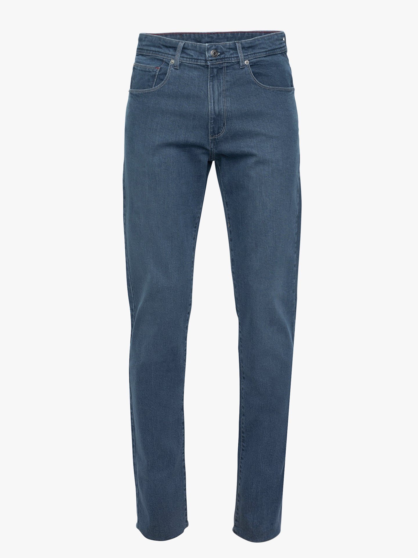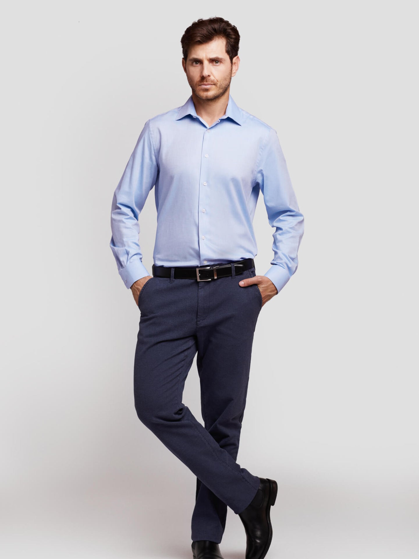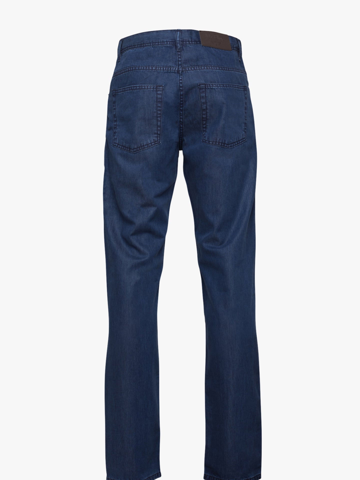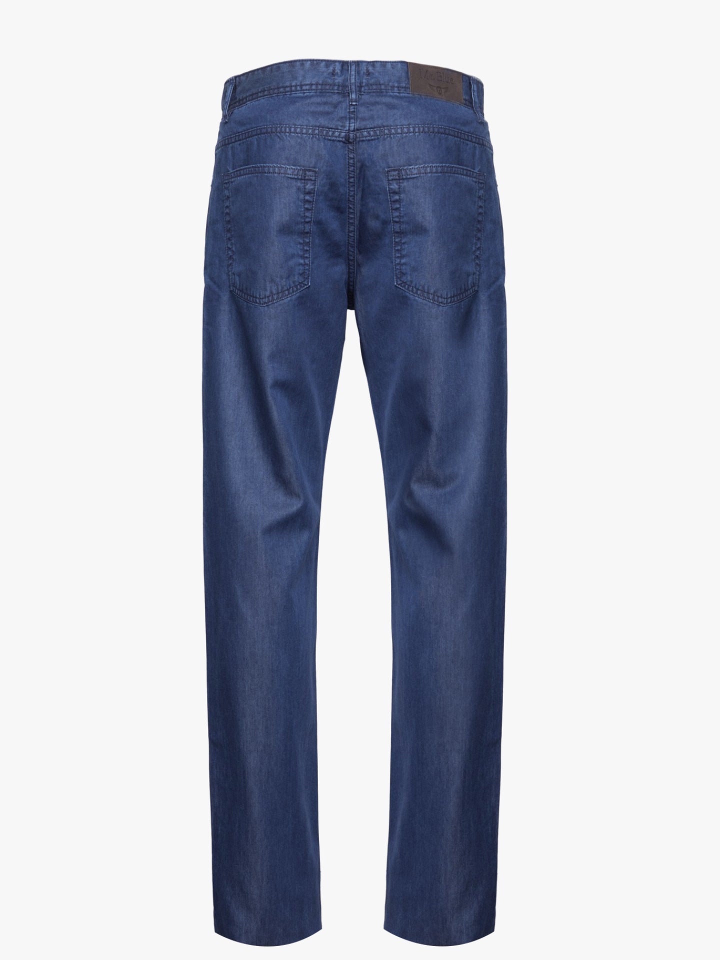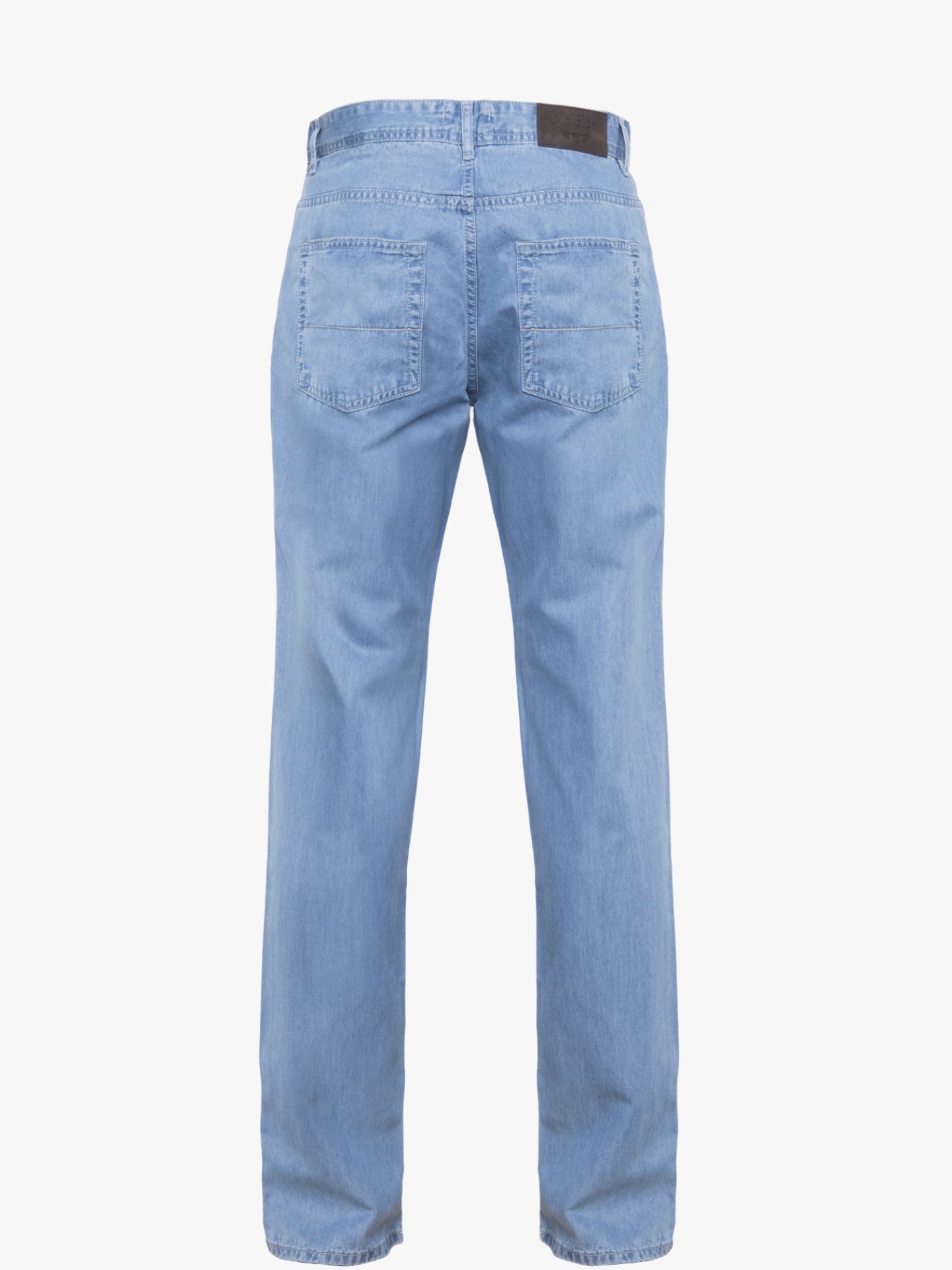 Calças de ganga cintura subida azul claro em tencel e algodão