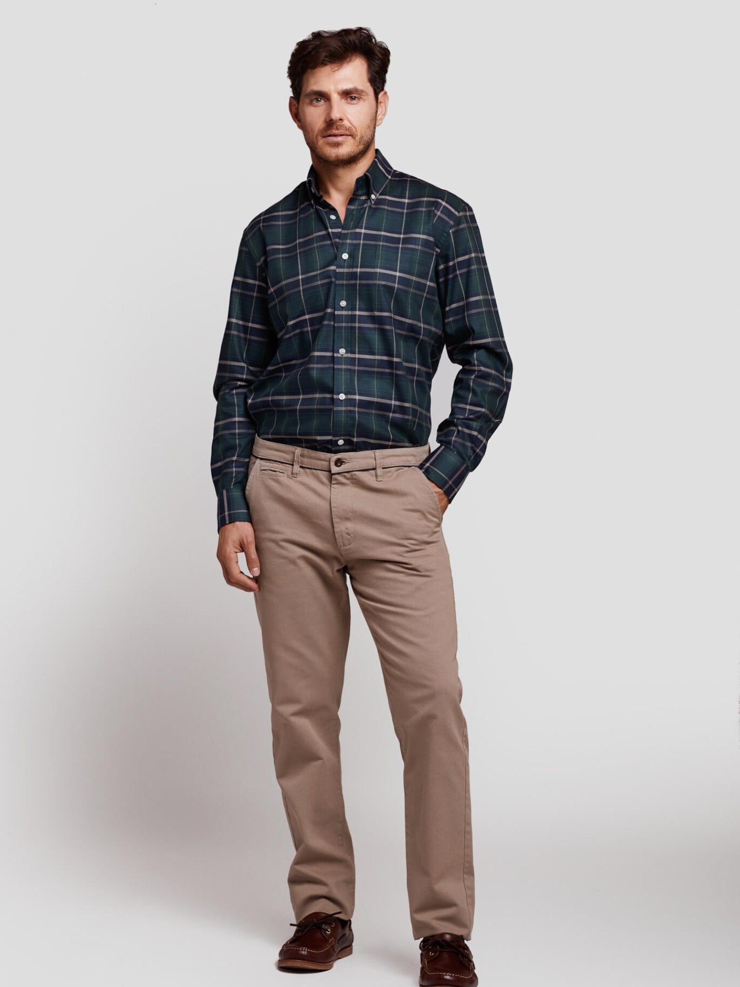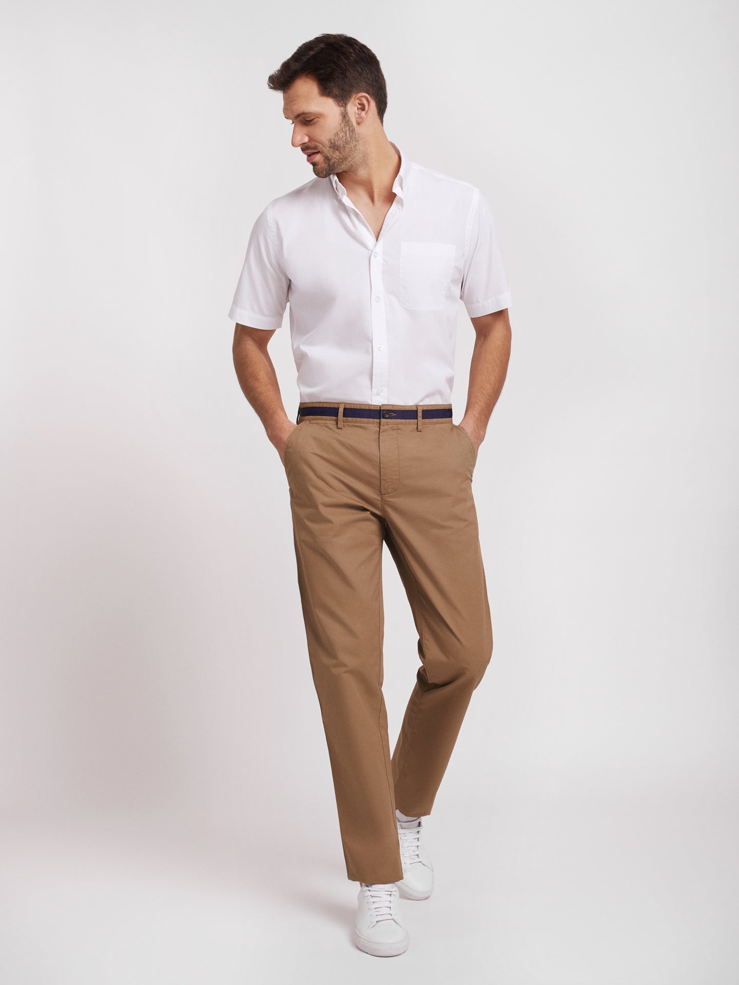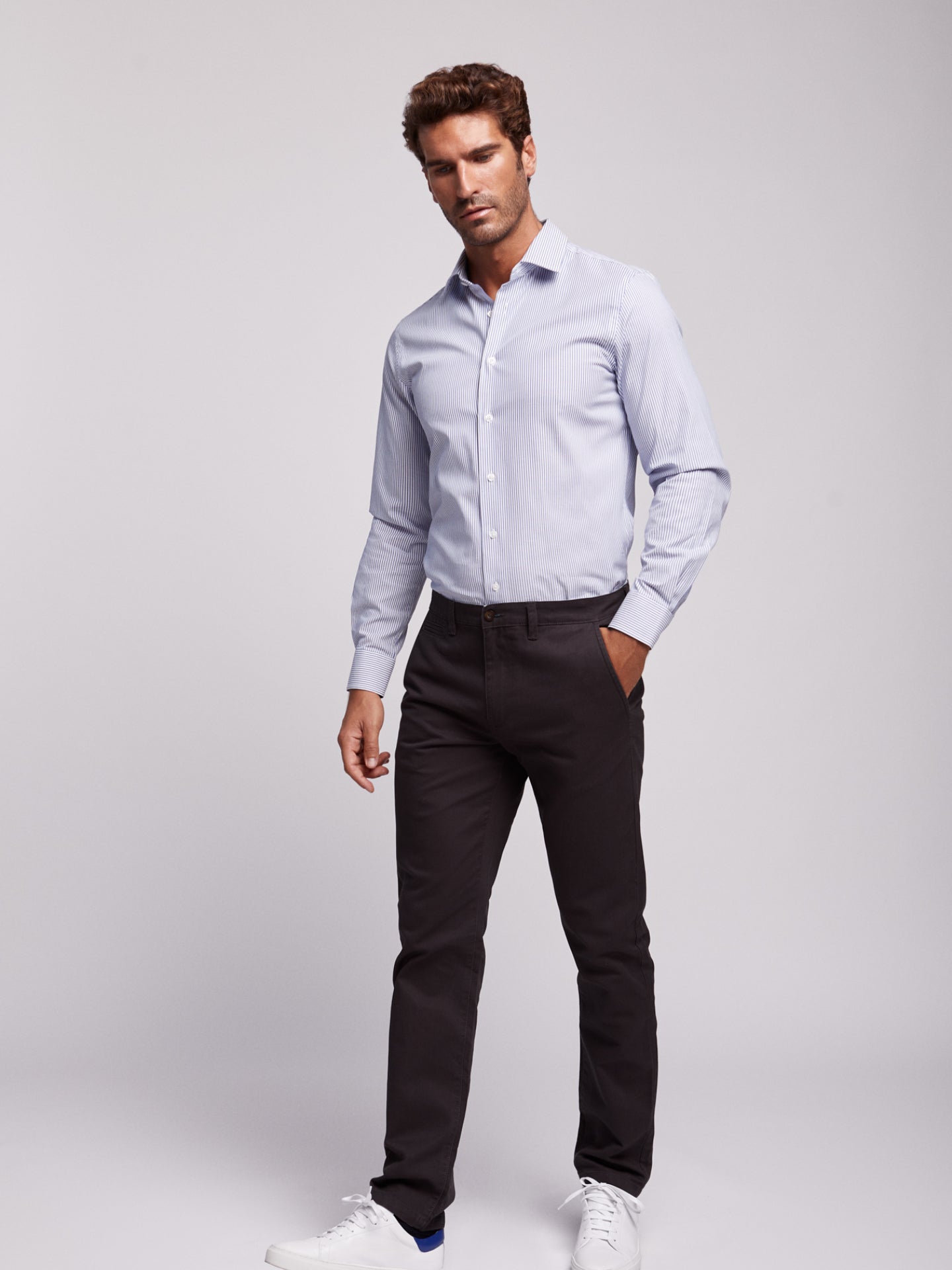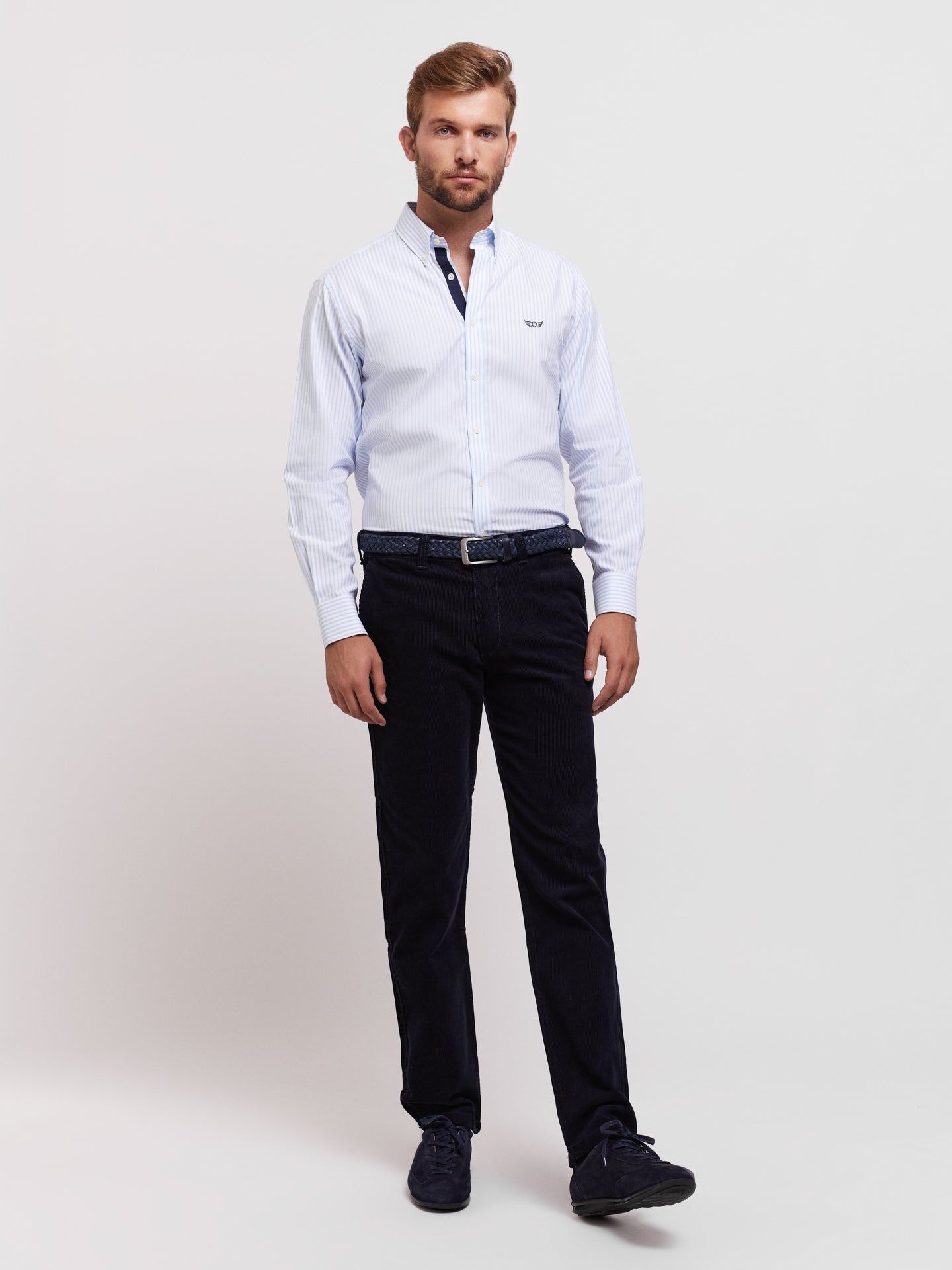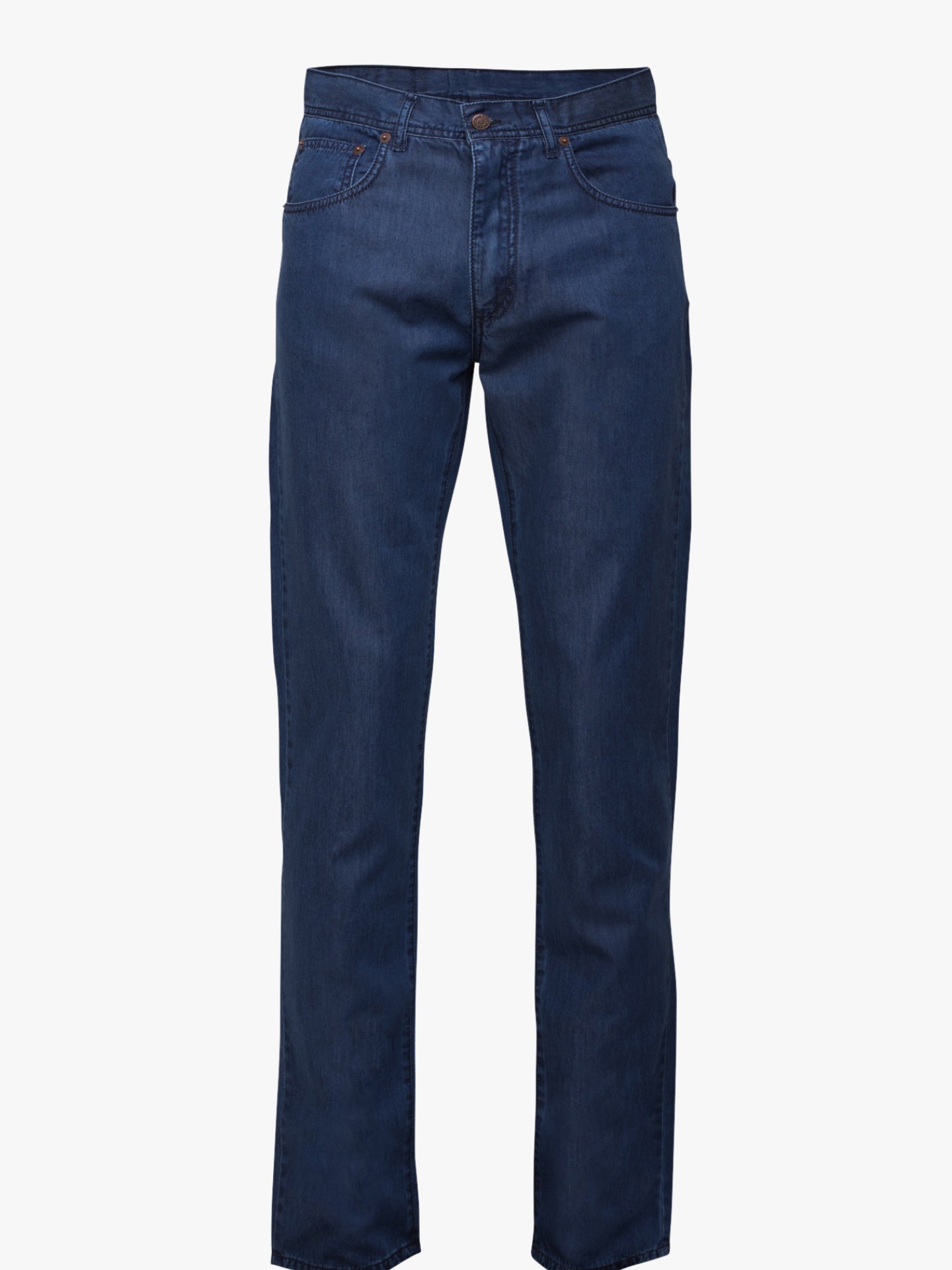 Calças de ganga cintura subida azul claro em tencel e algodão