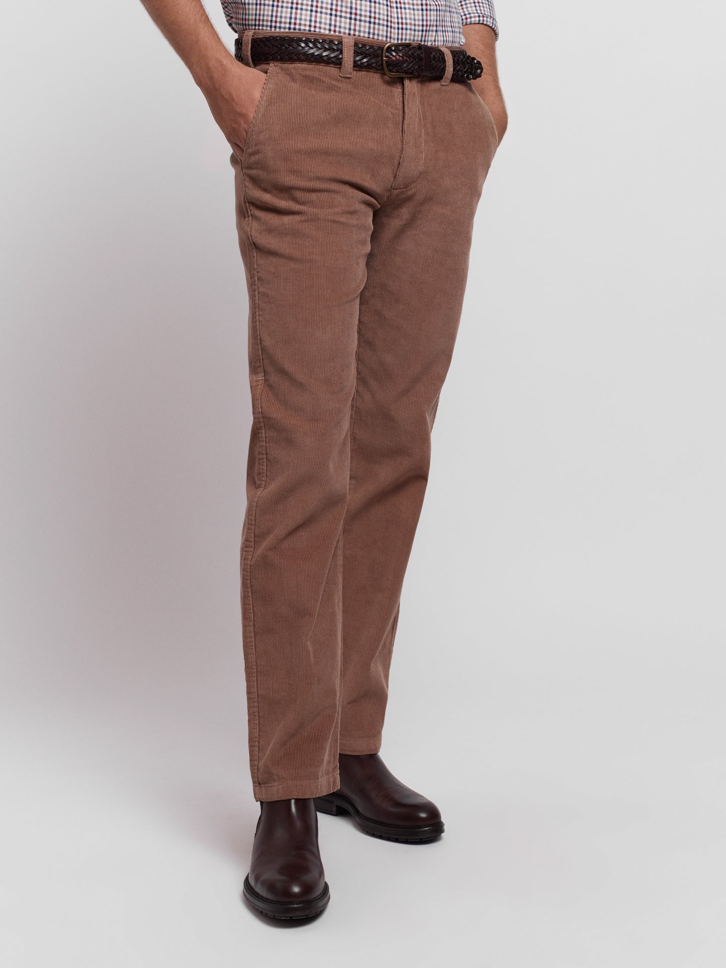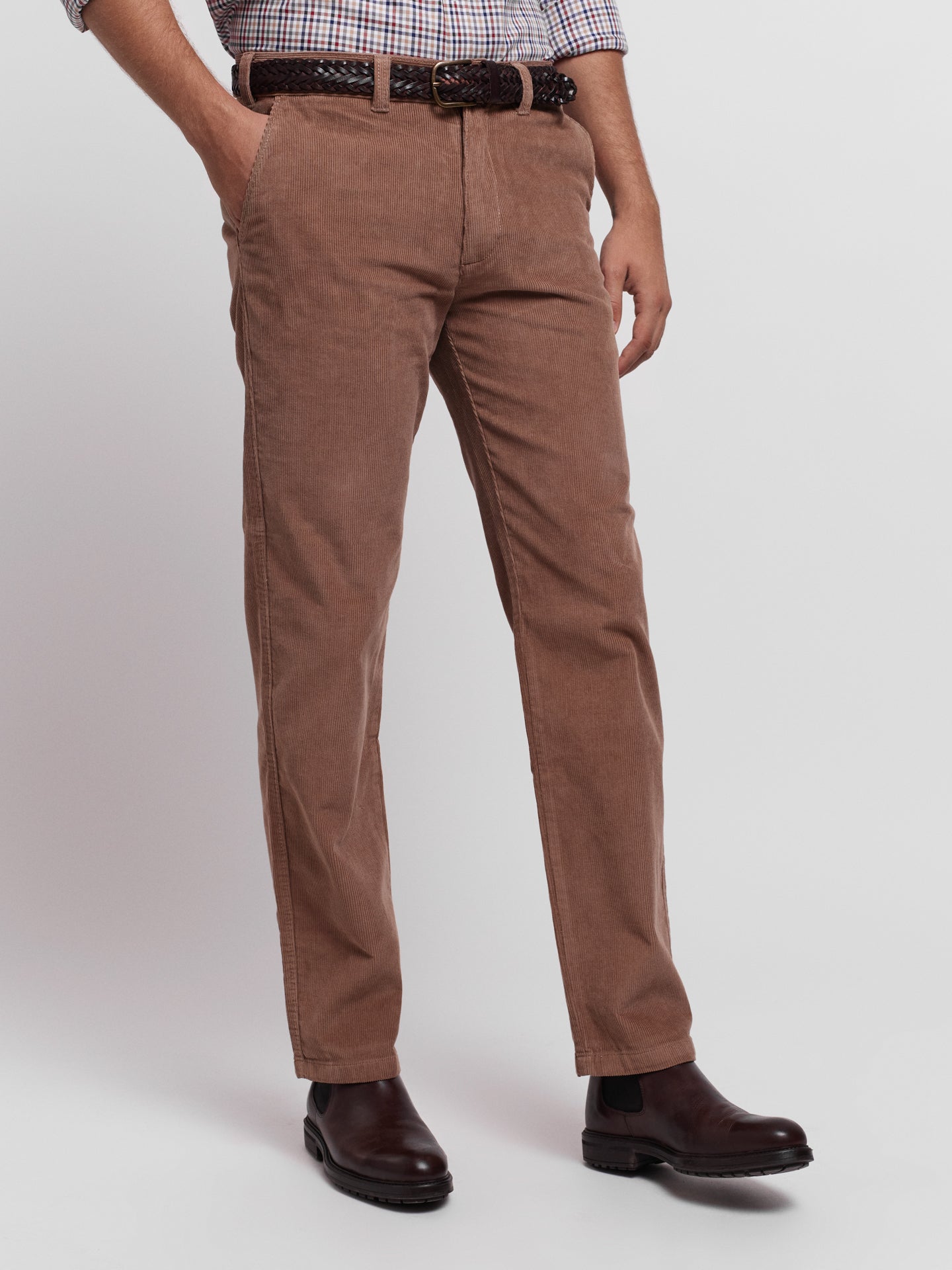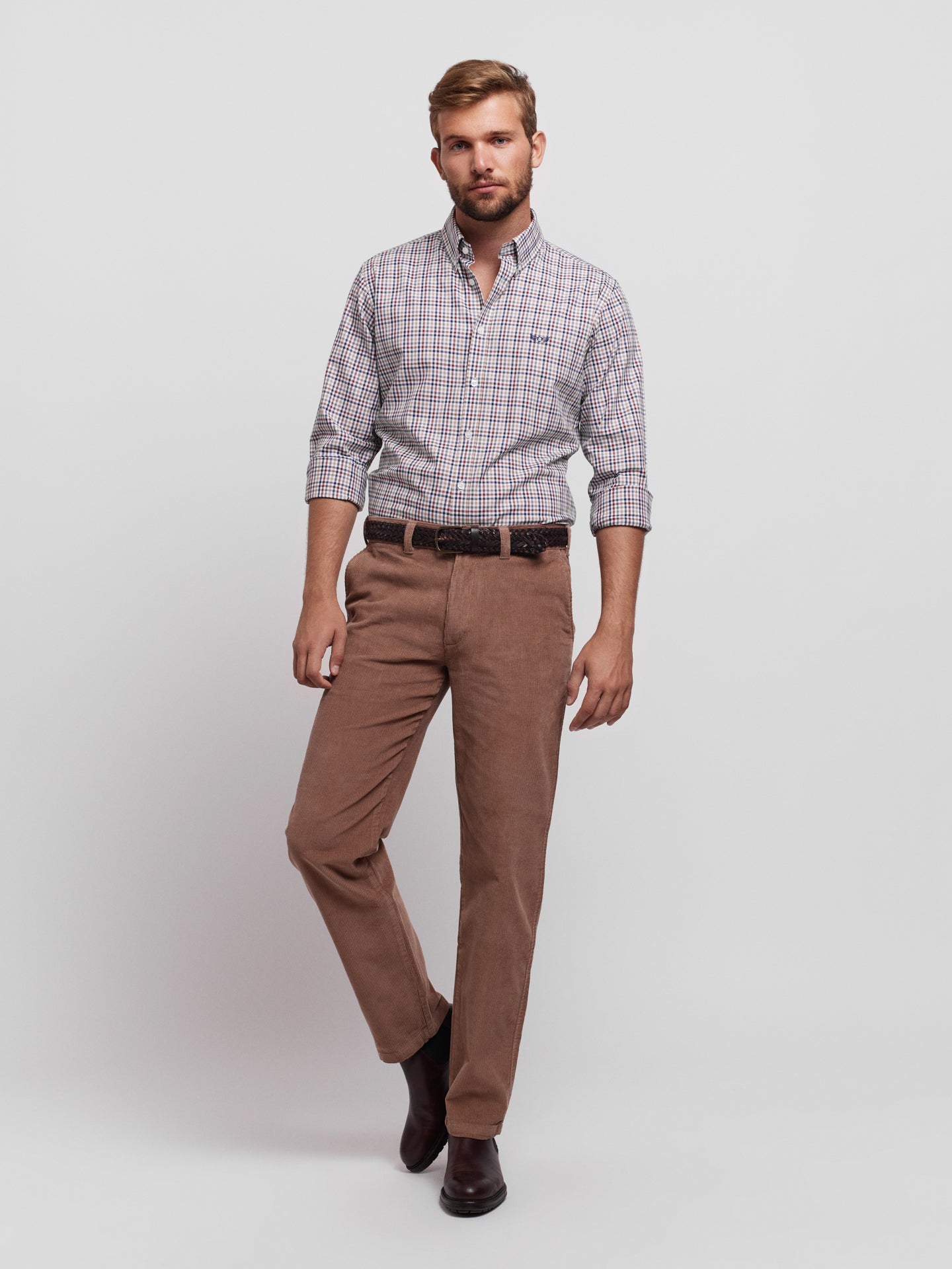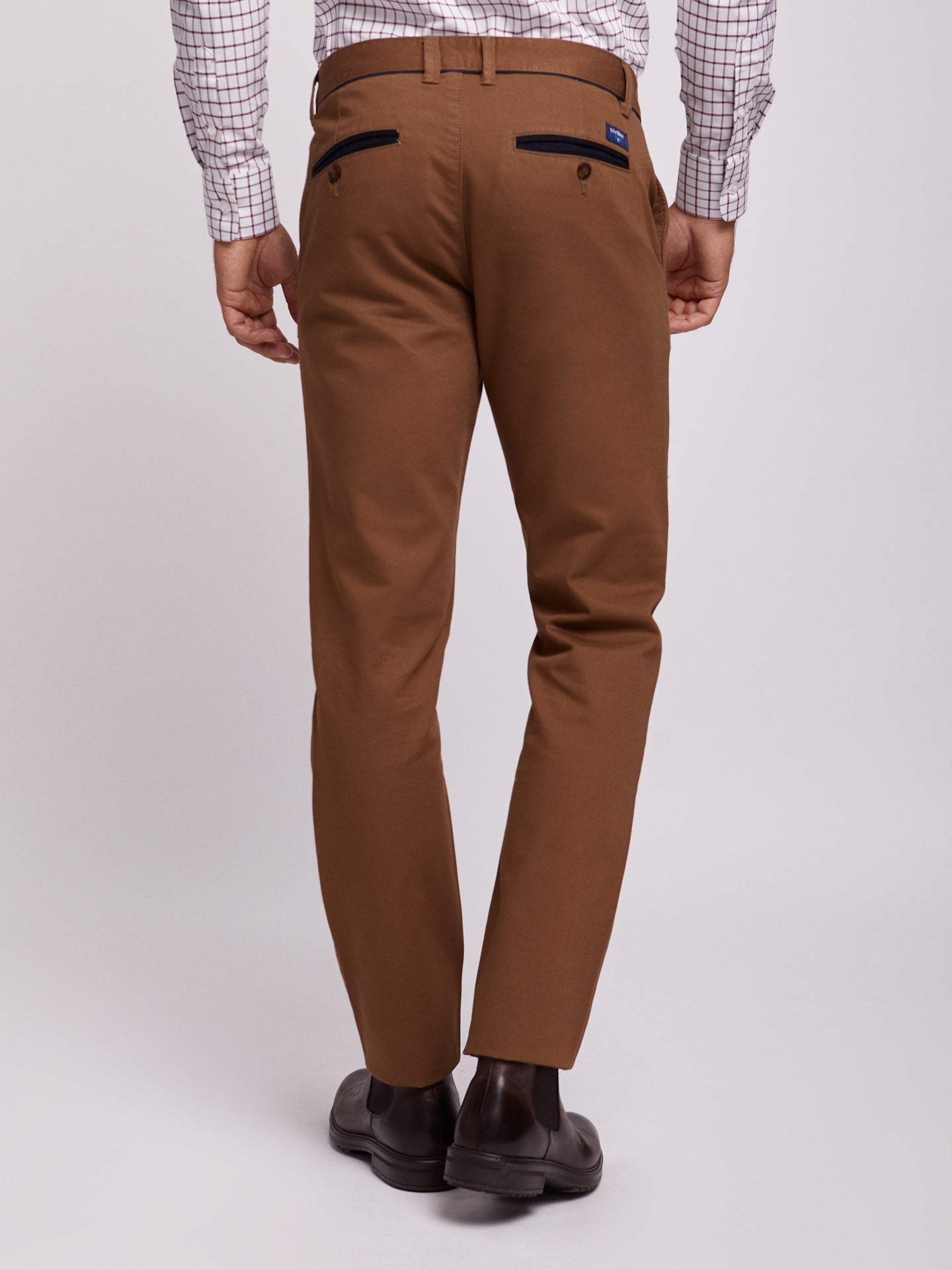 Calças chino camel 100% algodão