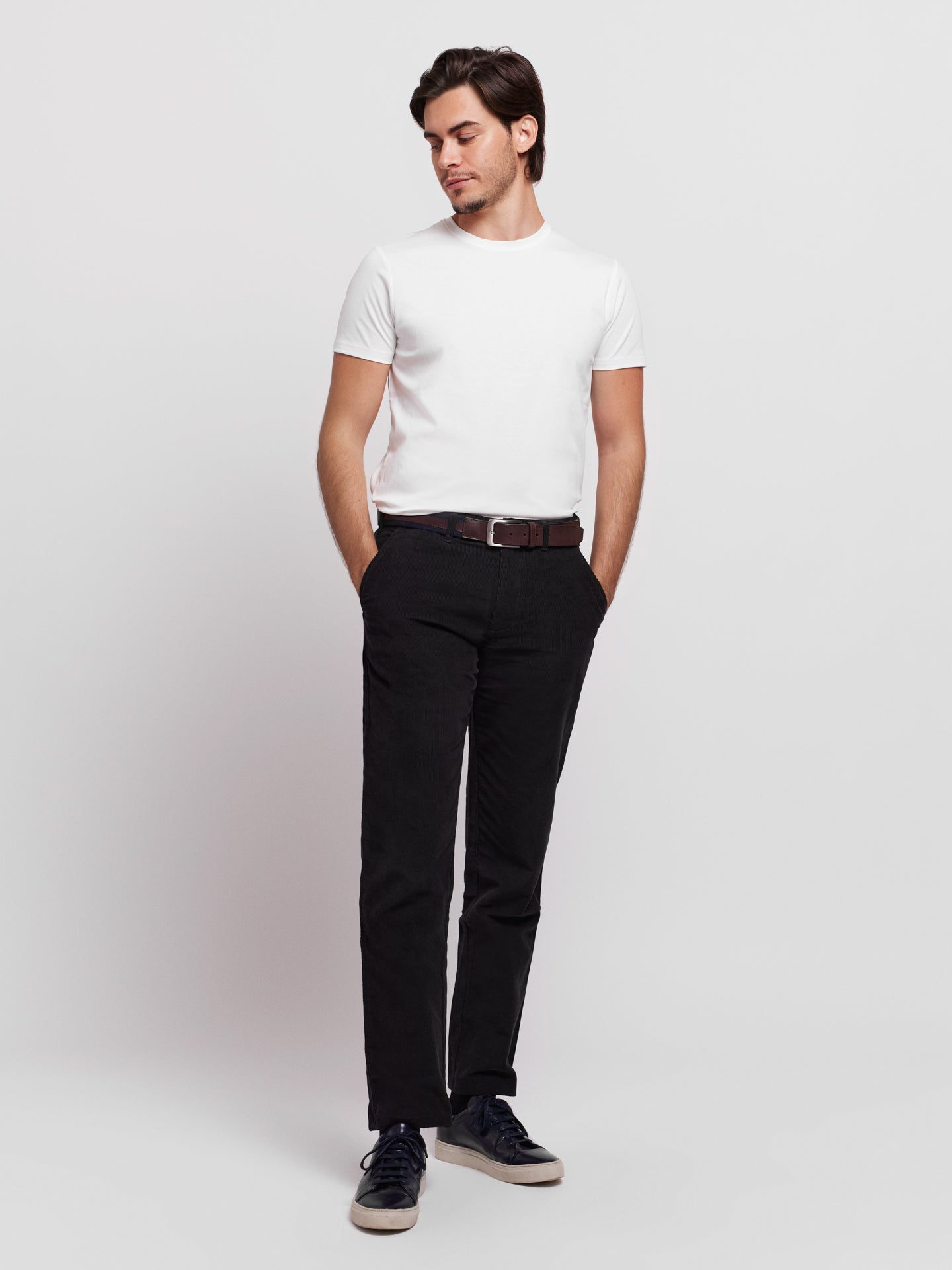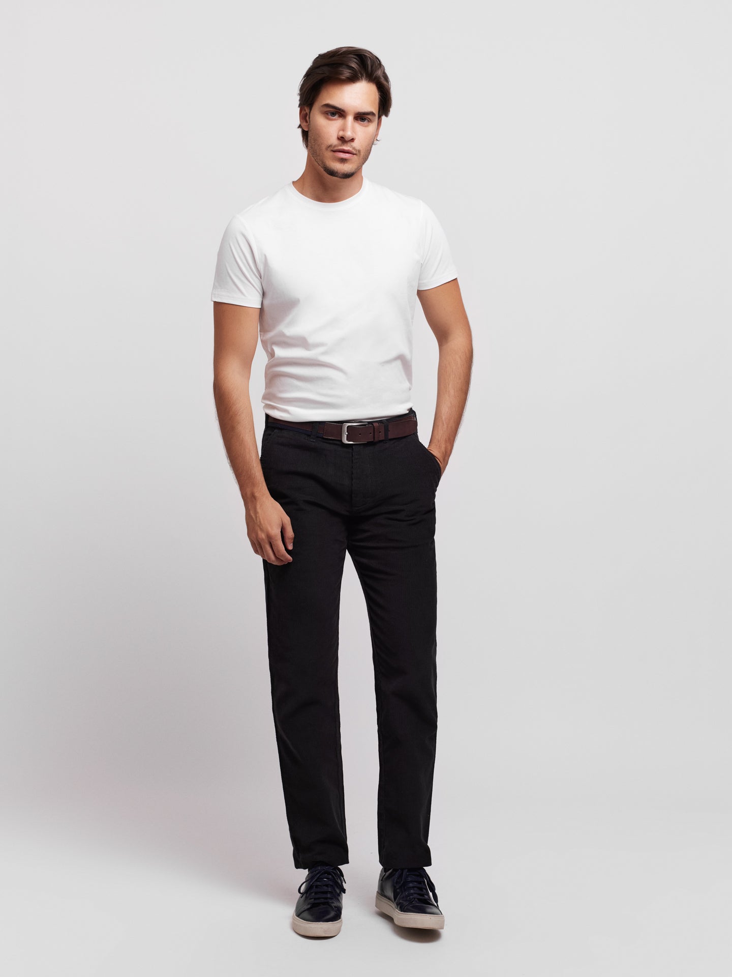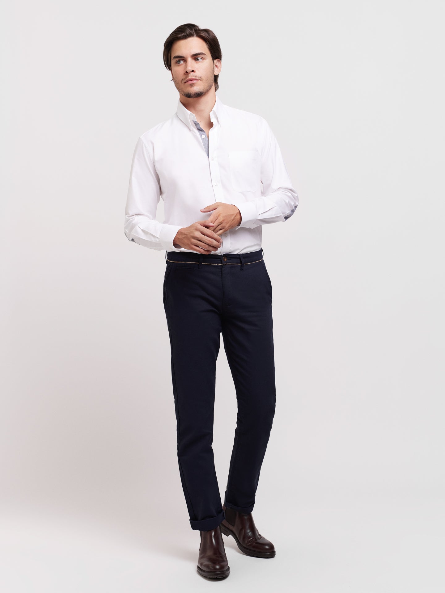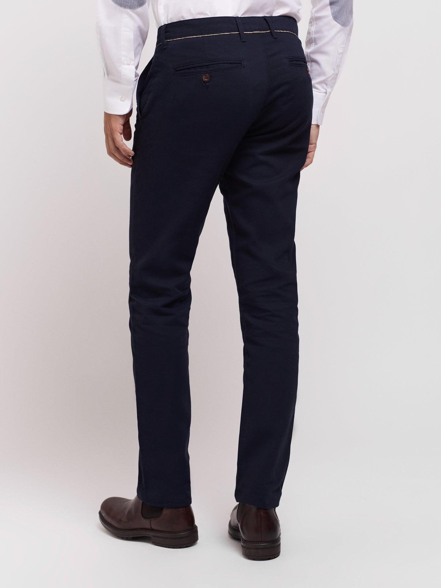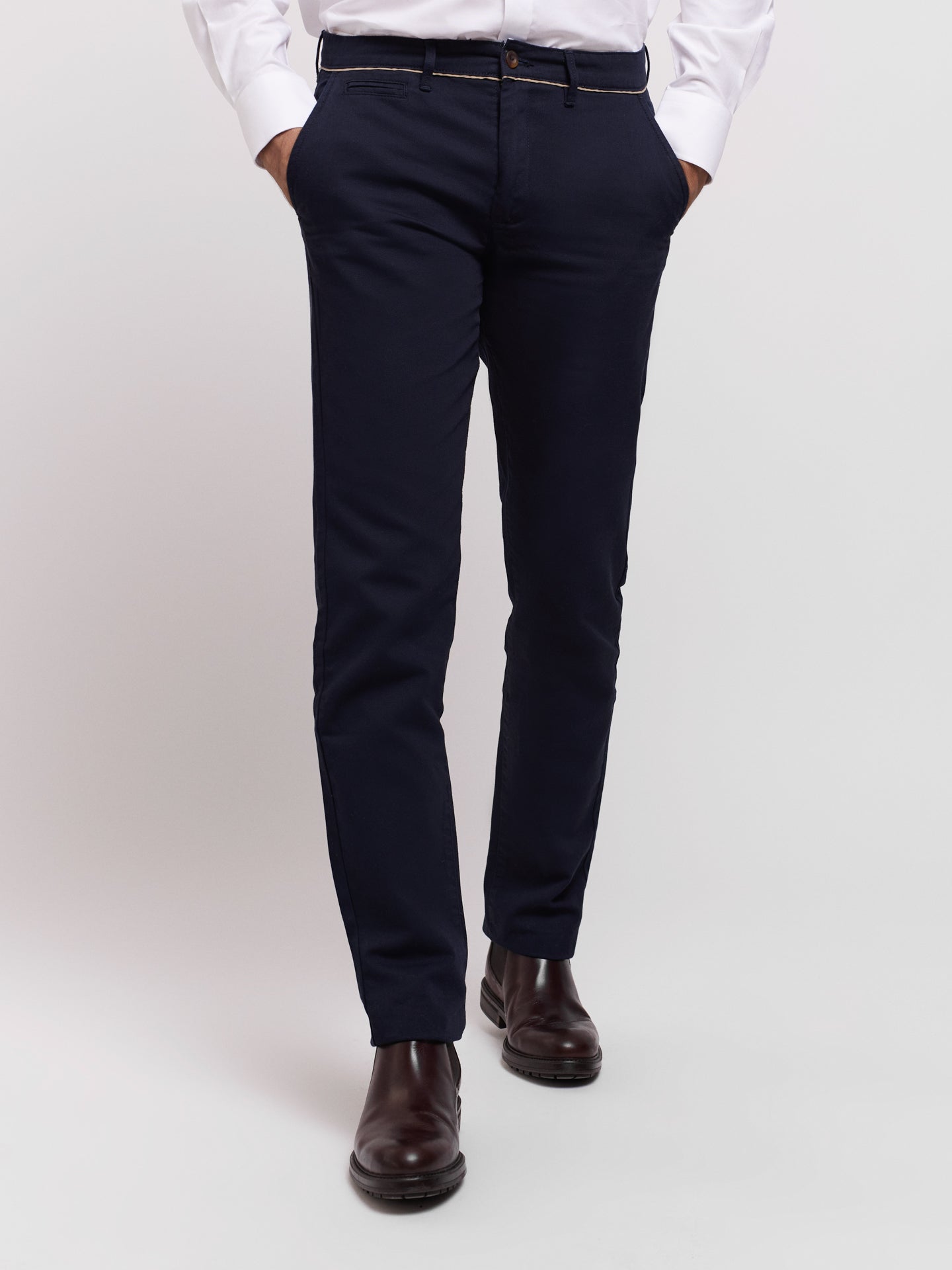 Calças chino azul escuro 100% algodão