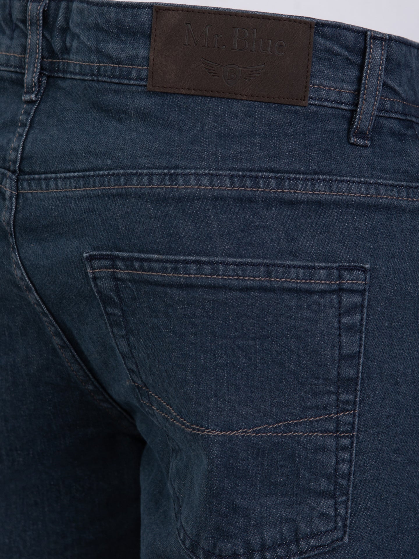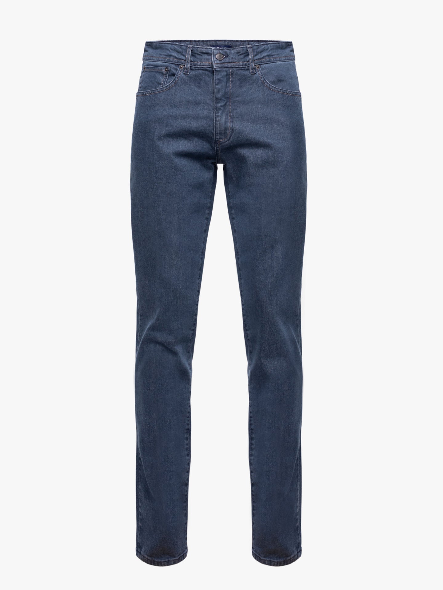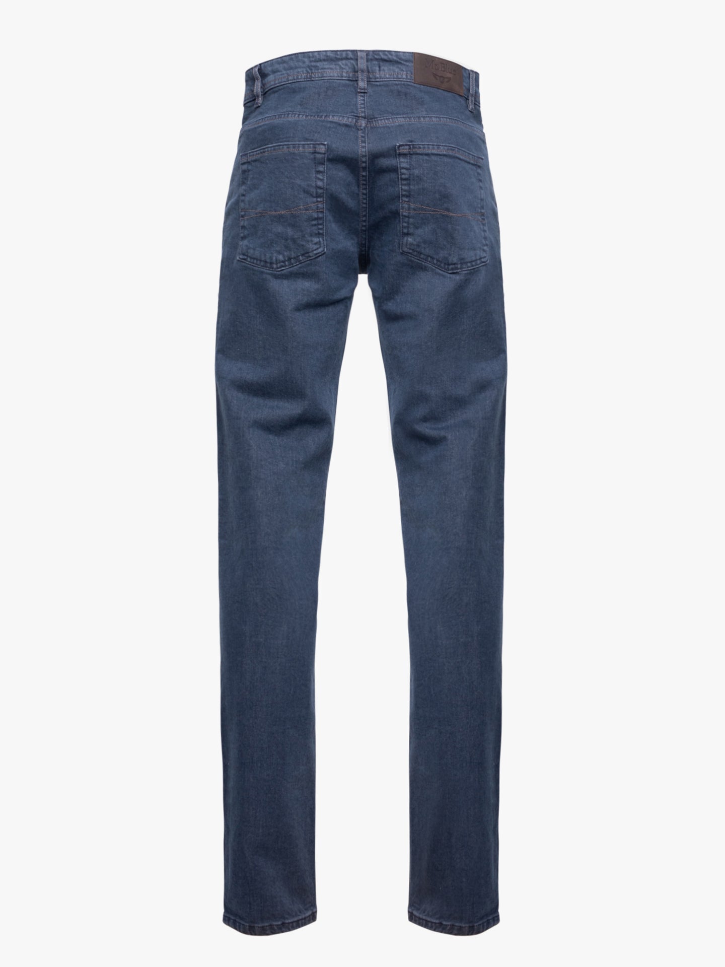 Calças de ganga stone wash azul escuro cintura subida