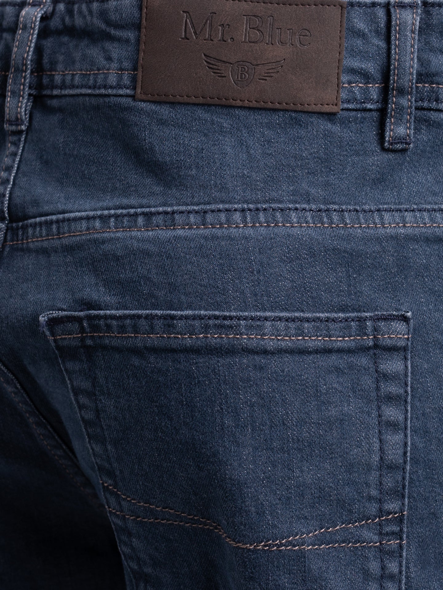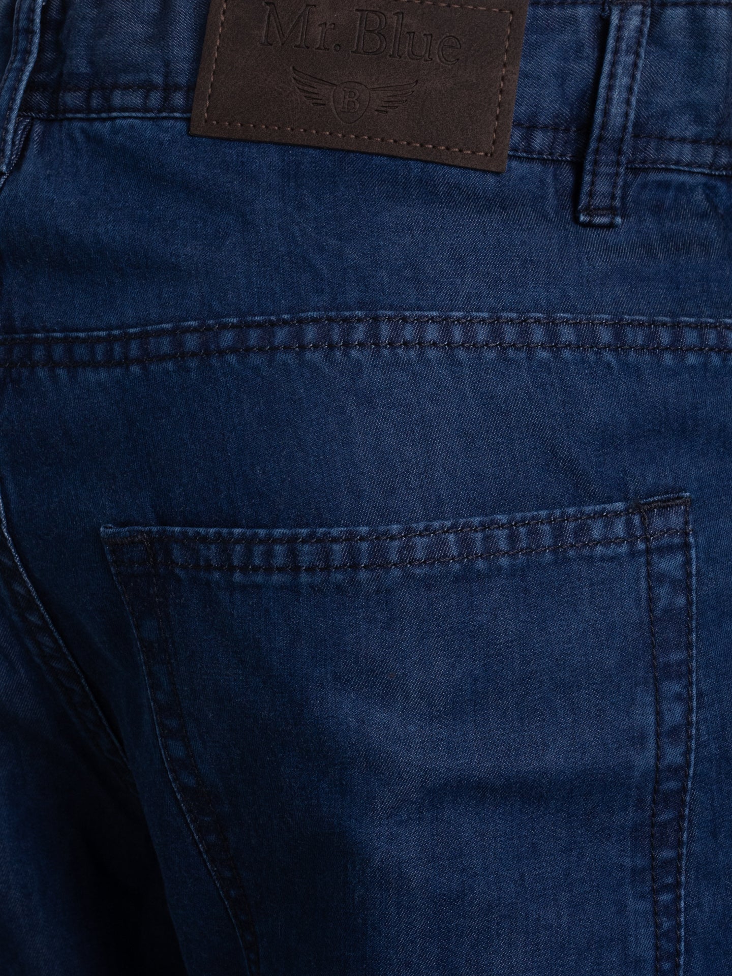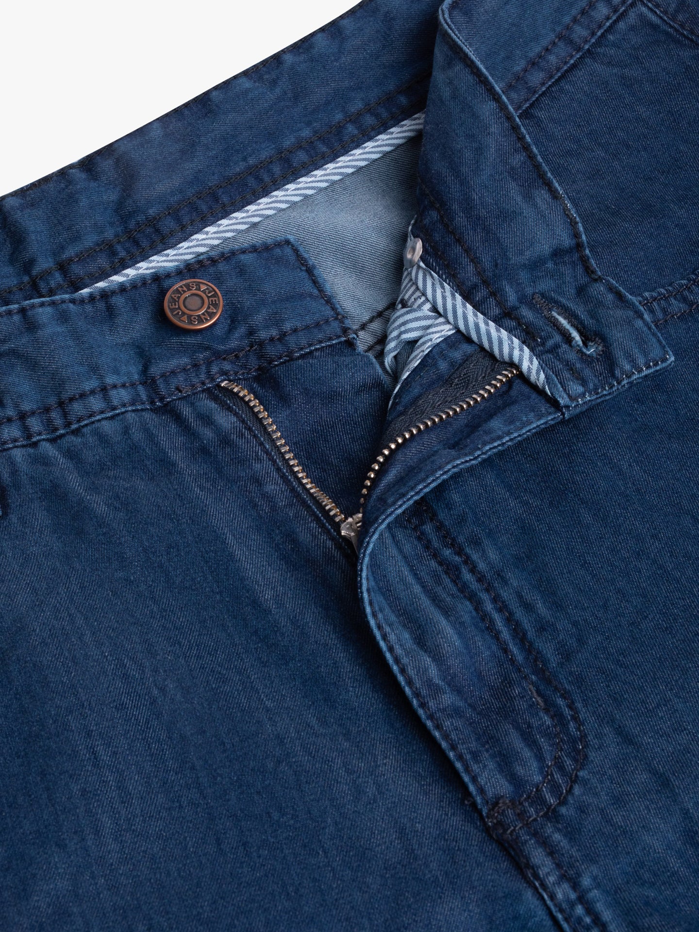 Calças de ganga stone wash azul escuro cintura subida