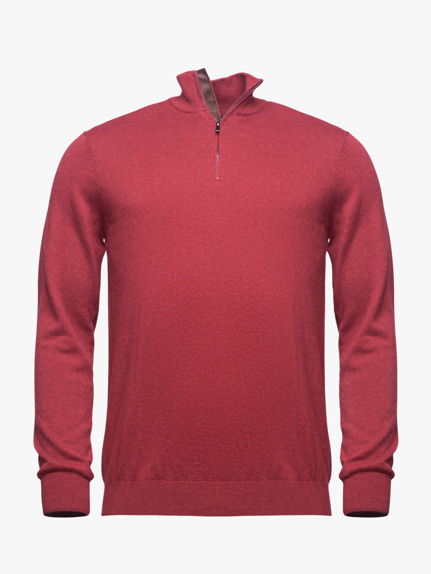 Camisola algodão e caxemira gola com fecho liso vermelho médio
