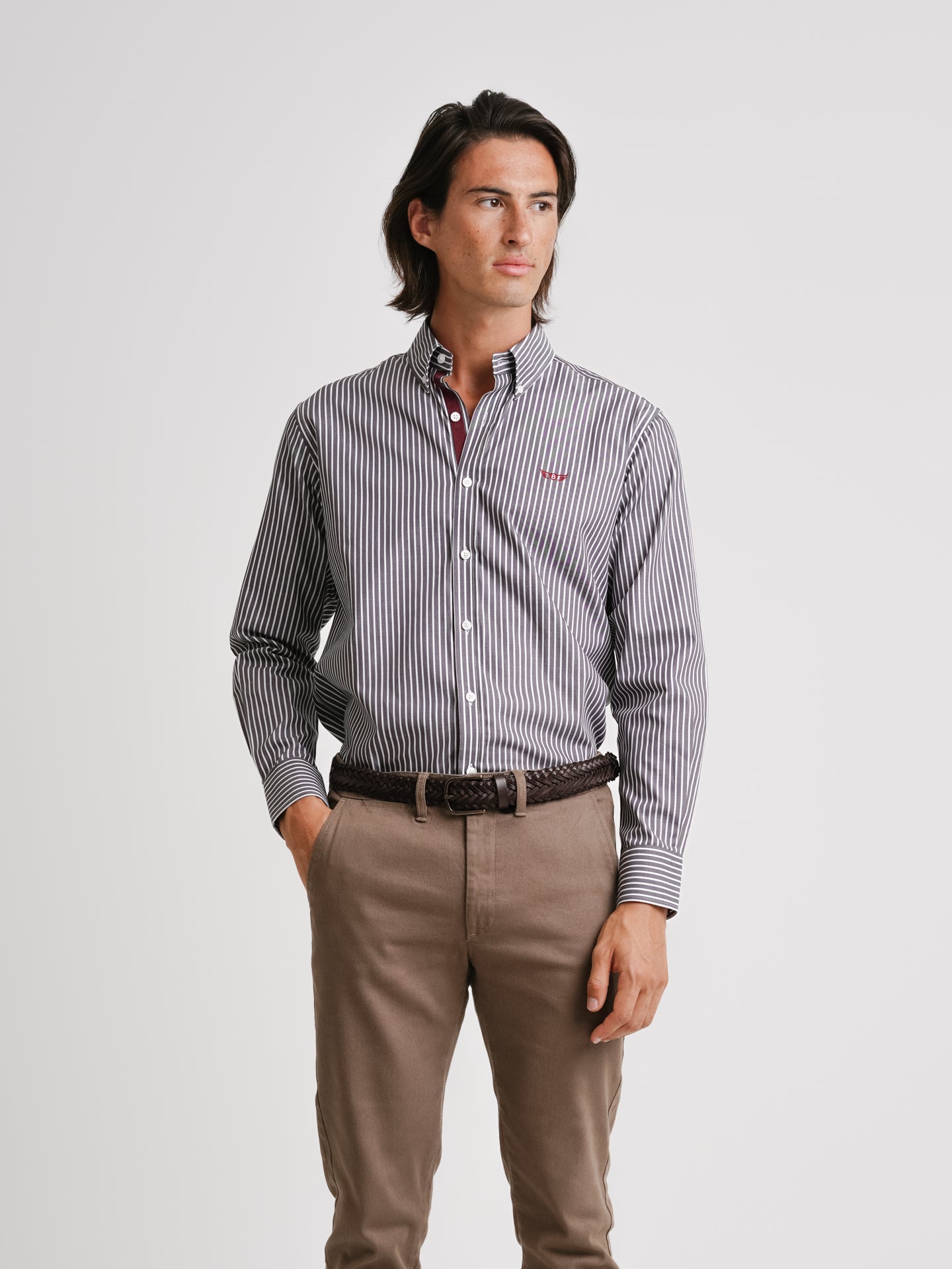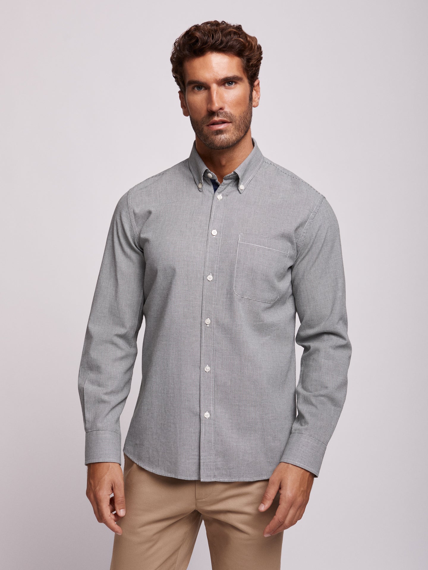 Camisa Tailored Fit Cinzenta Manga Comprida