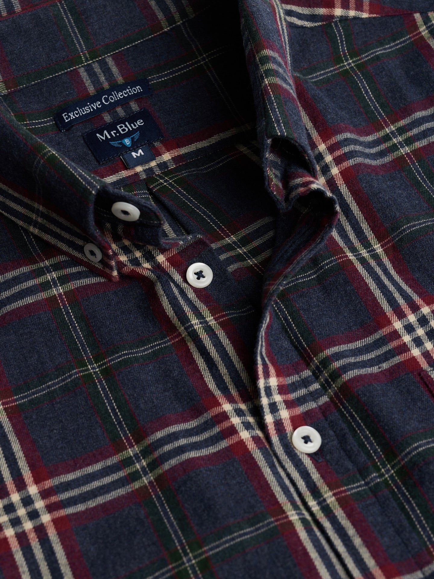 Camisa Regular Fit Flanela Azul Algodão Quadrados