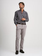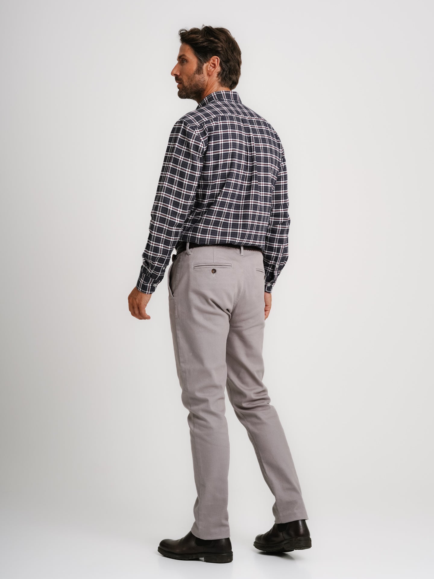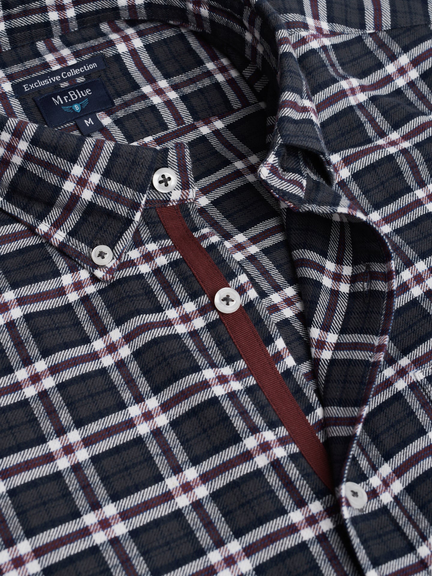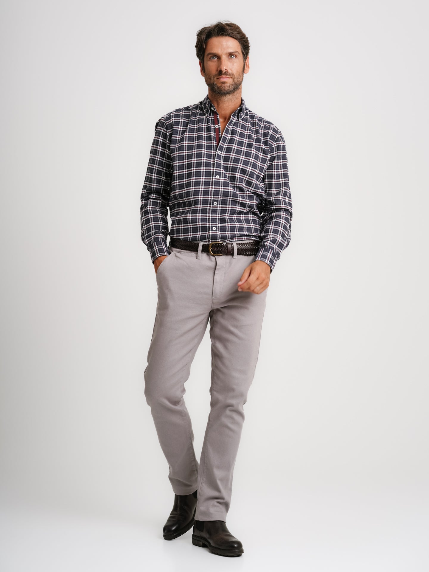 Camisa Regular Fit Flanela Cinzenta Algodão Quadrados