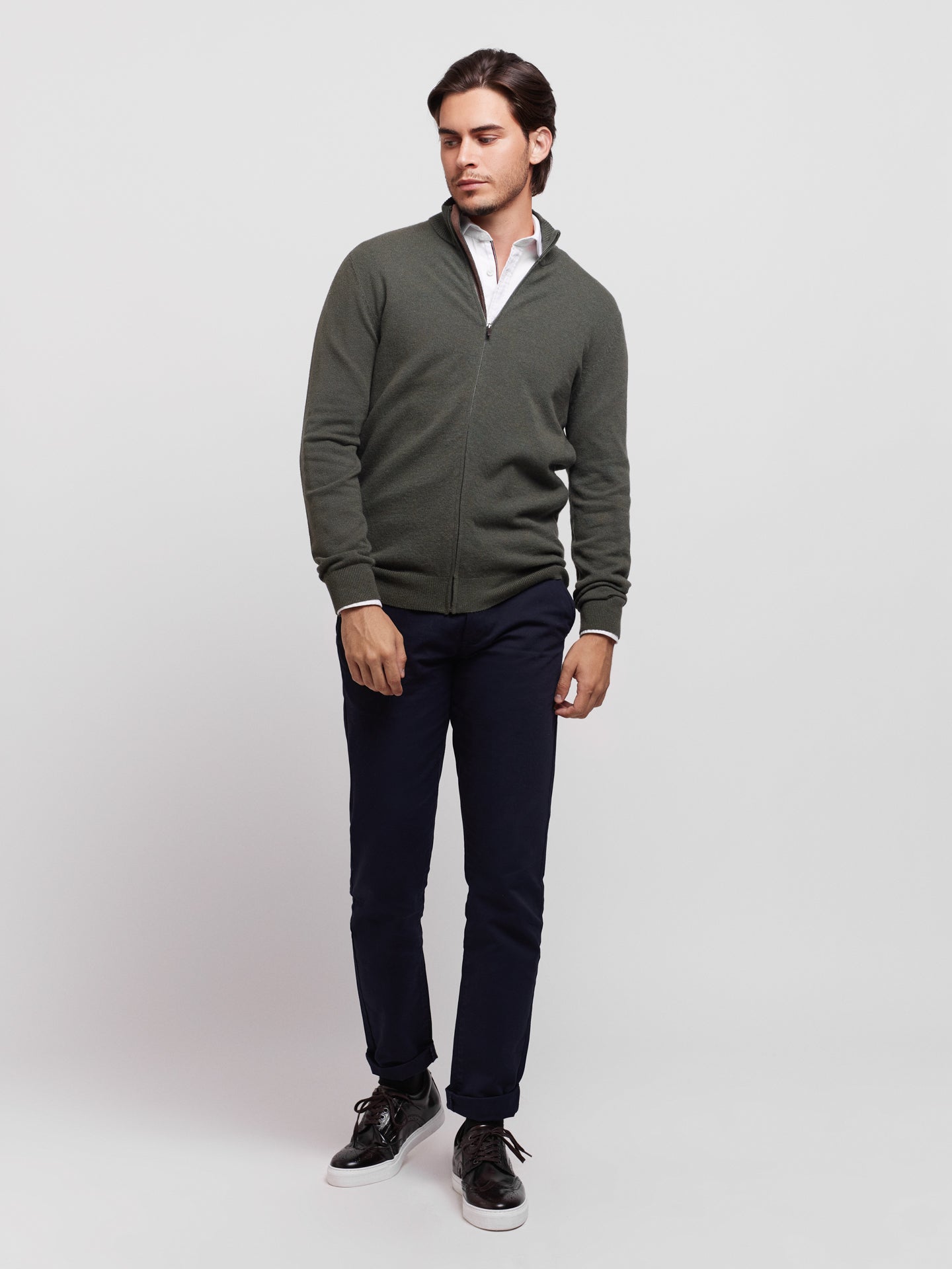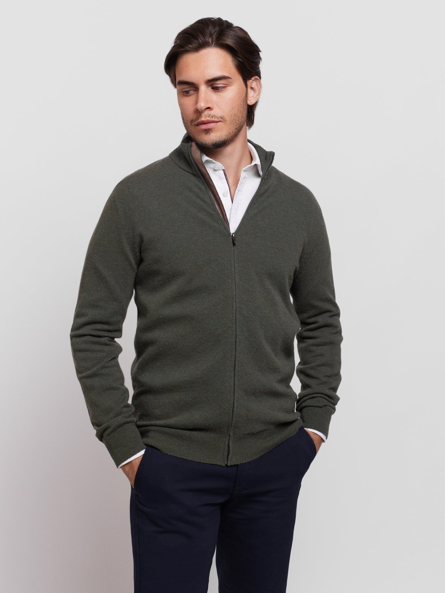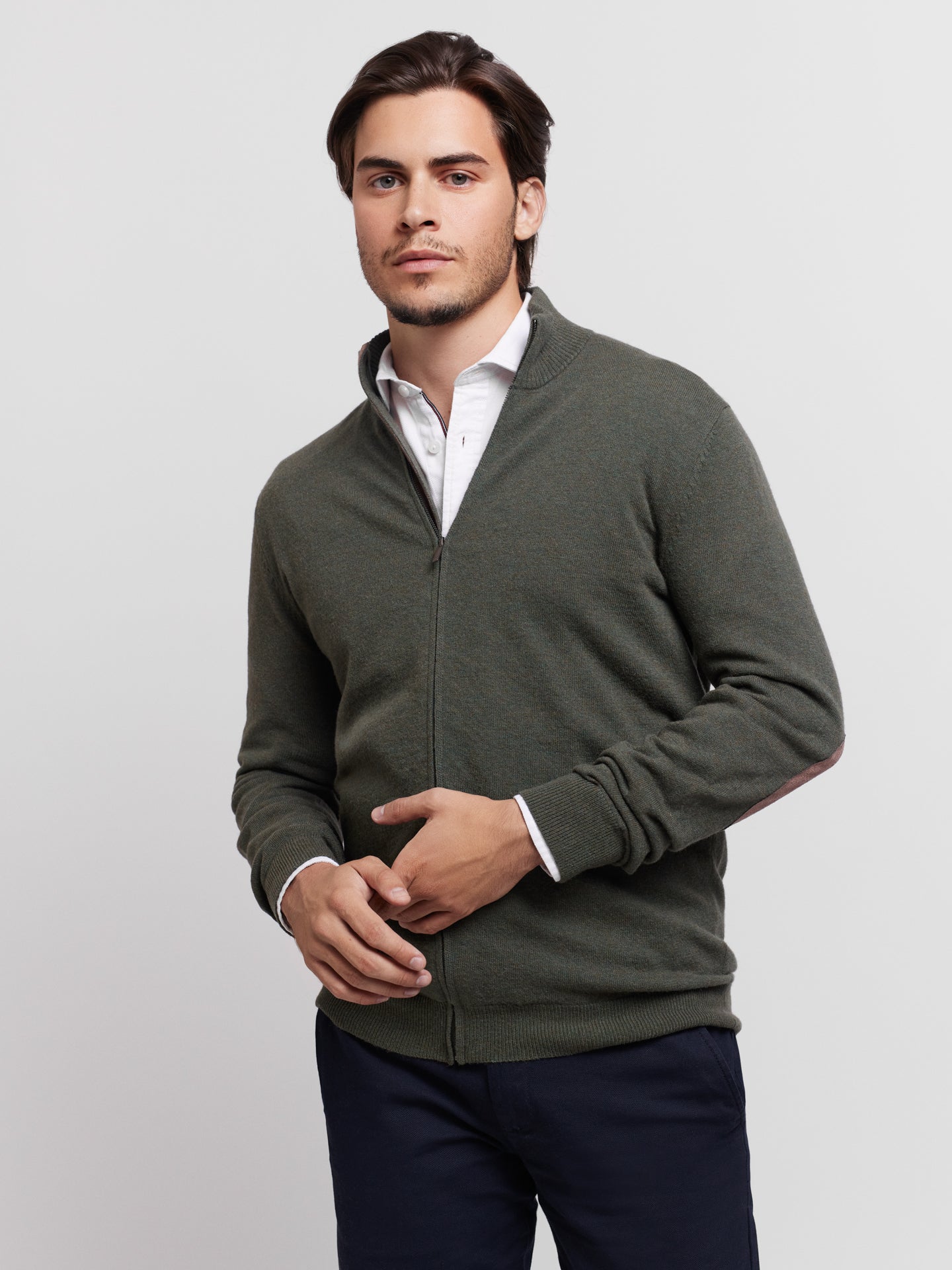 Cardigan Lã Merino Fino Cinzento