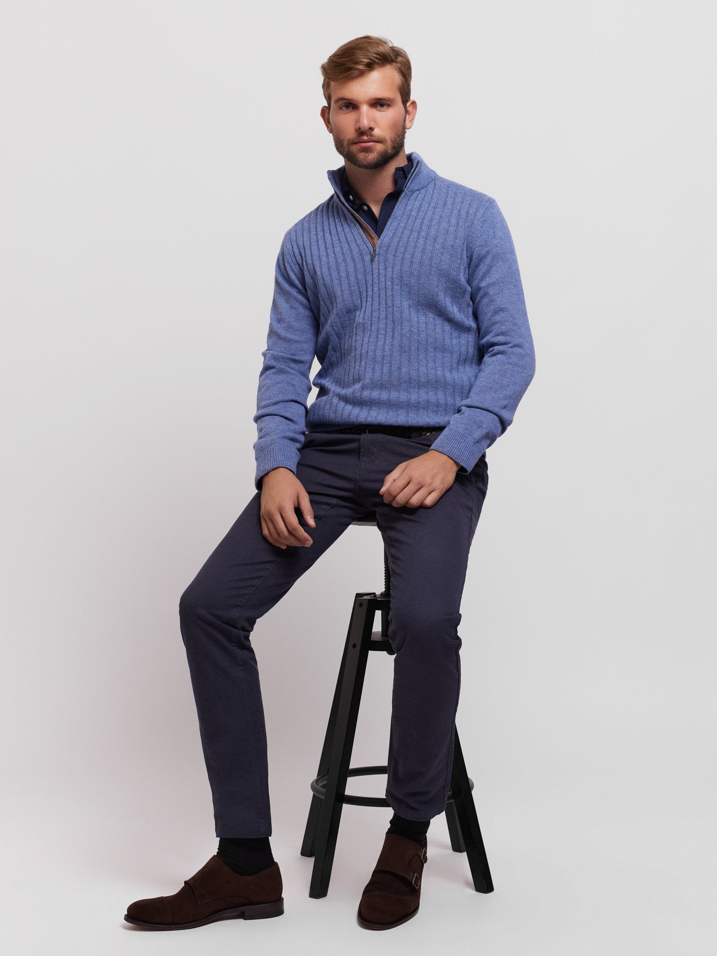 Pullover Caxemira Fino Azul