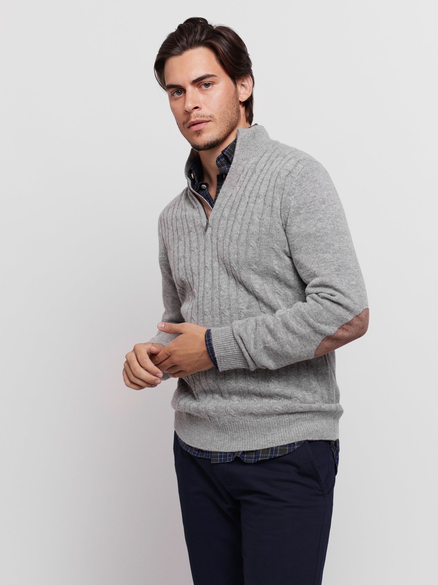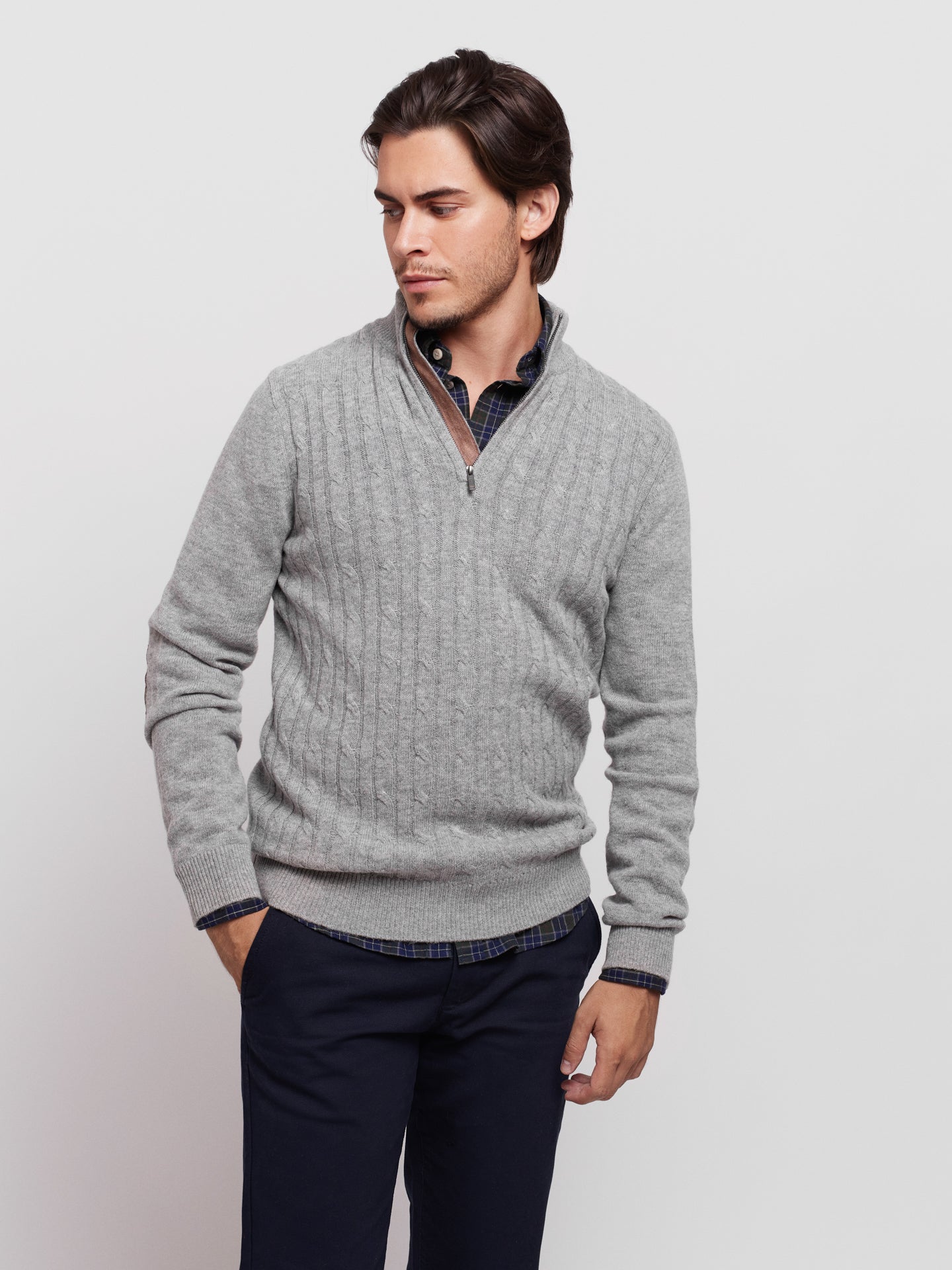 Pullover Caxemira Fino Cinzento