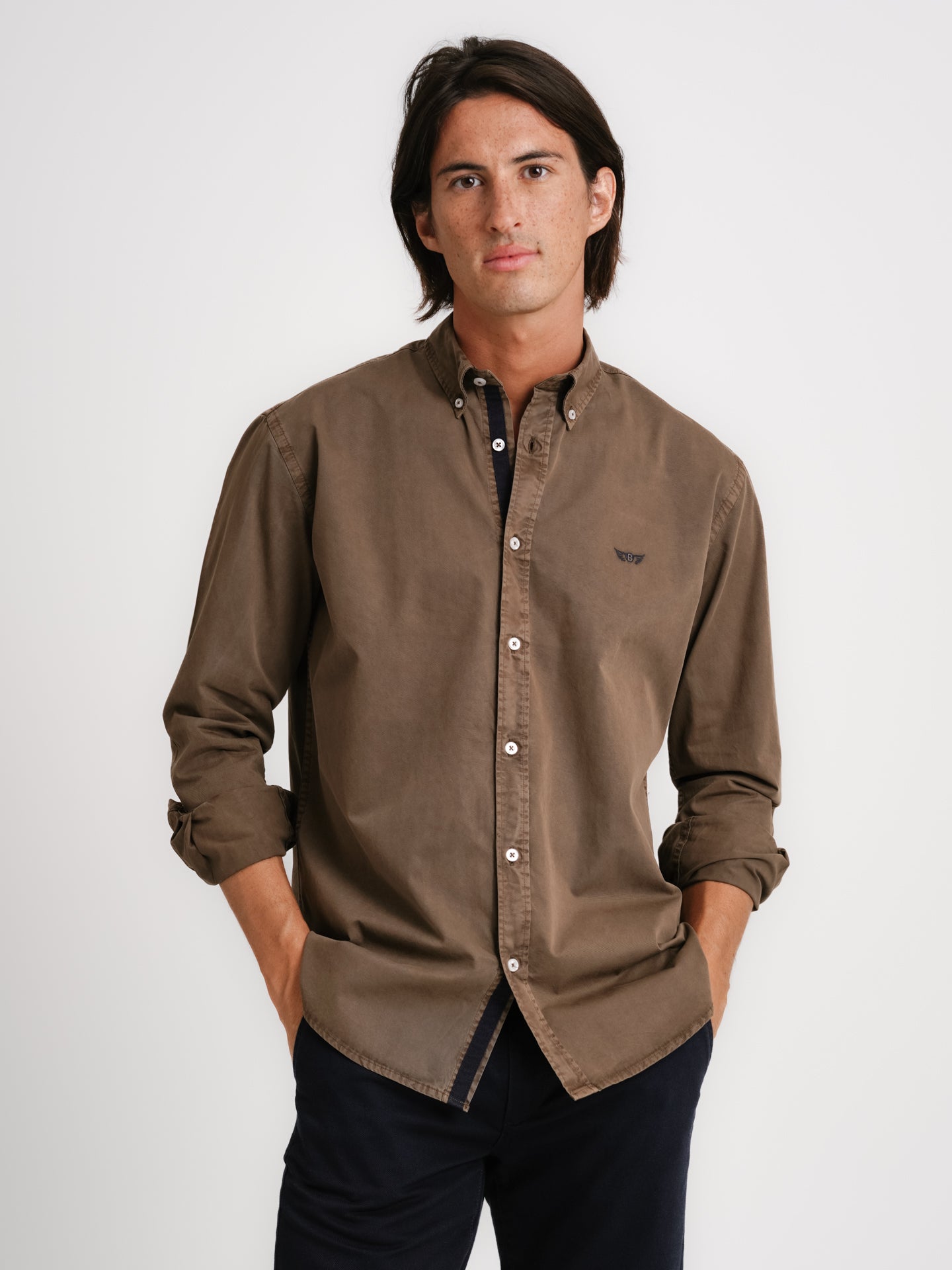 Camisa Regular Fit Popelina Castanho