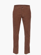 Calça Homem Regular Fit Bombazine Algodão e Lycra Castanho.