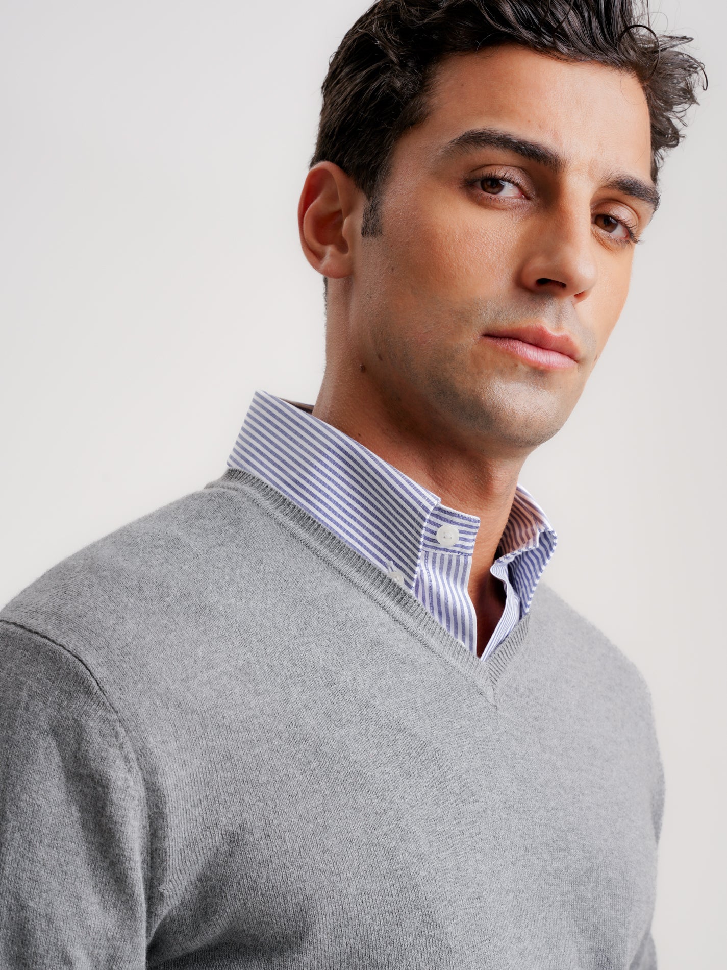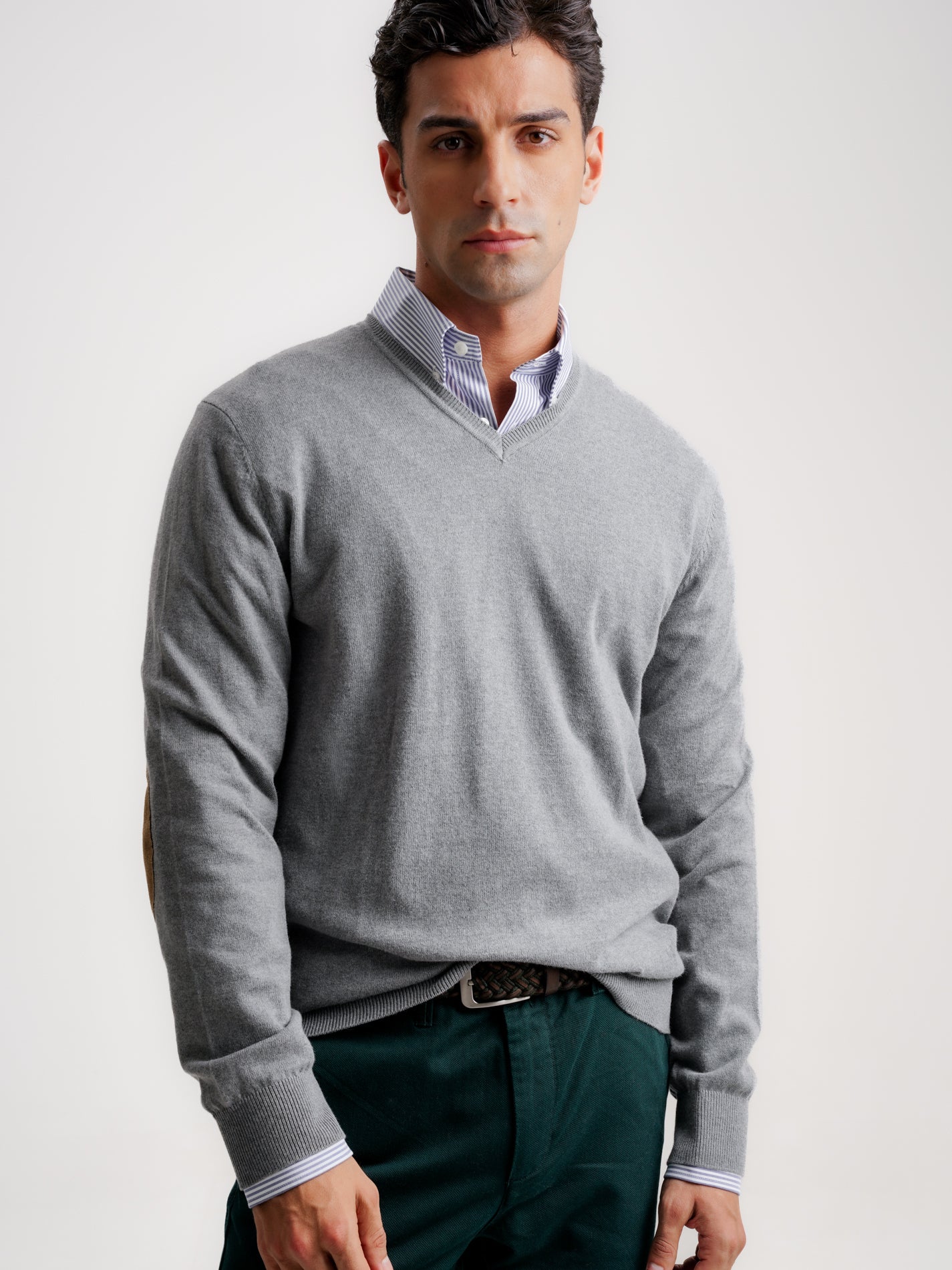 Pullover Lã Merino Fino Cinzento Liso Sem Logo e Sem Bolso