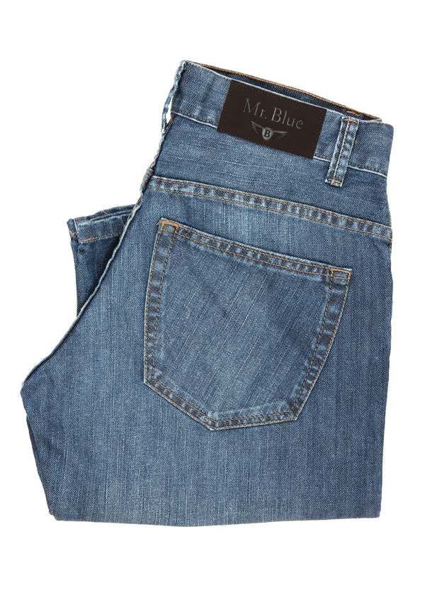 Calças de ganga stone wash azul escuro cintura subida