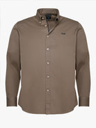 Camisa Regular Fit Estruturada Castanha Manga Comprida Com Logo Lisa