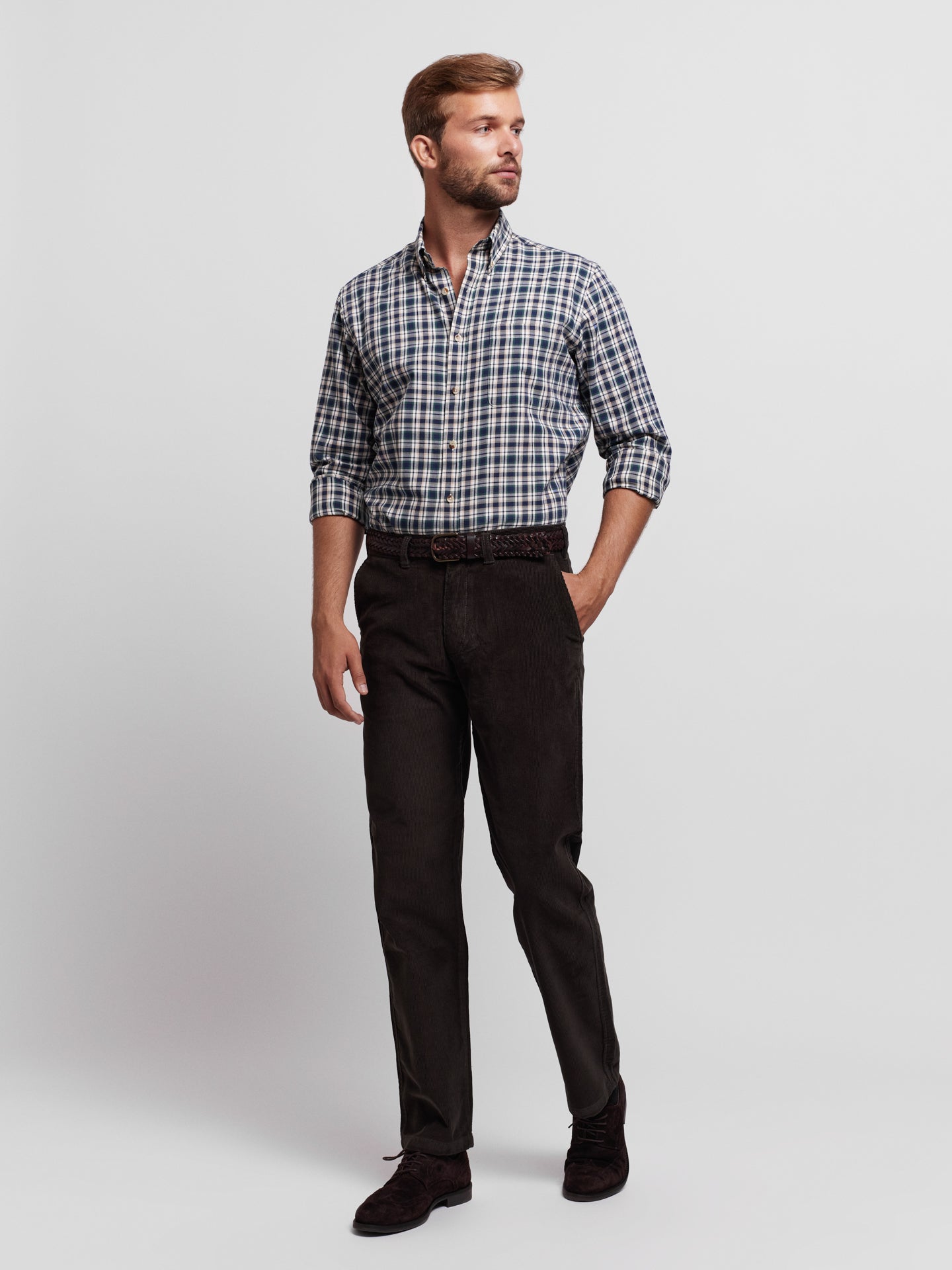 Calças de ganga cintura subida azul denim em tencel e algodão