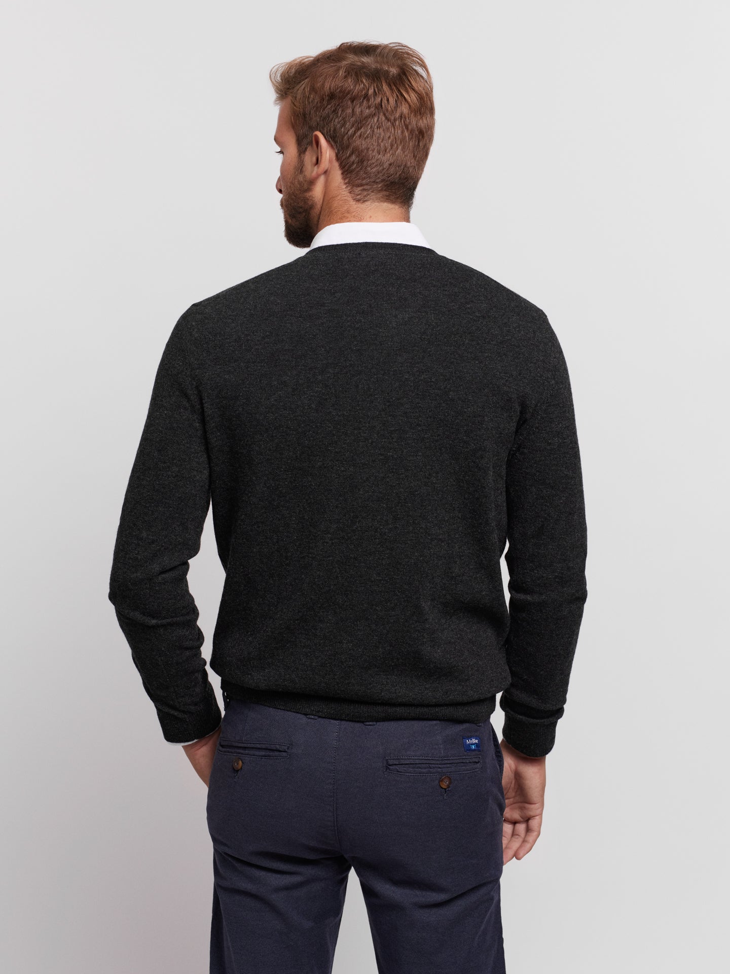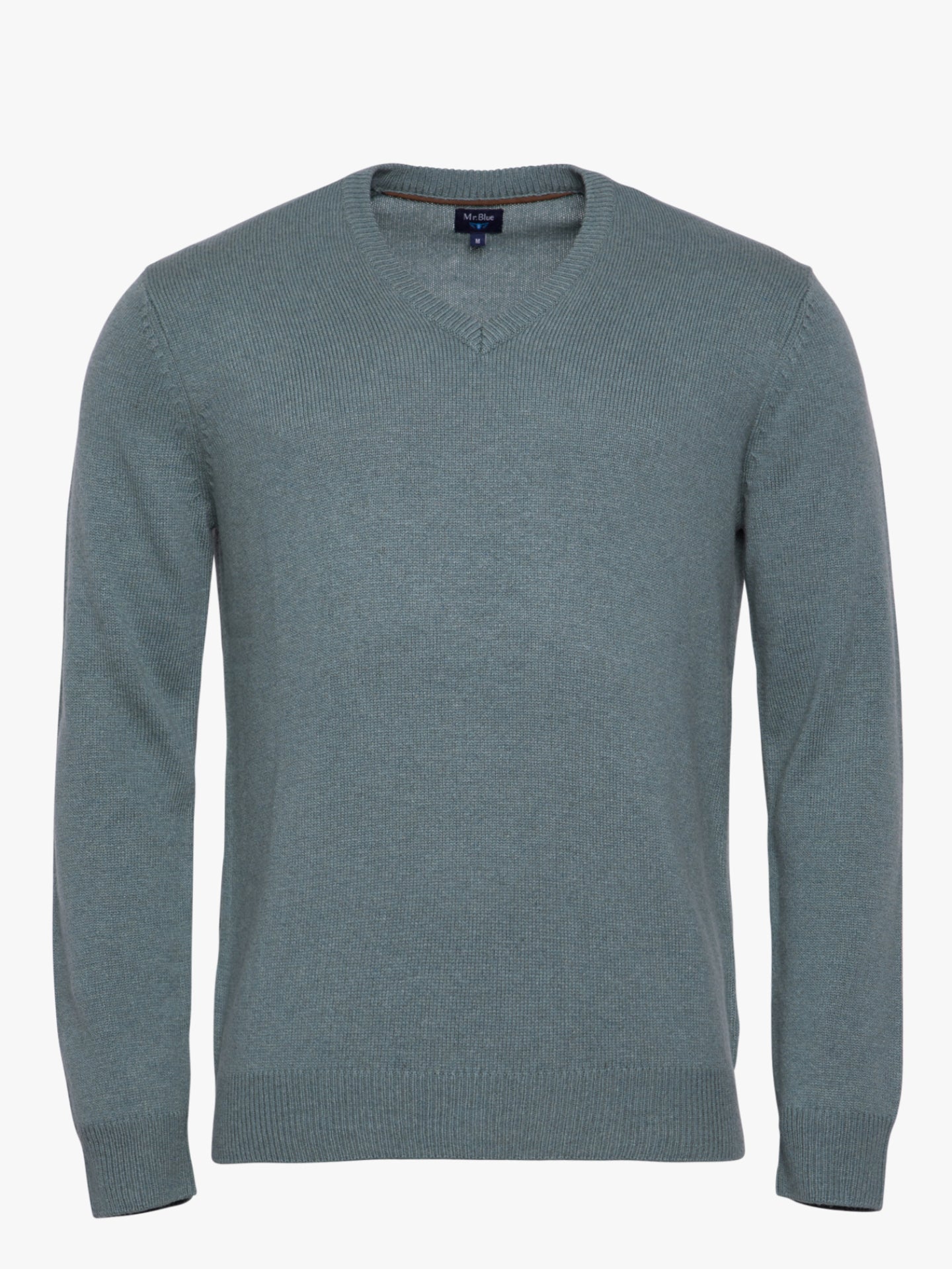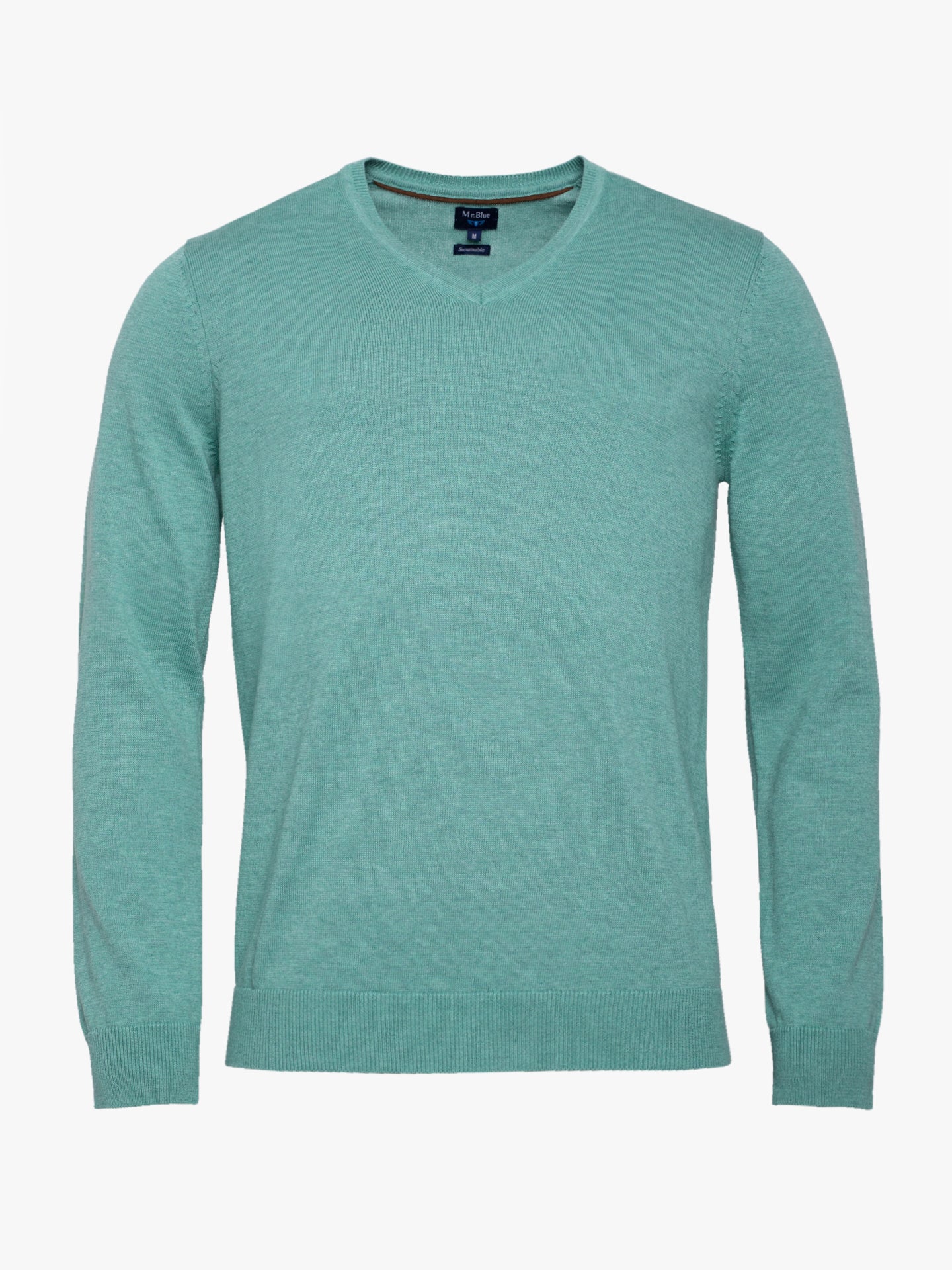Camisola verde escuro em algodão decote em V com cotoveleiras