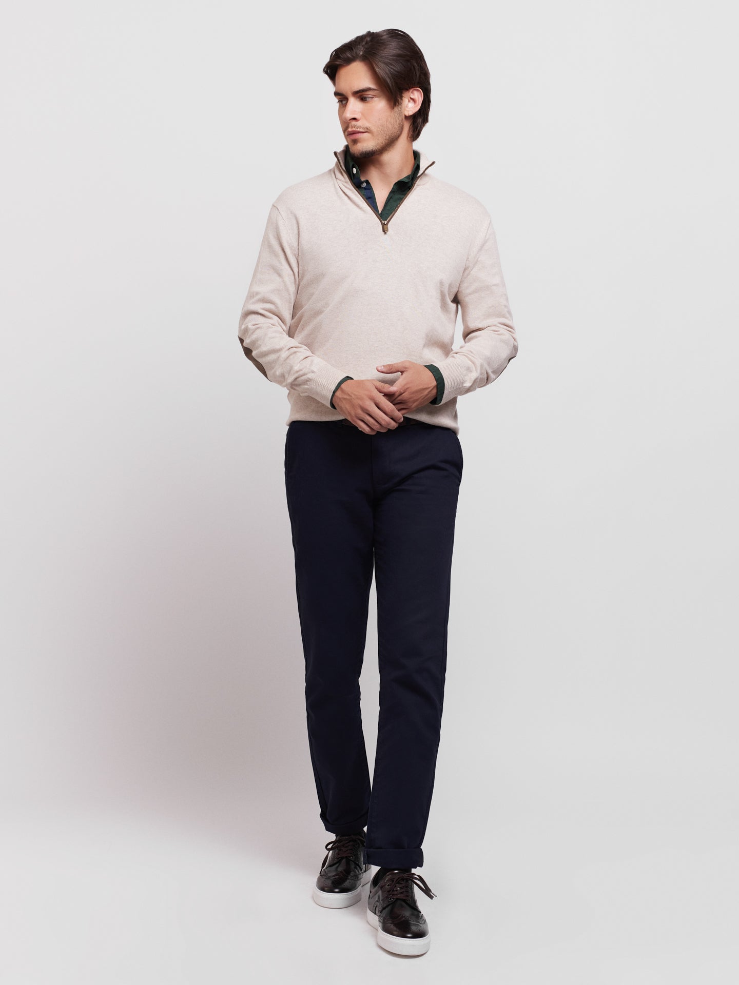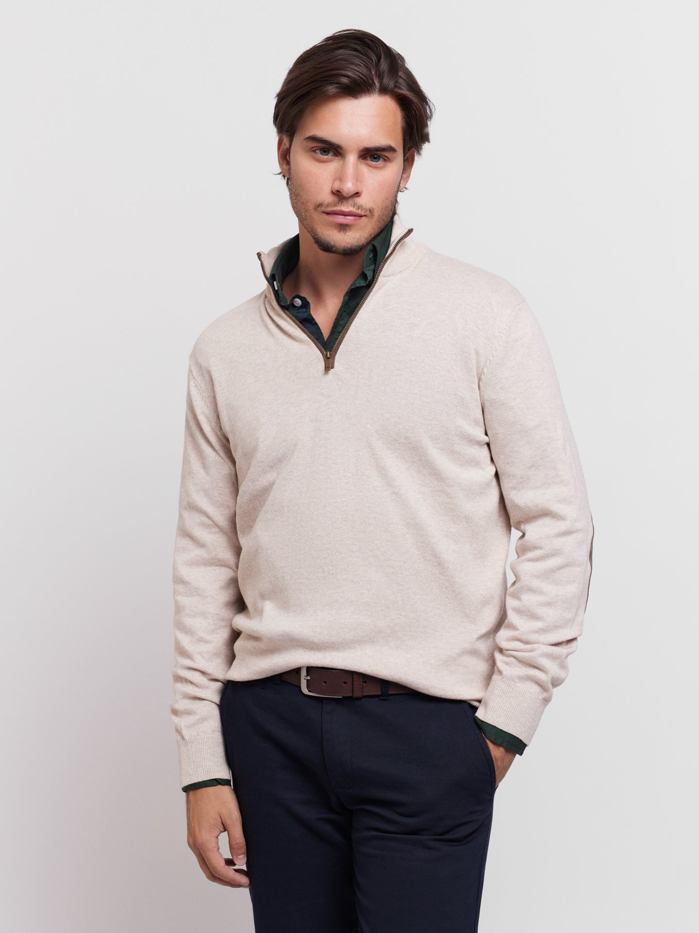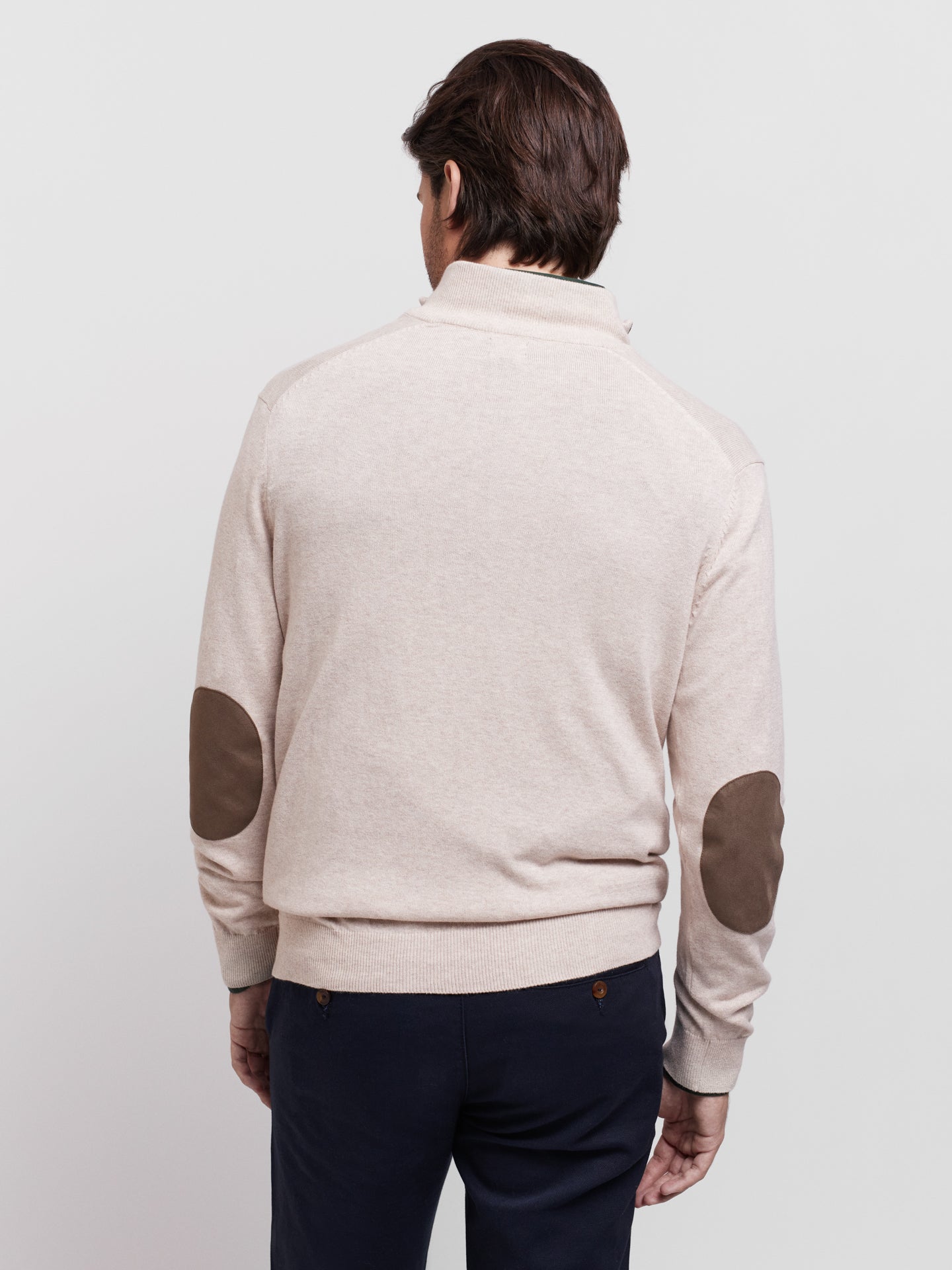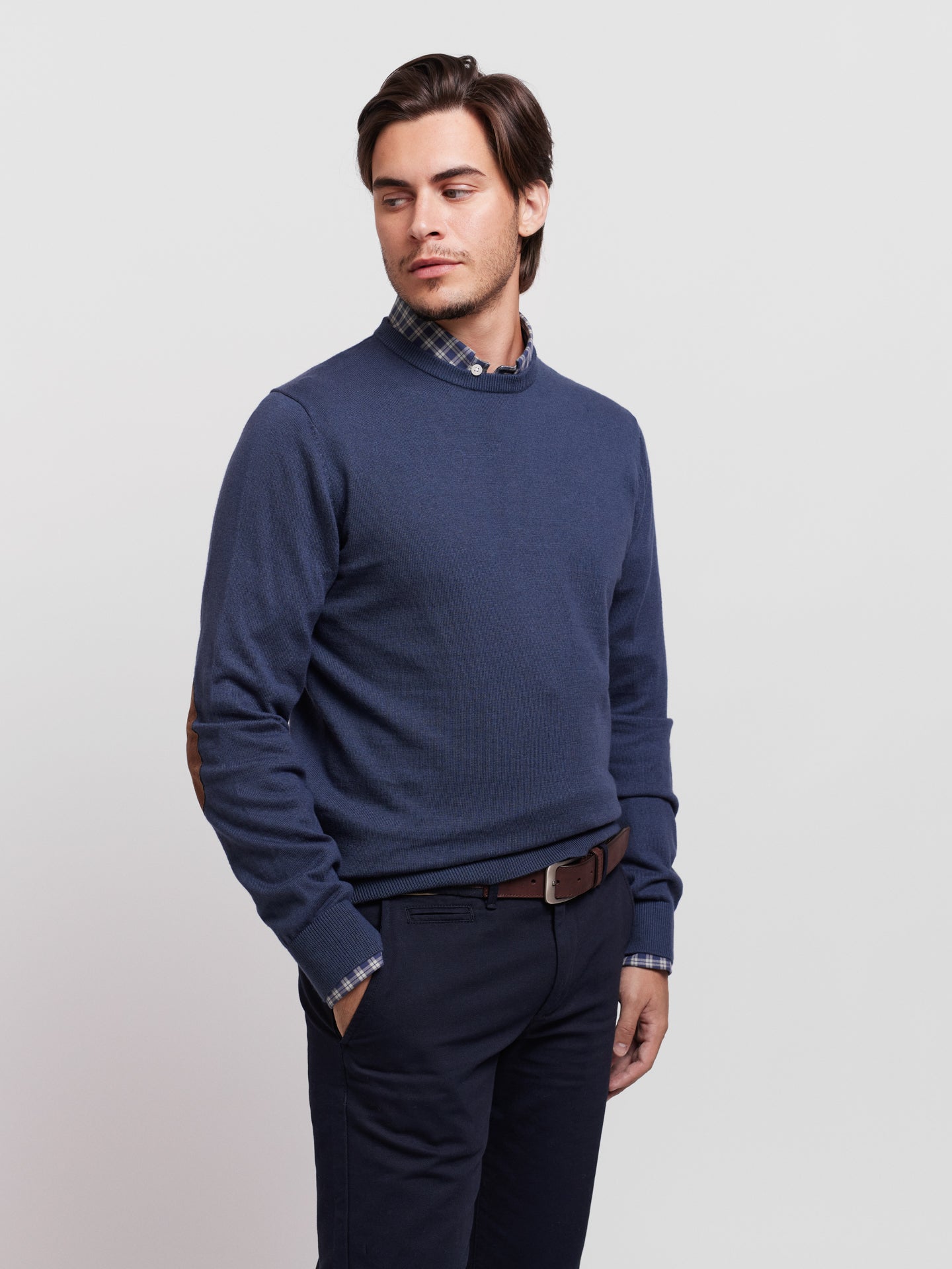 Camisola verde escuro em algodão decote em V com cotoveleiras