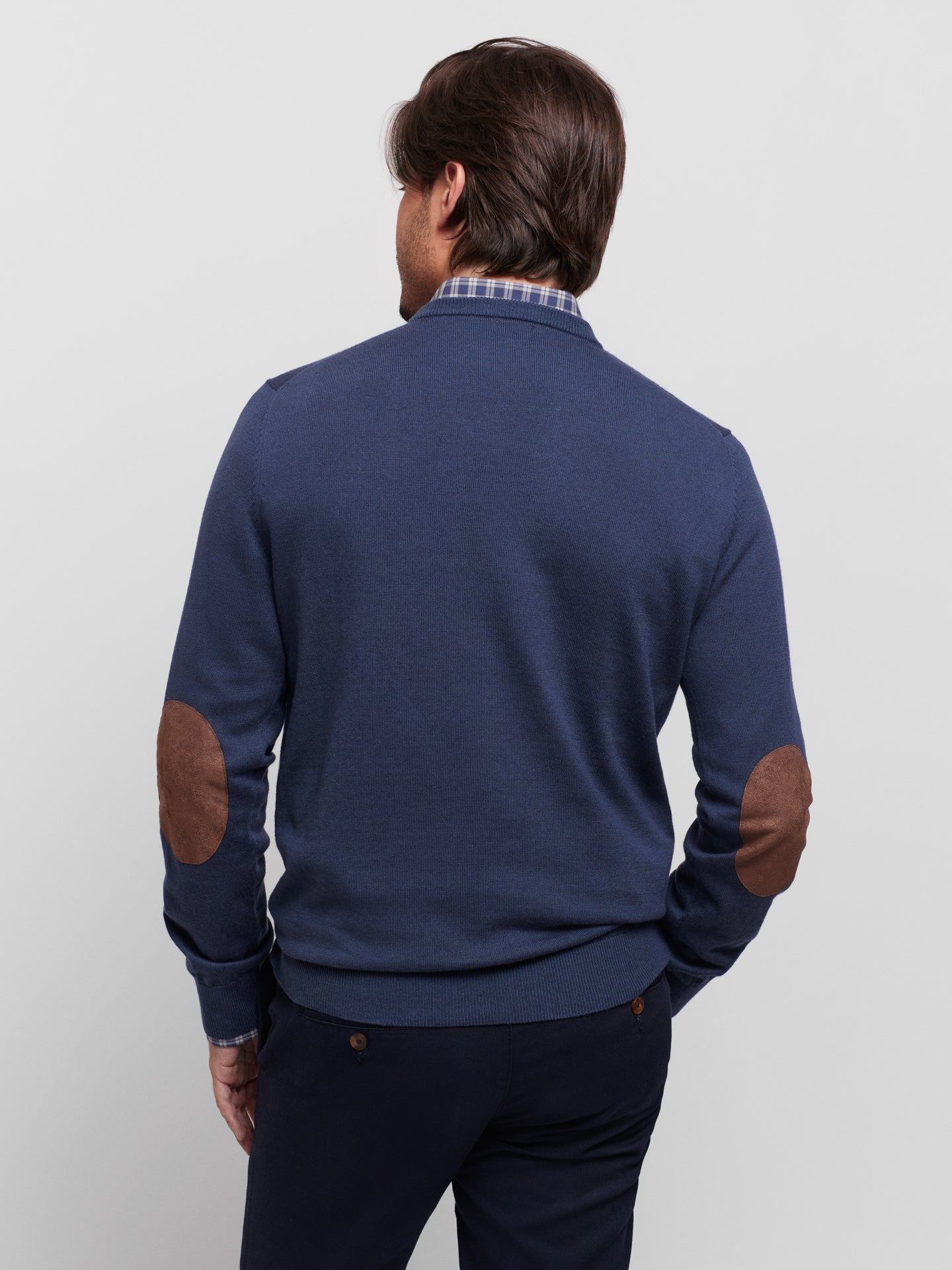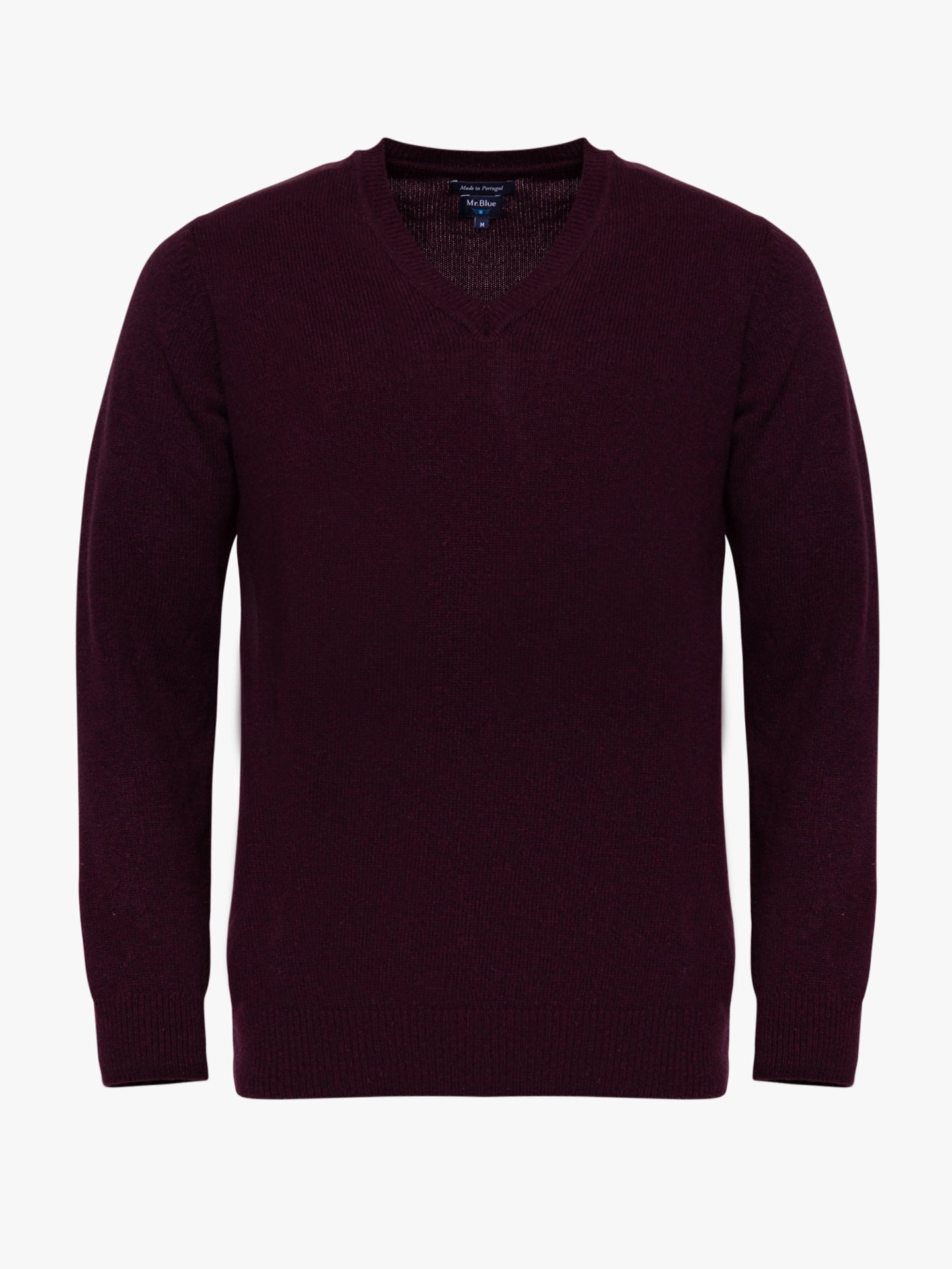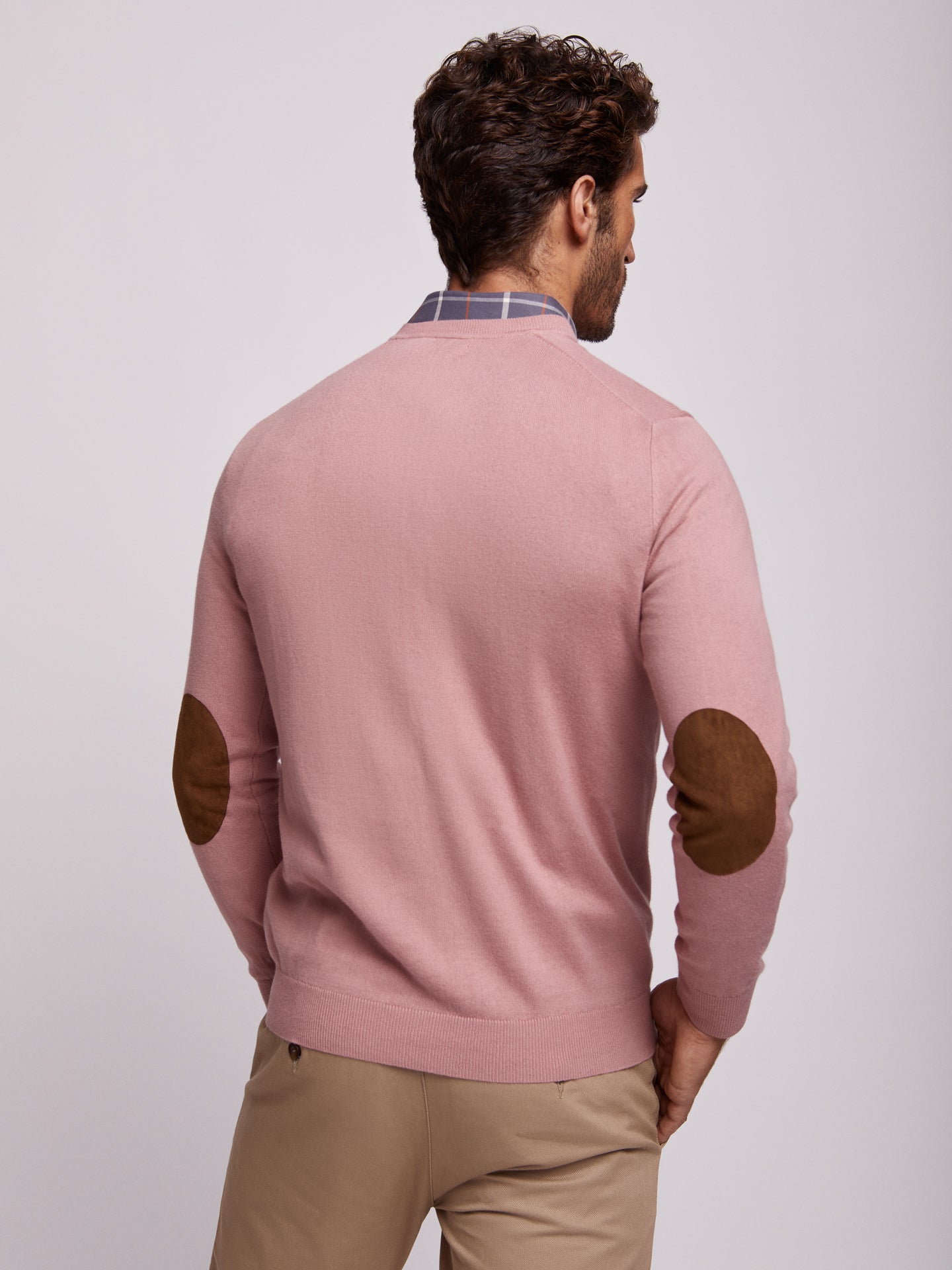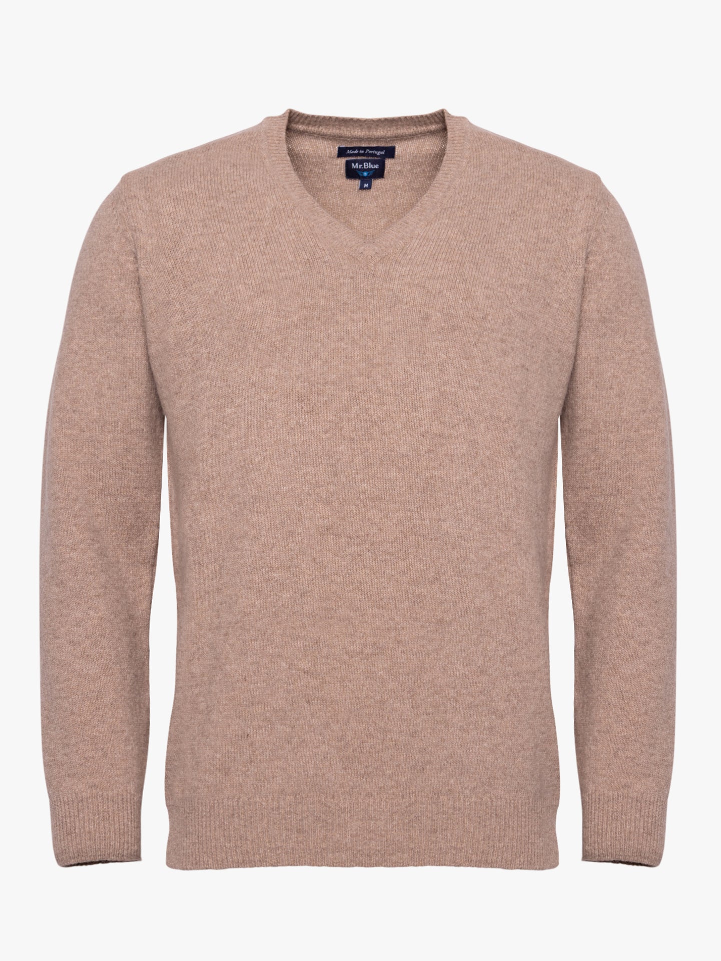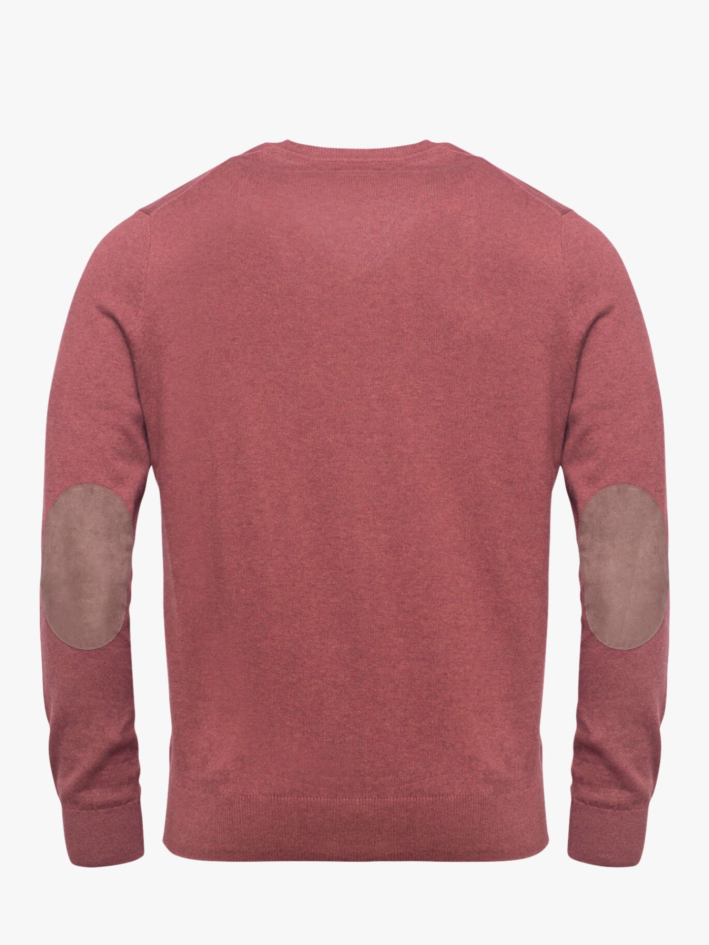 Camisola lã laranja tijolo decote em bico com cotoveleiras
