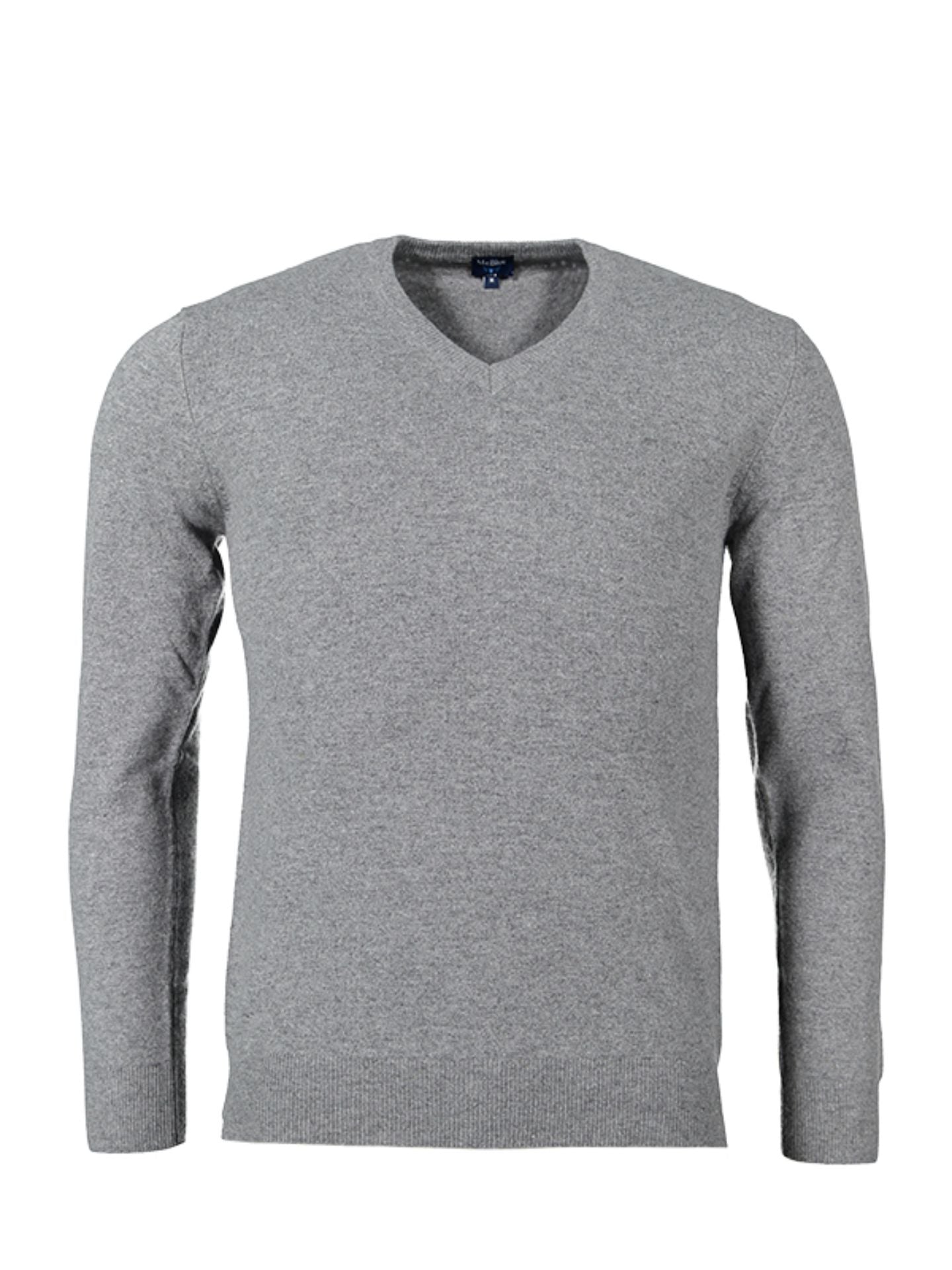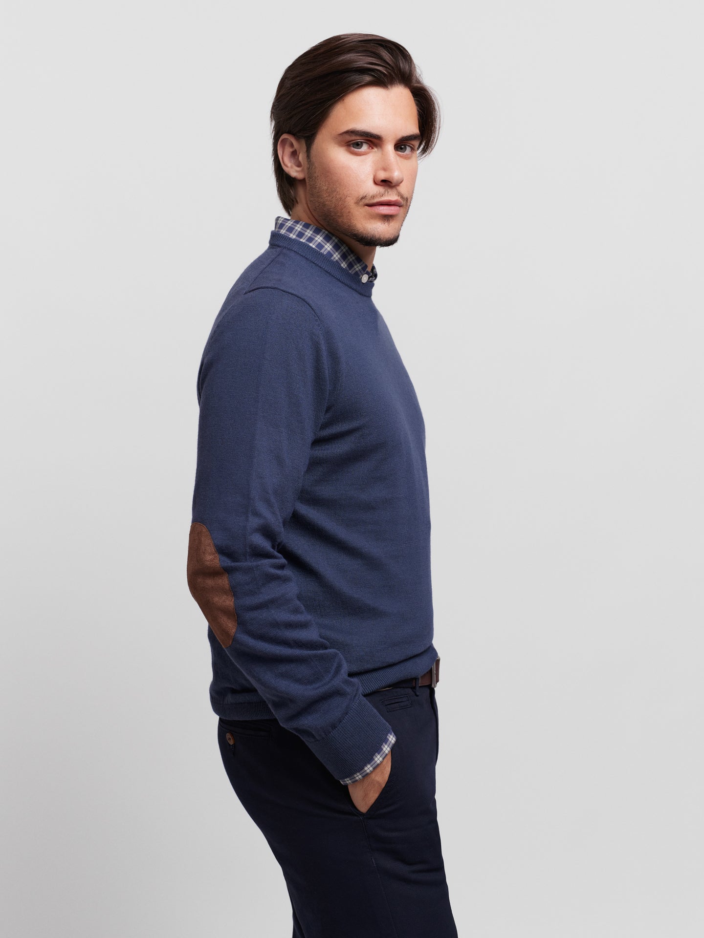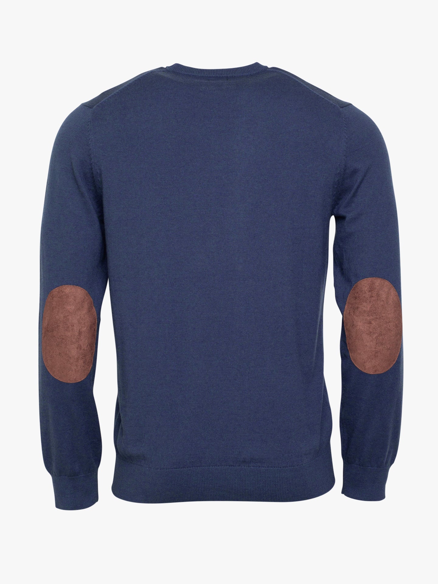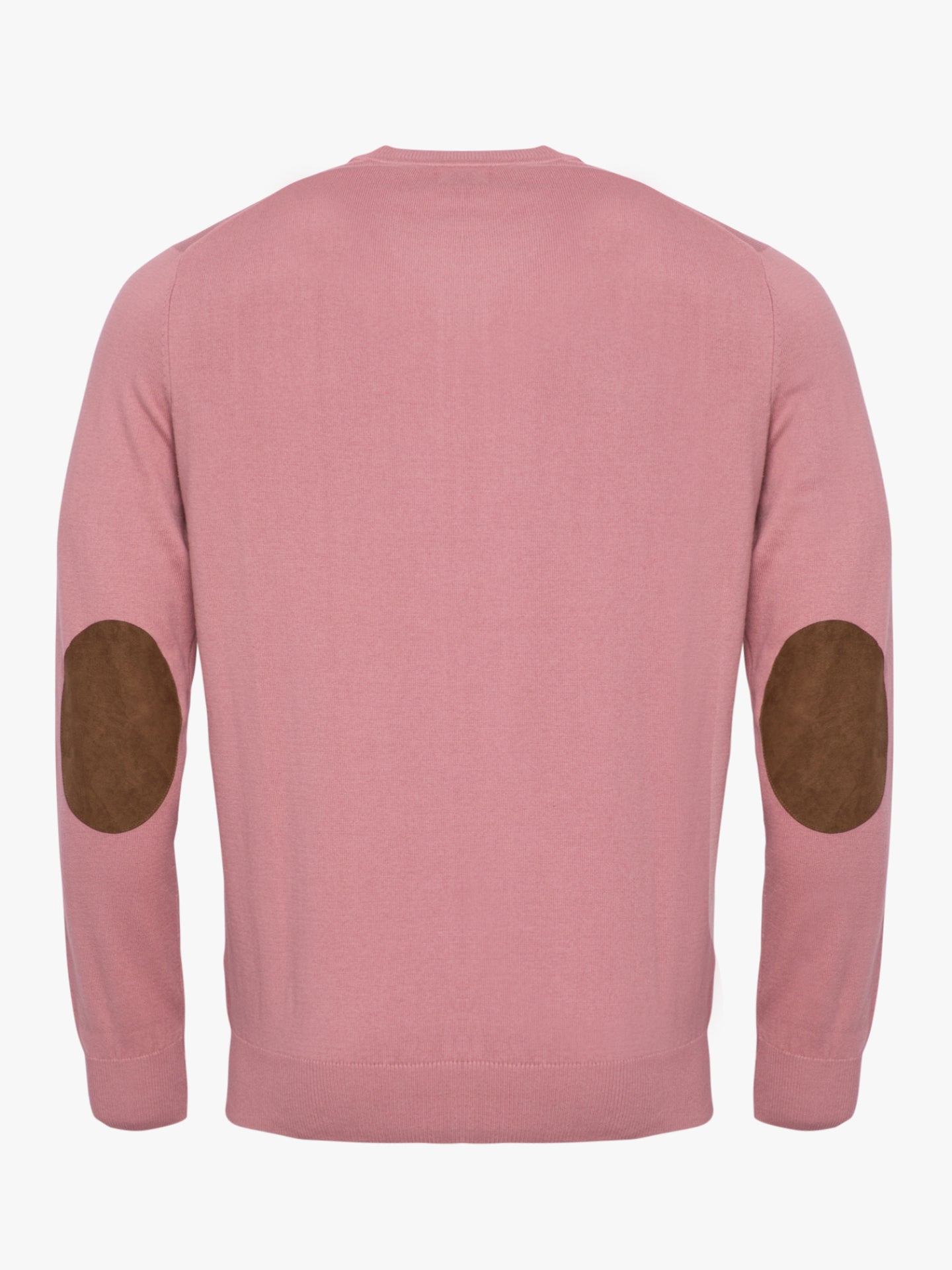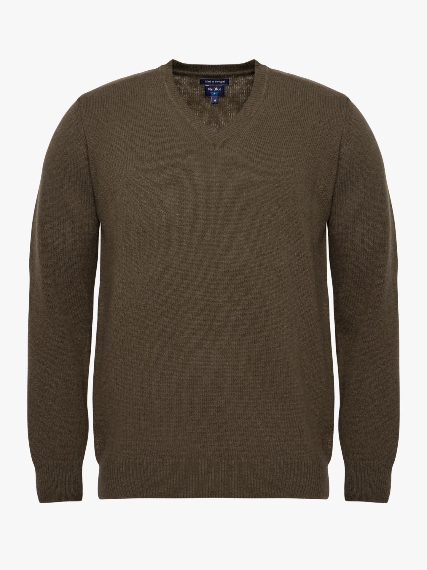 Camisola lã laranja tijolo decote em bico com cotoveleiras
