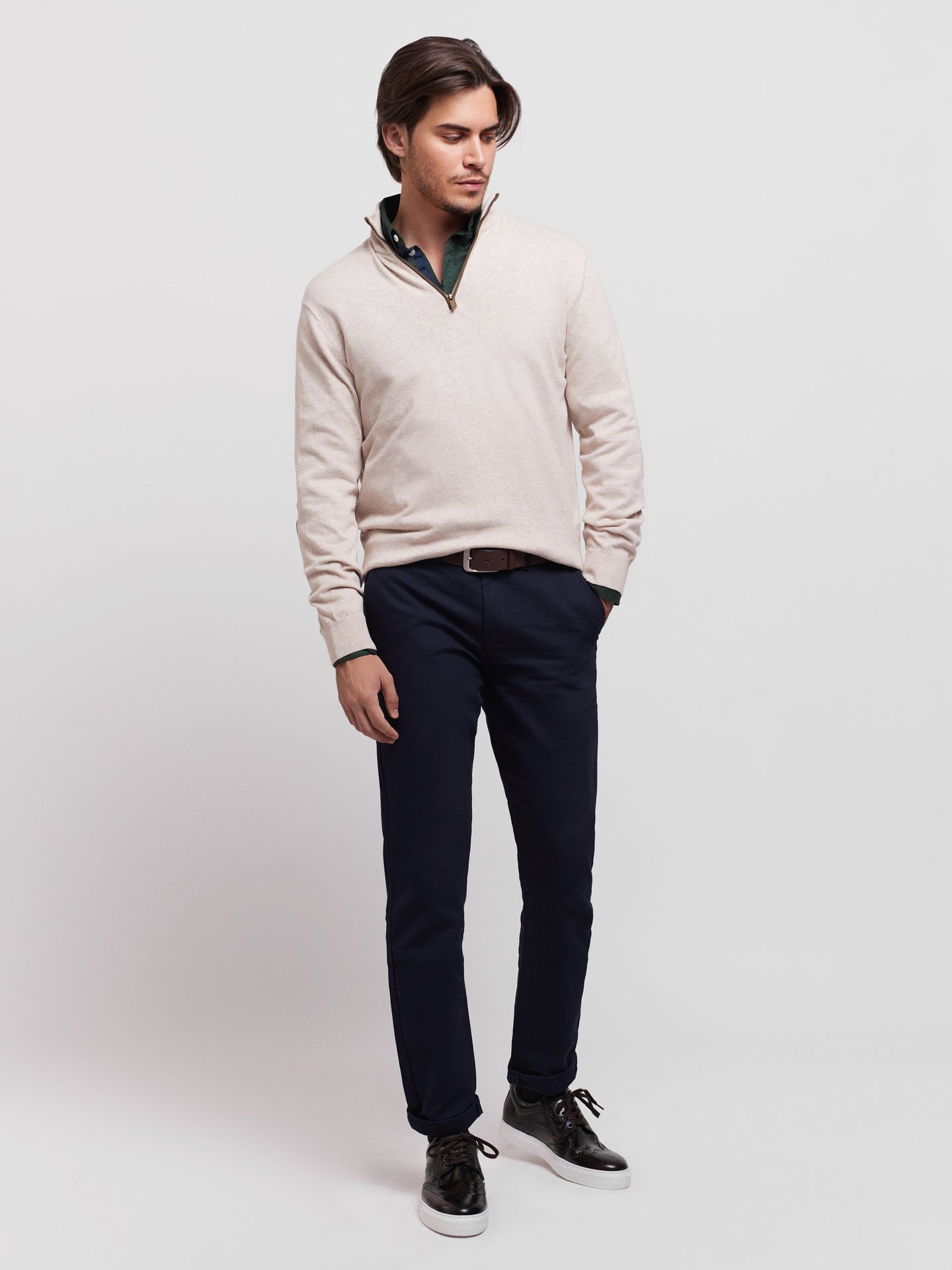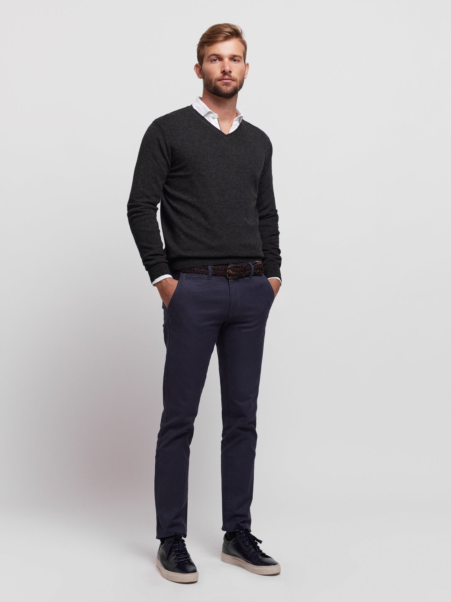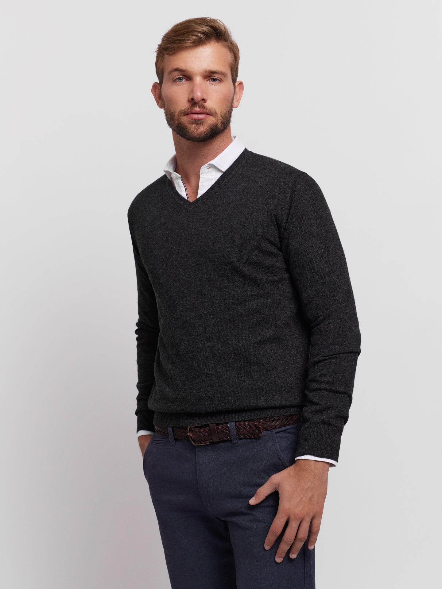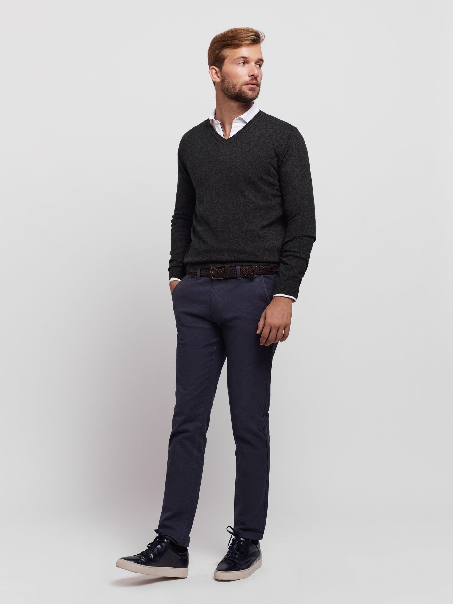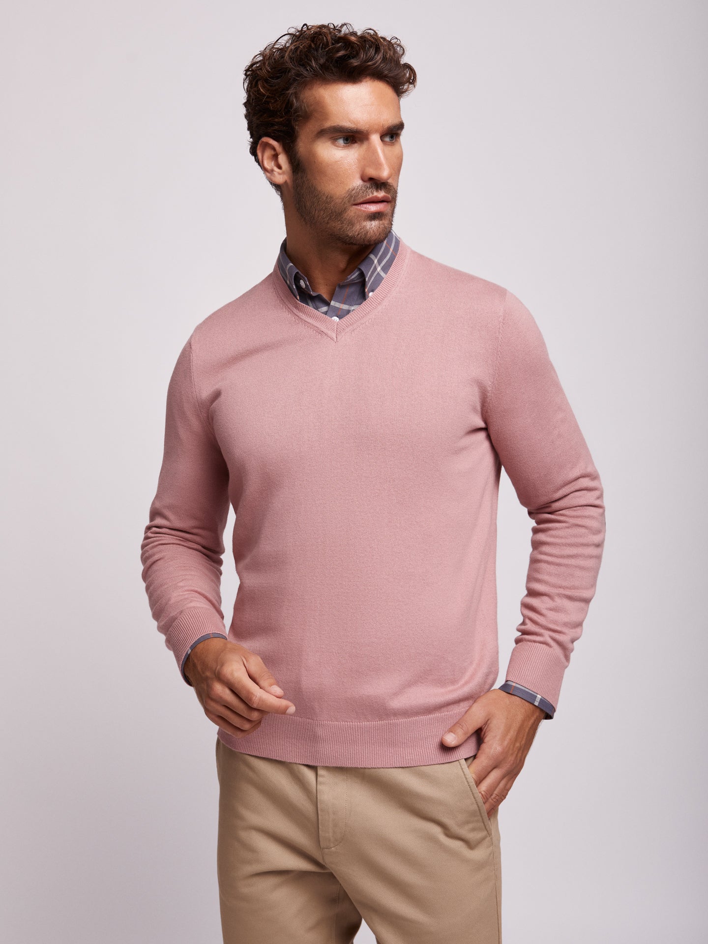 Camisola algodão e caxemira laranja tijolo decote em bico
