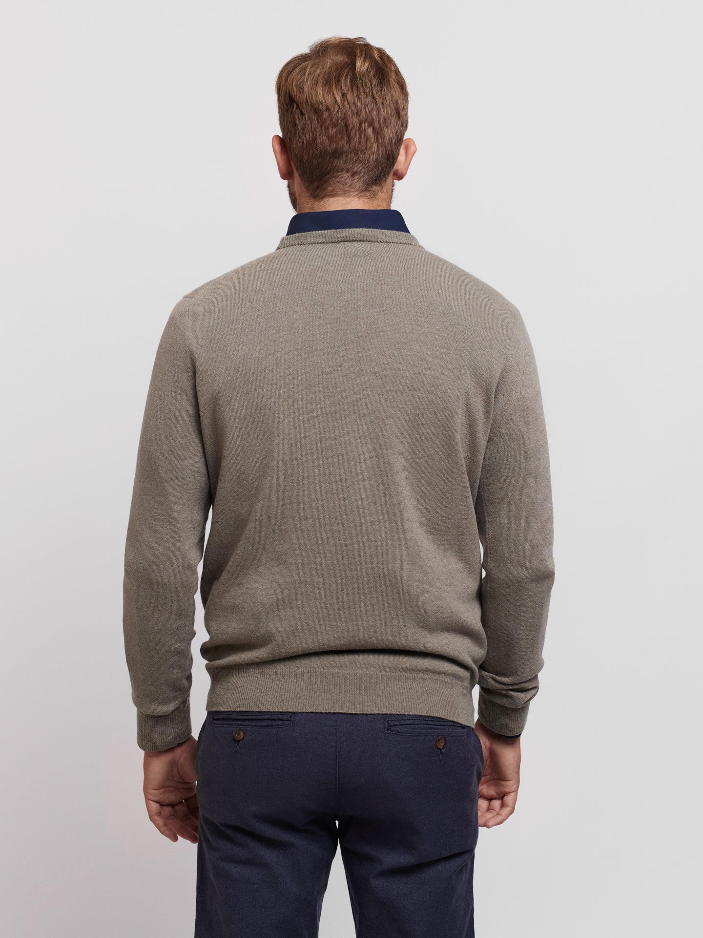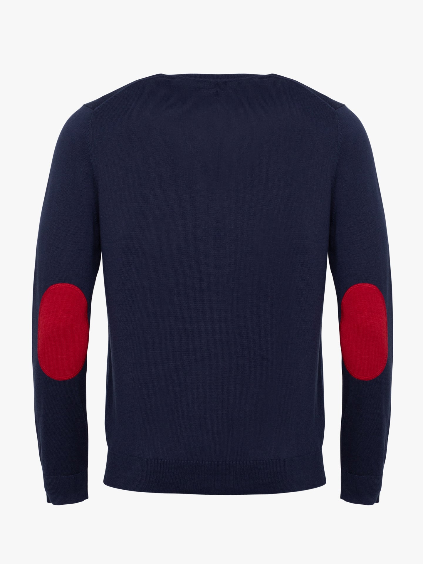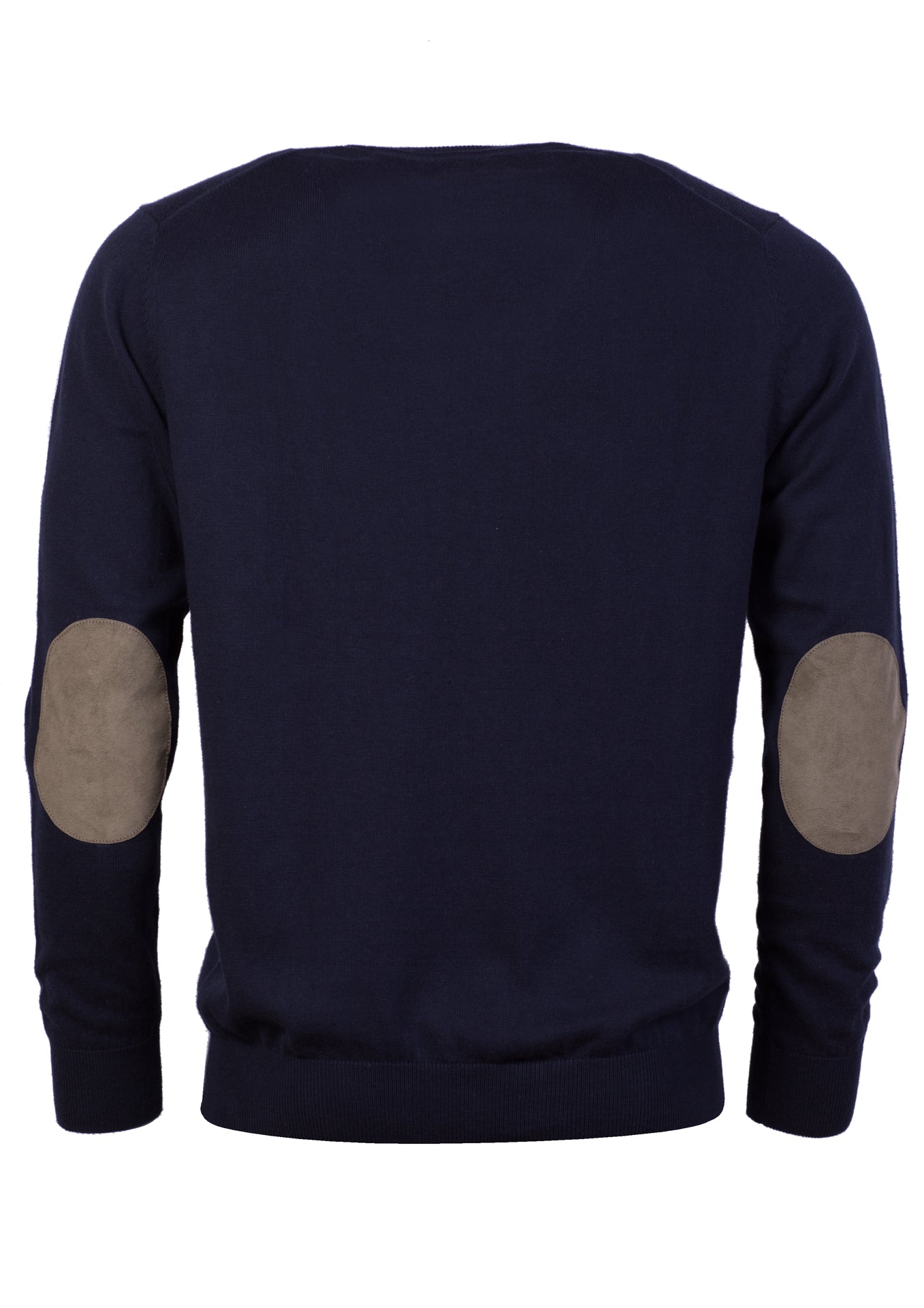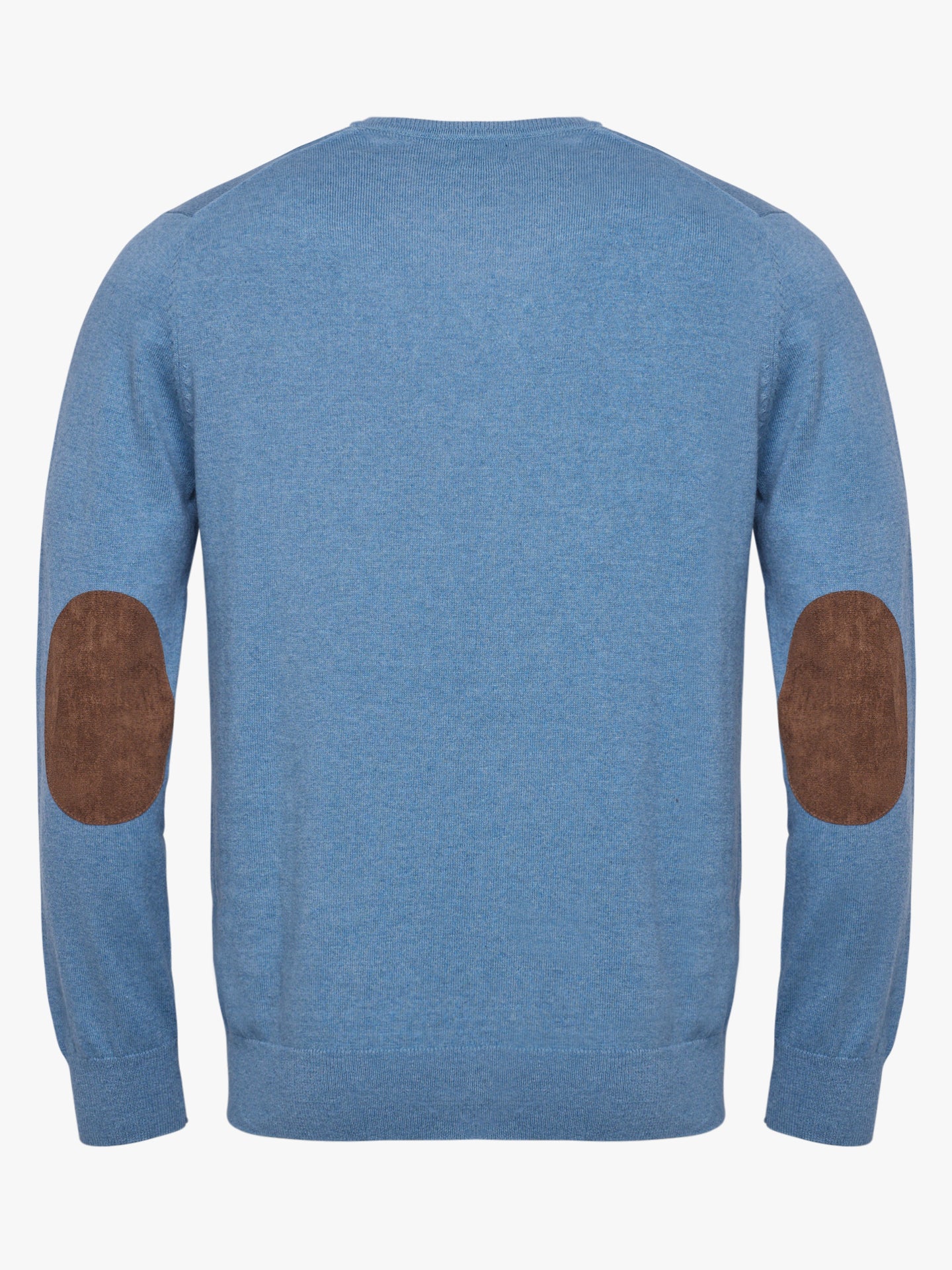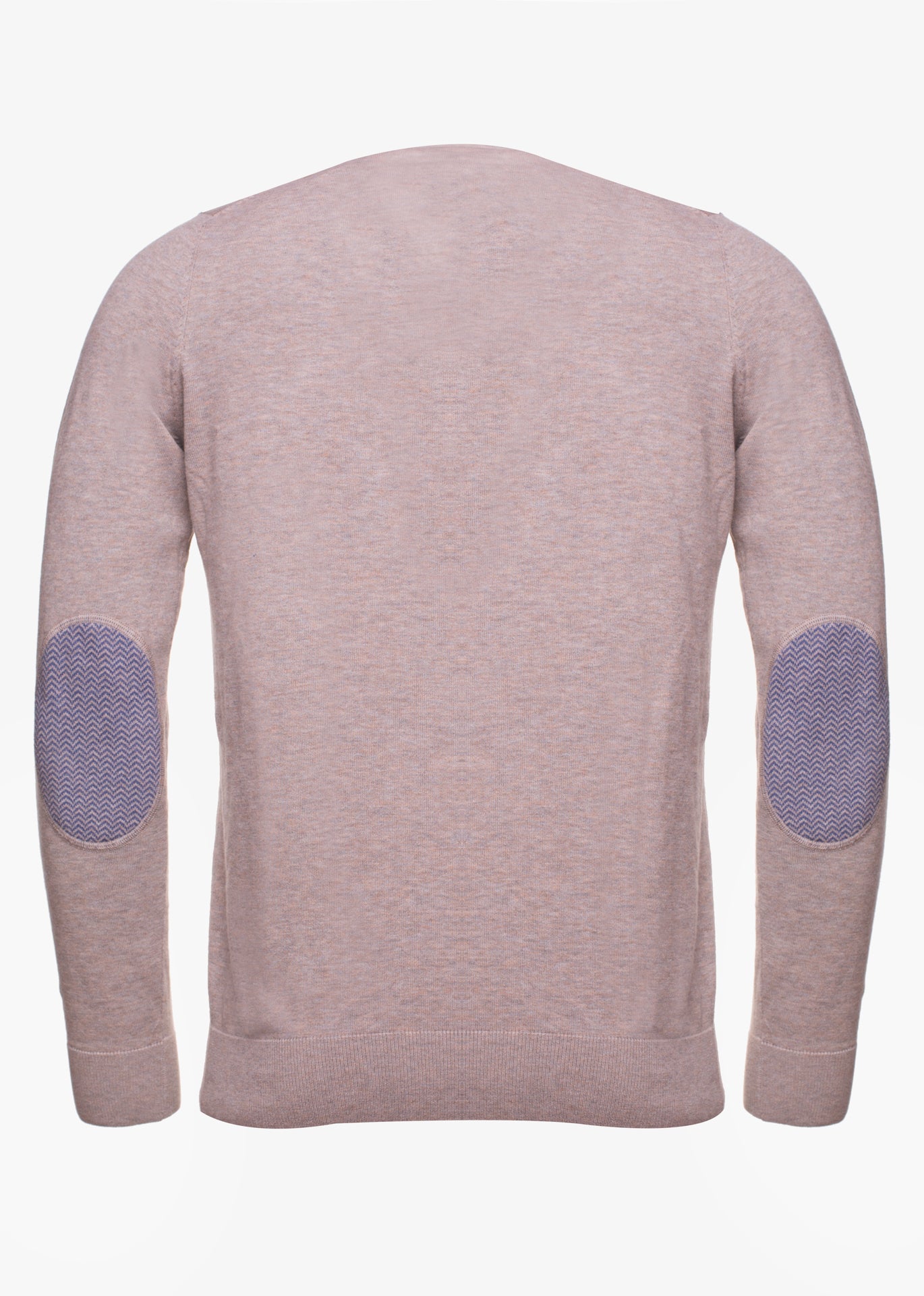 Pullover algodão e caxemira decote em V com cotoveleiras