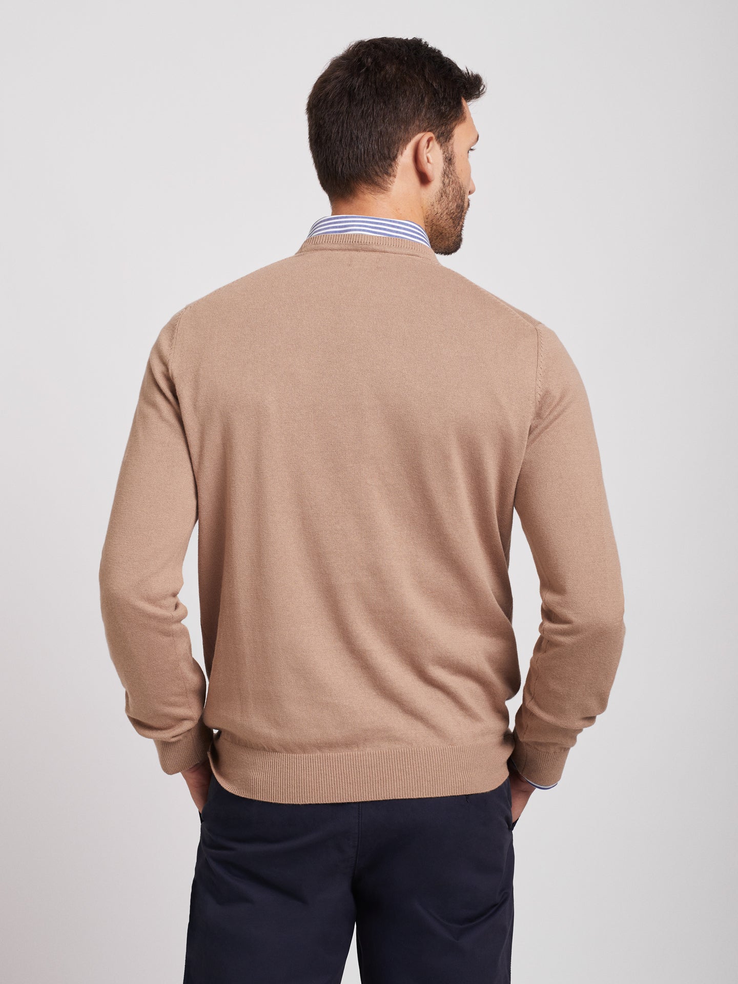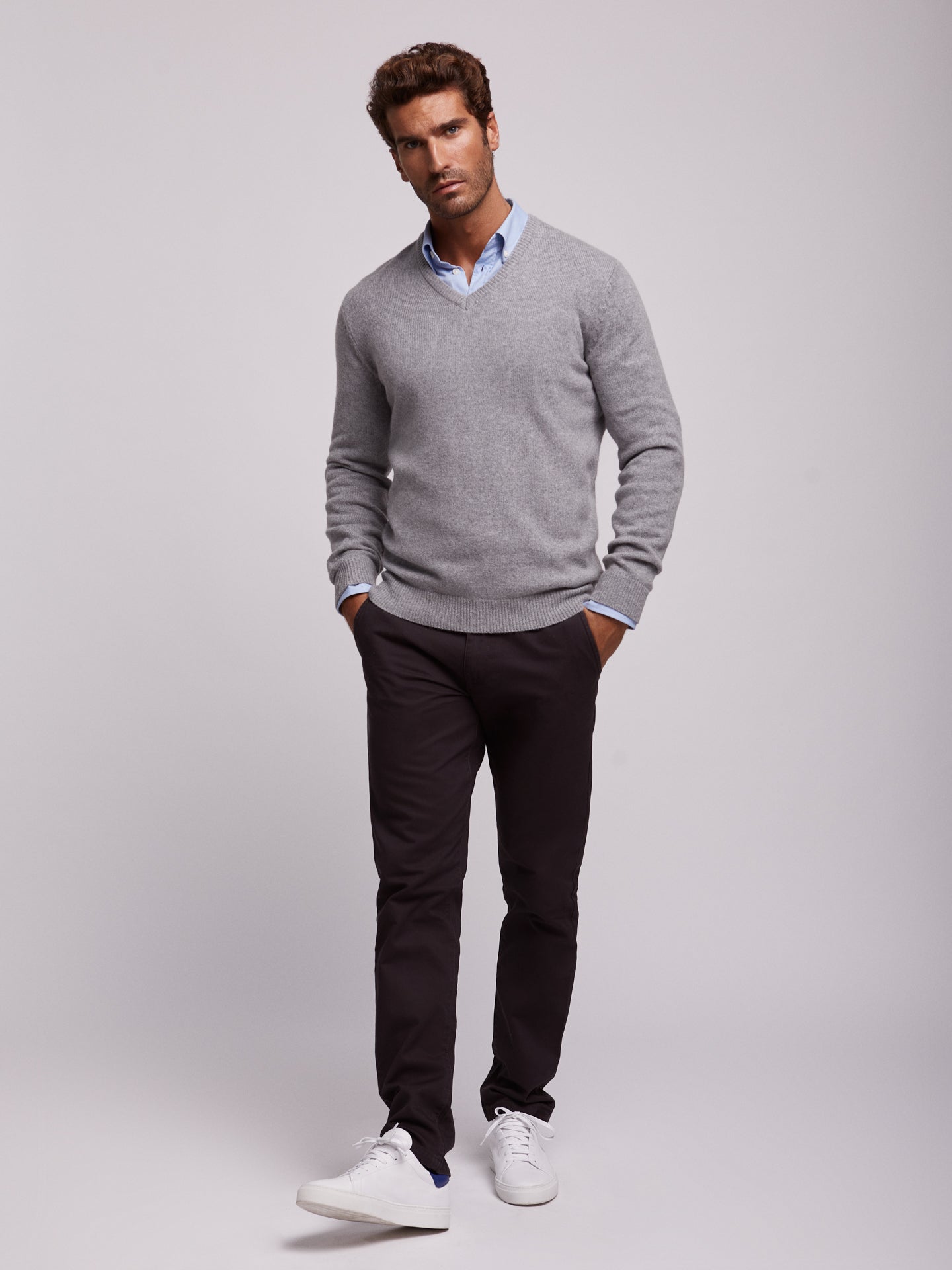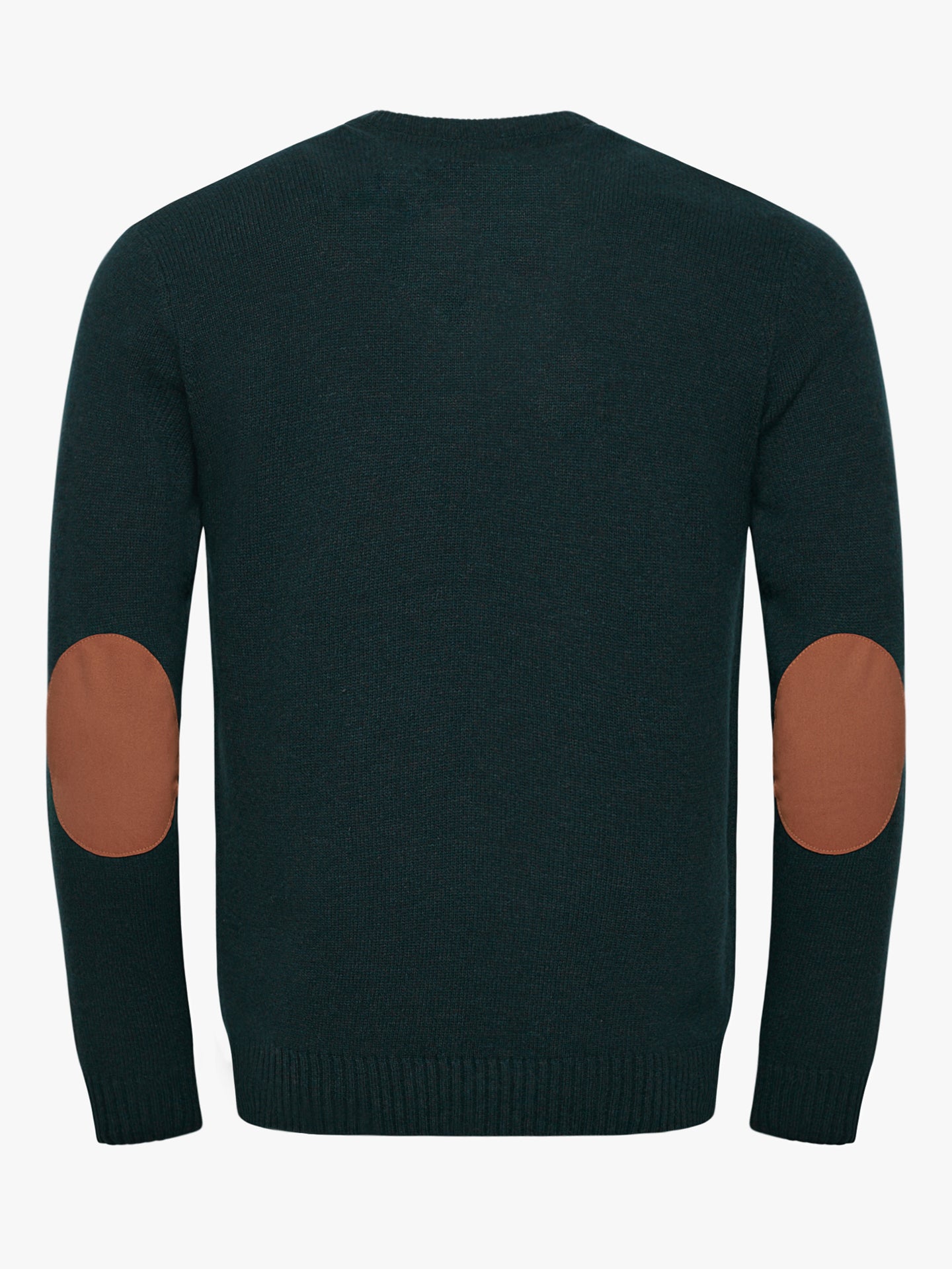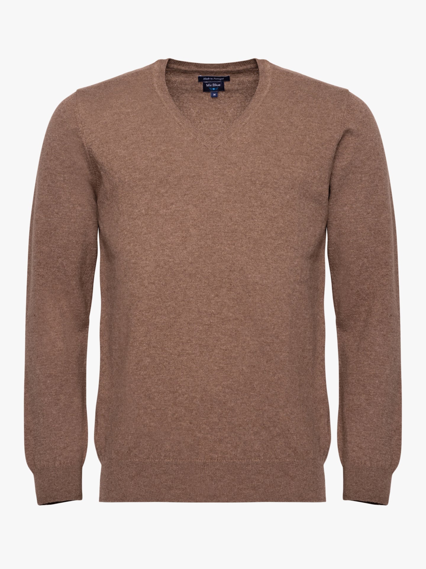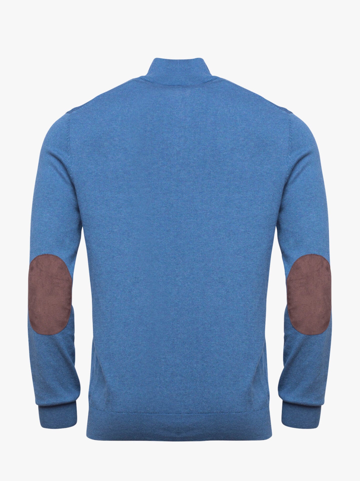 Pullover algodão e caxemira decote em V com cotoveleiras