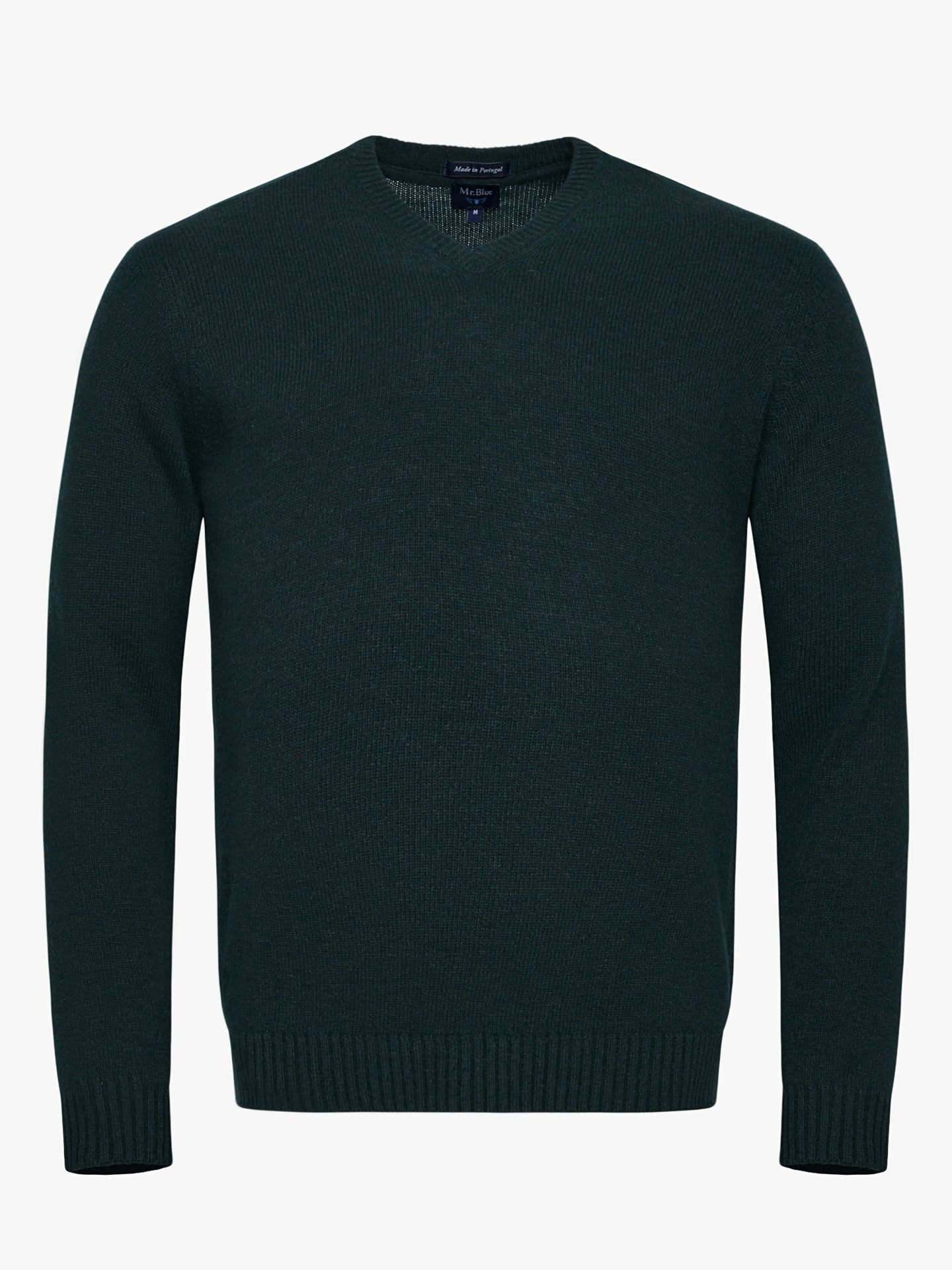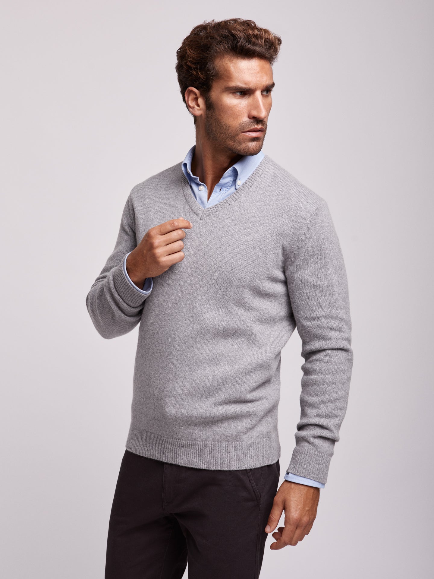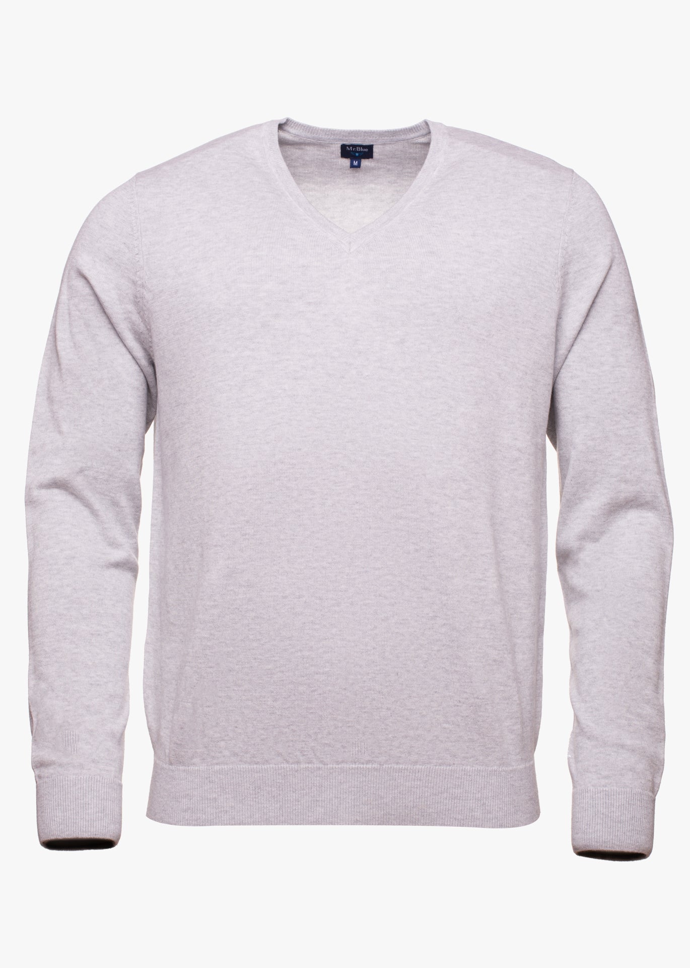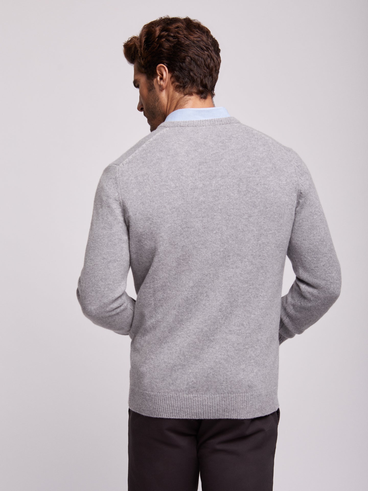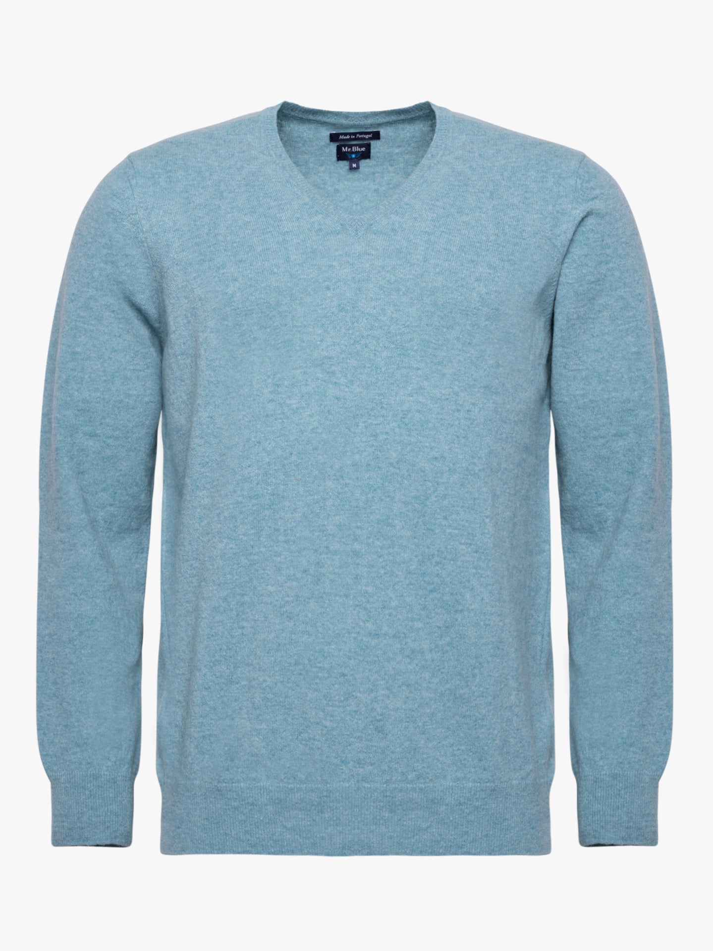 Pullover algodão e caxemira decote em V com cotoveleiras