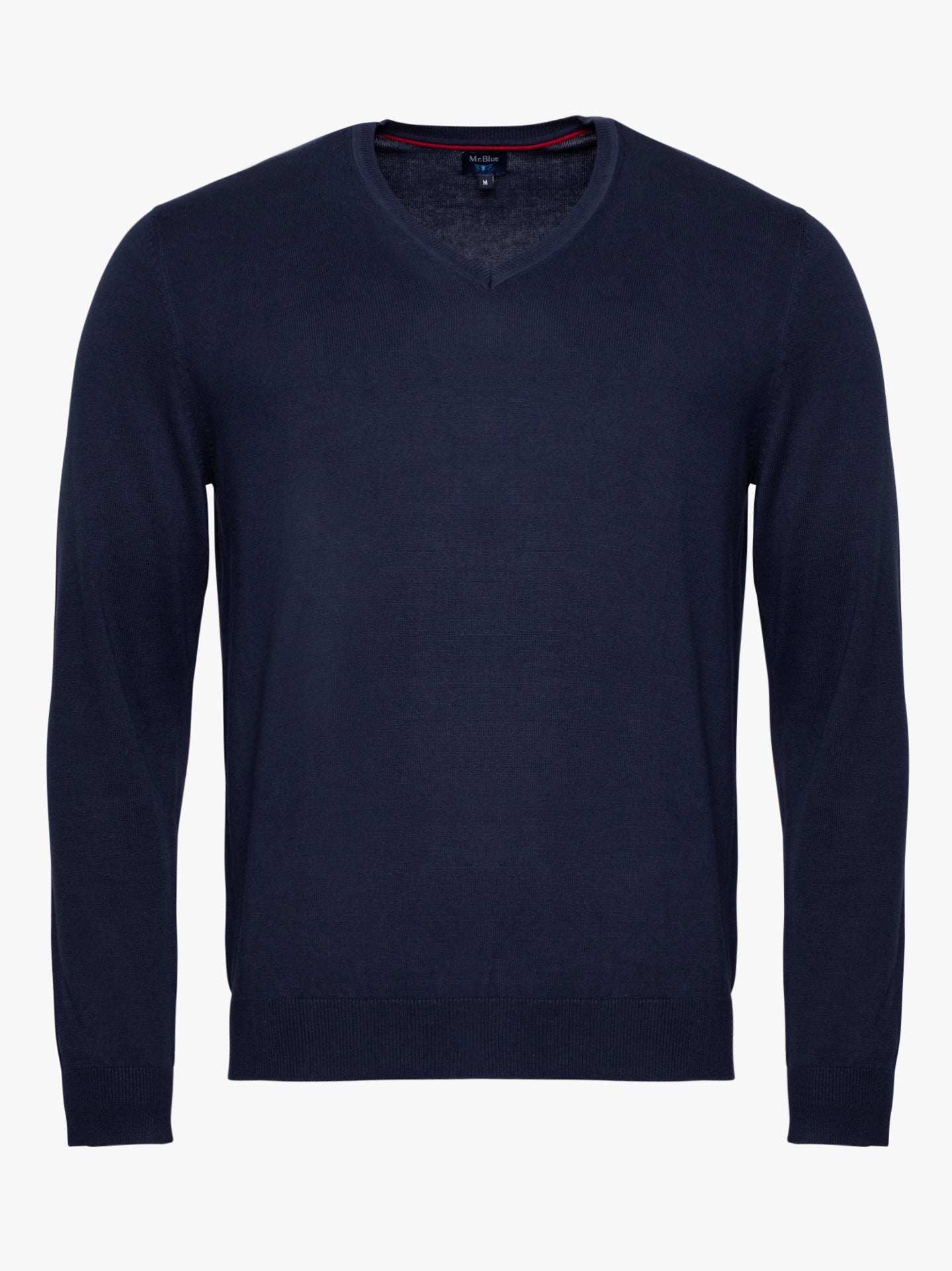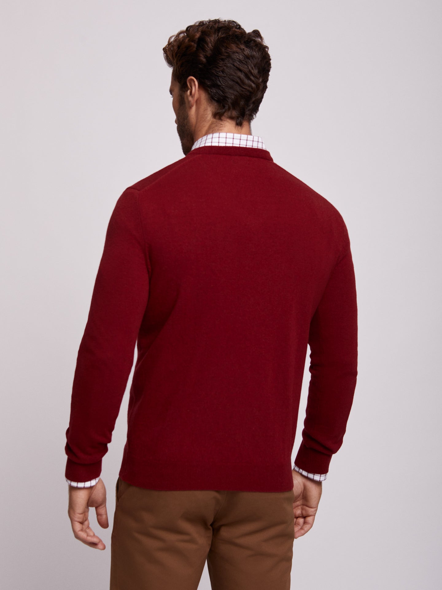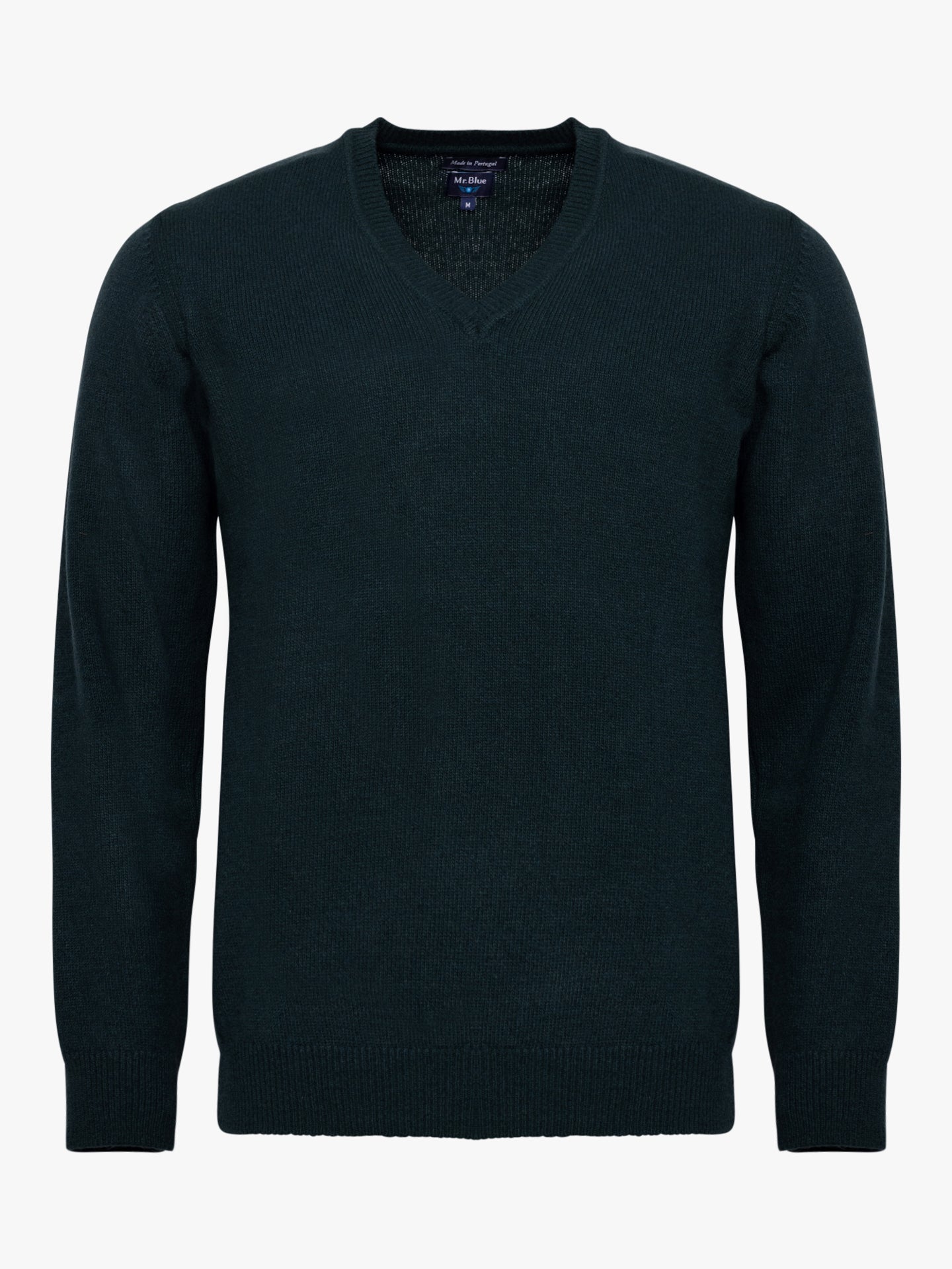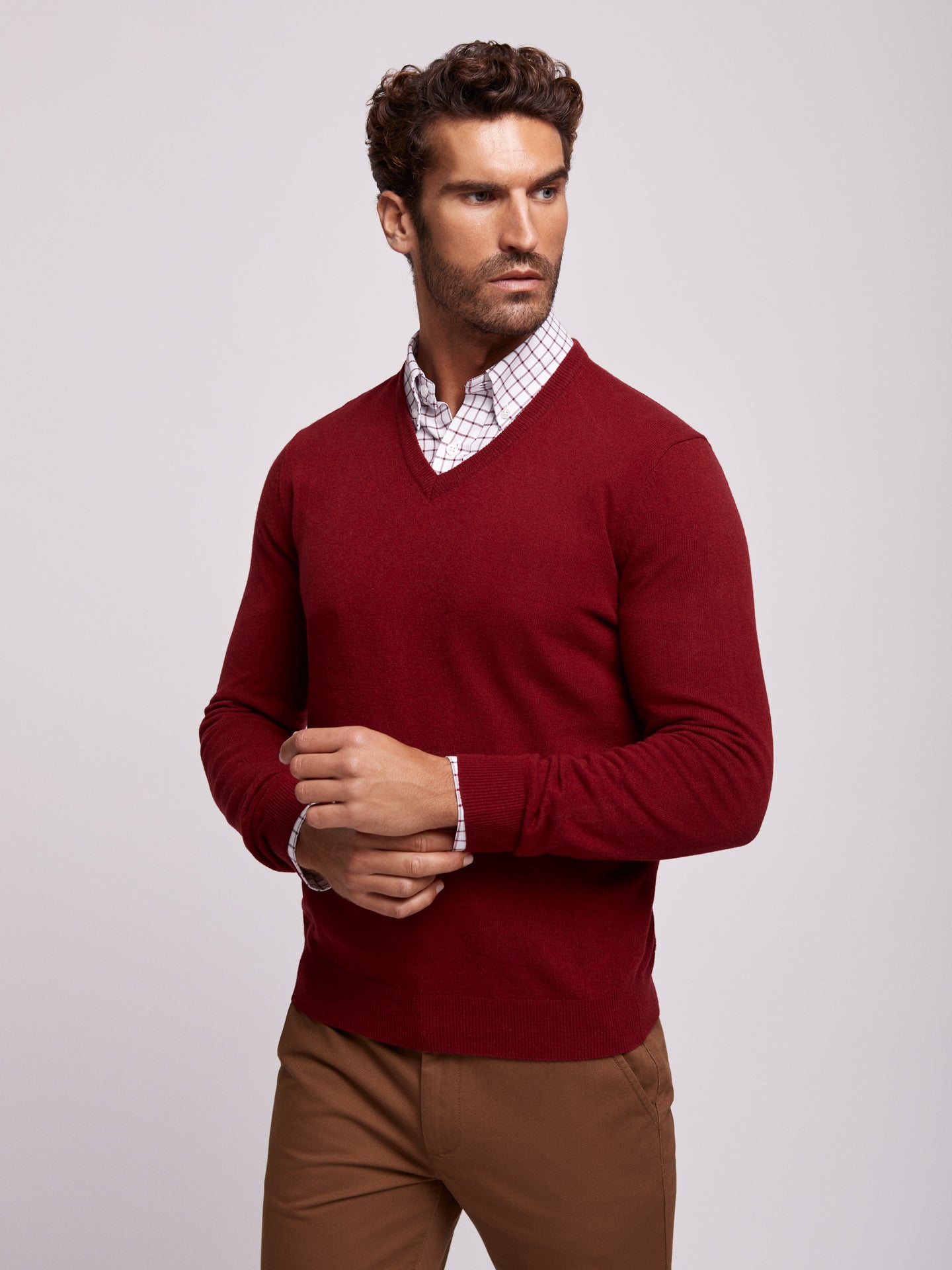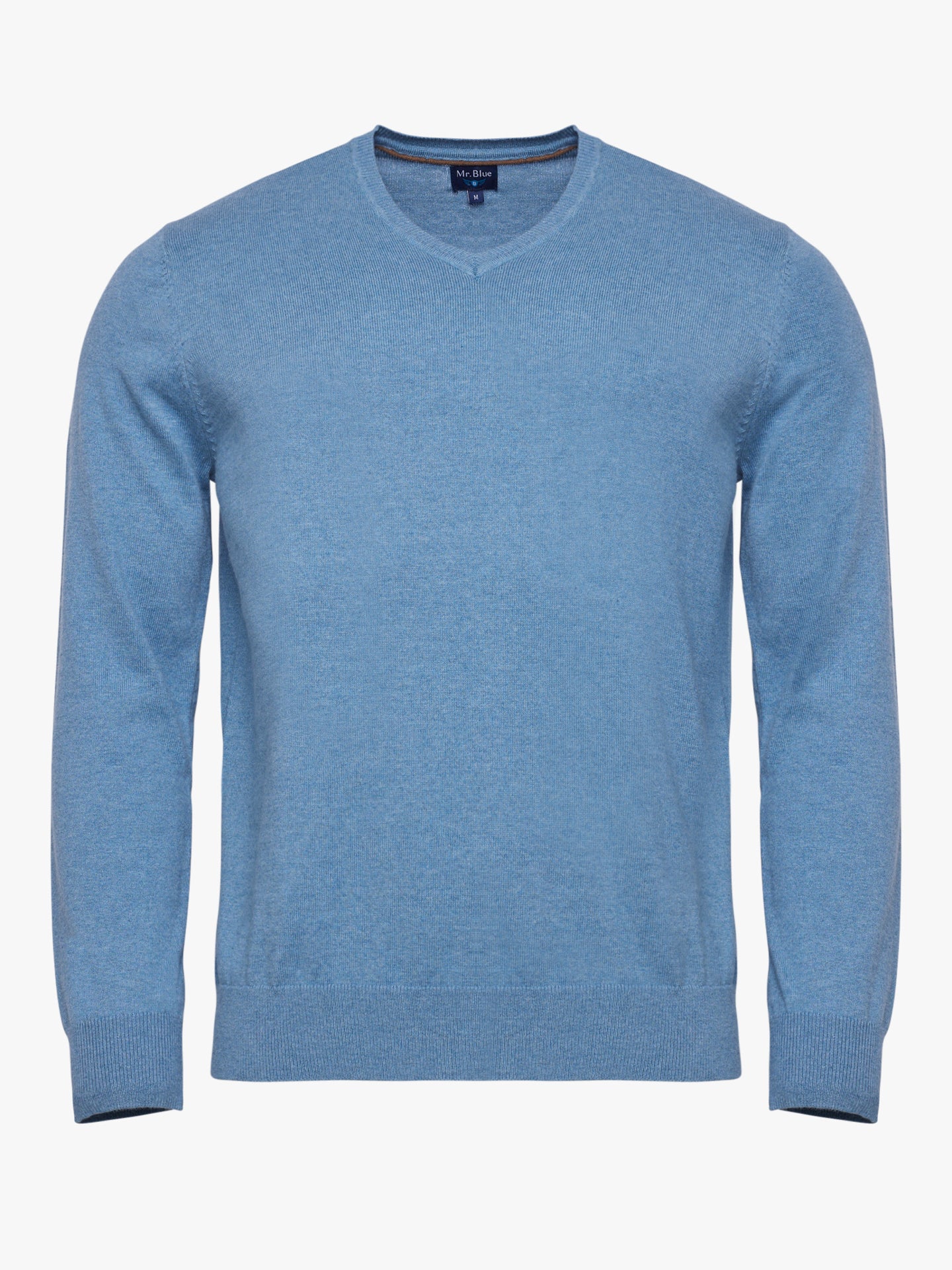 Pullover algodão e caxemira decote em V com cotoveleiras