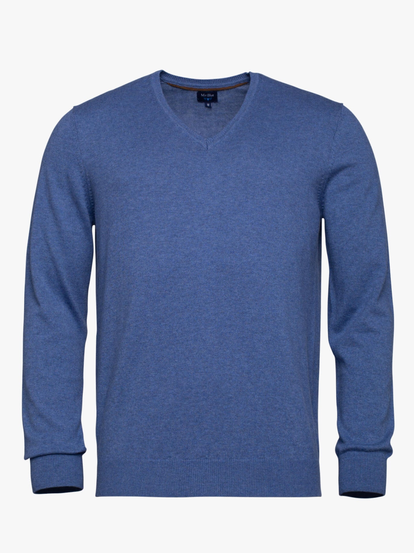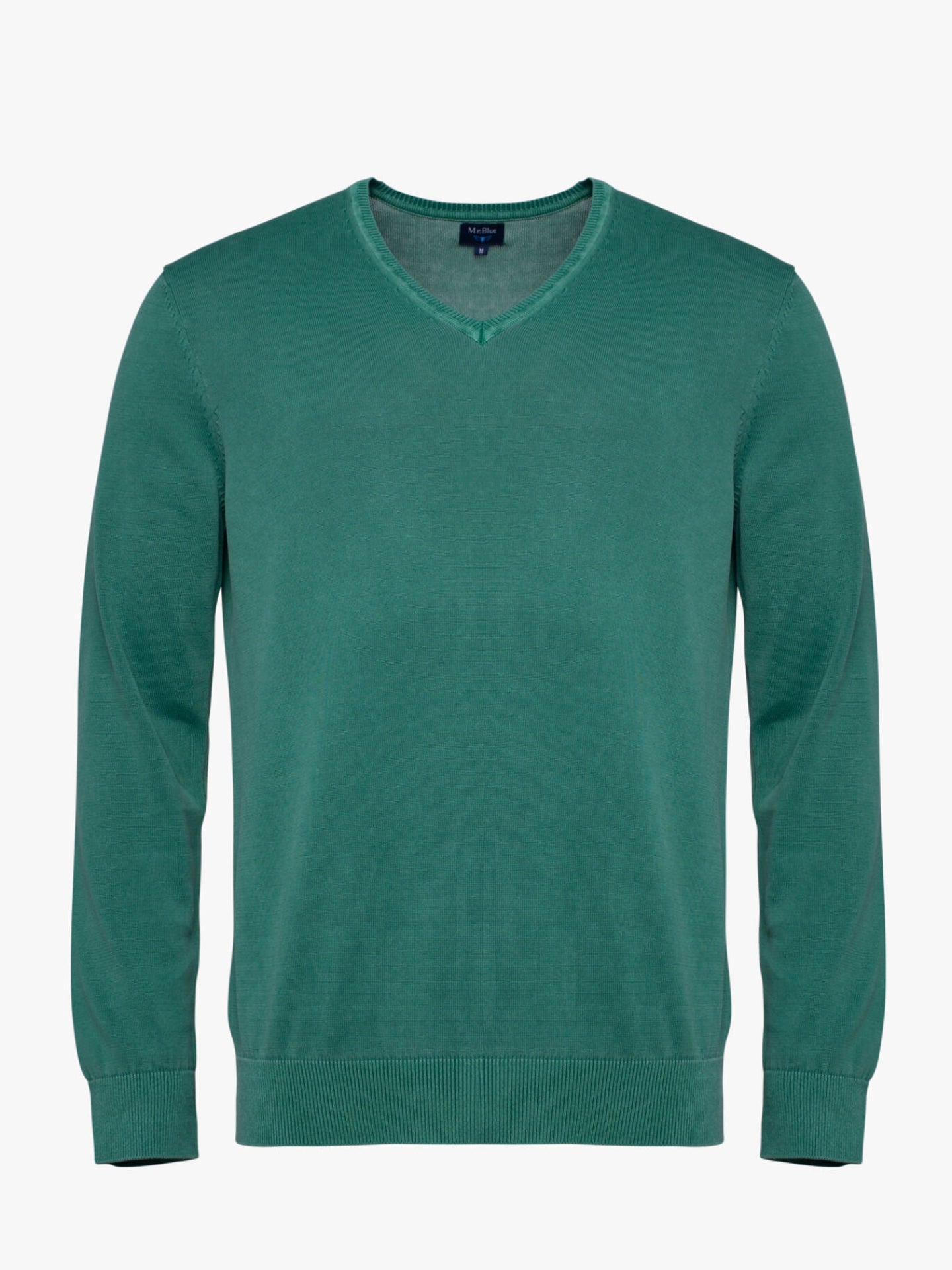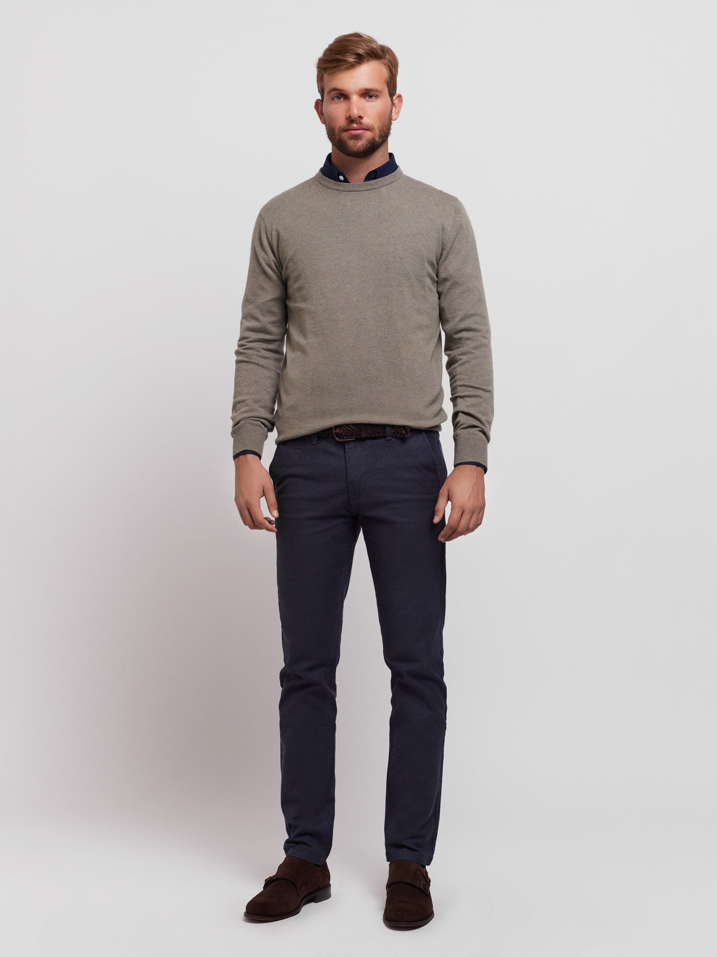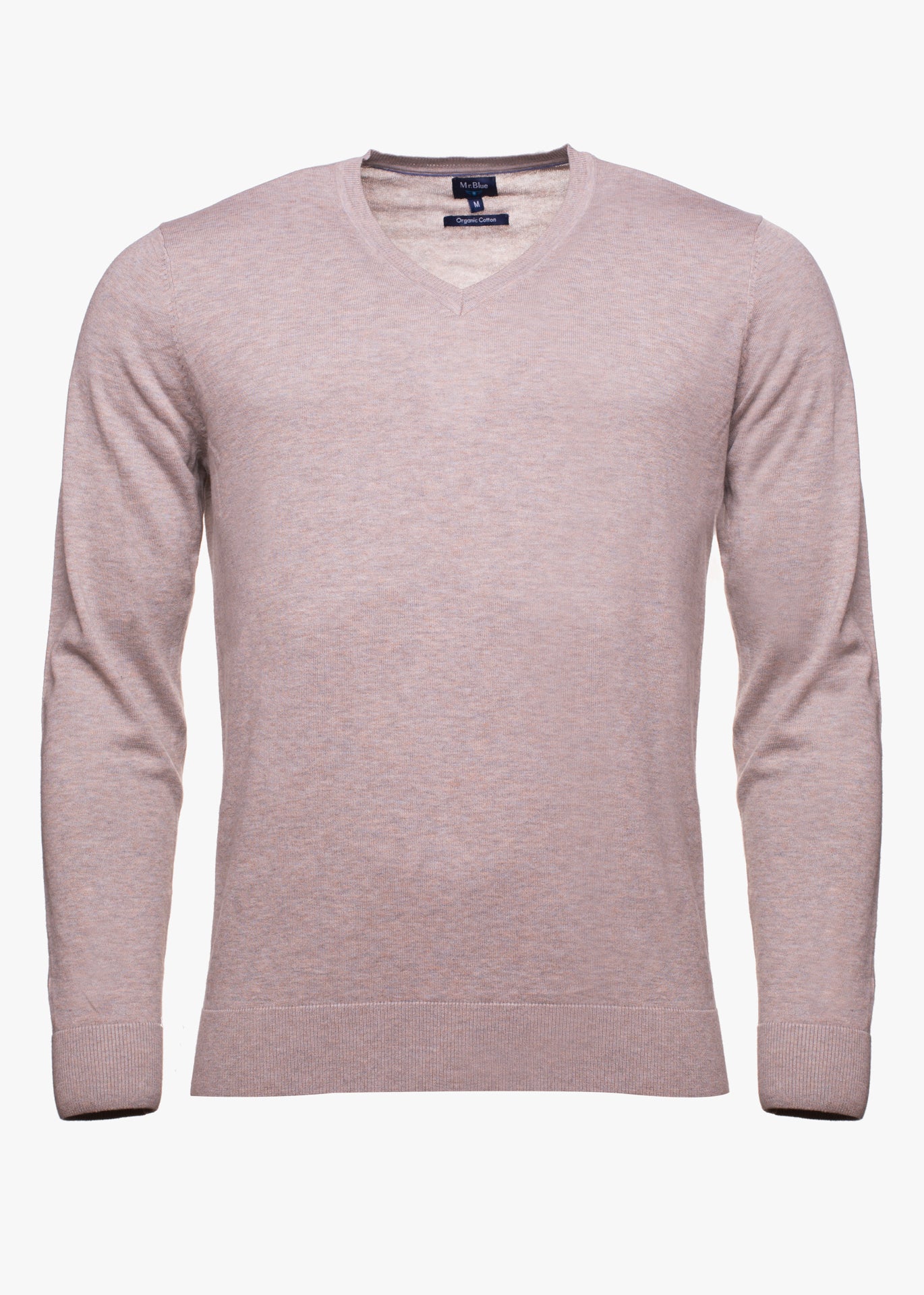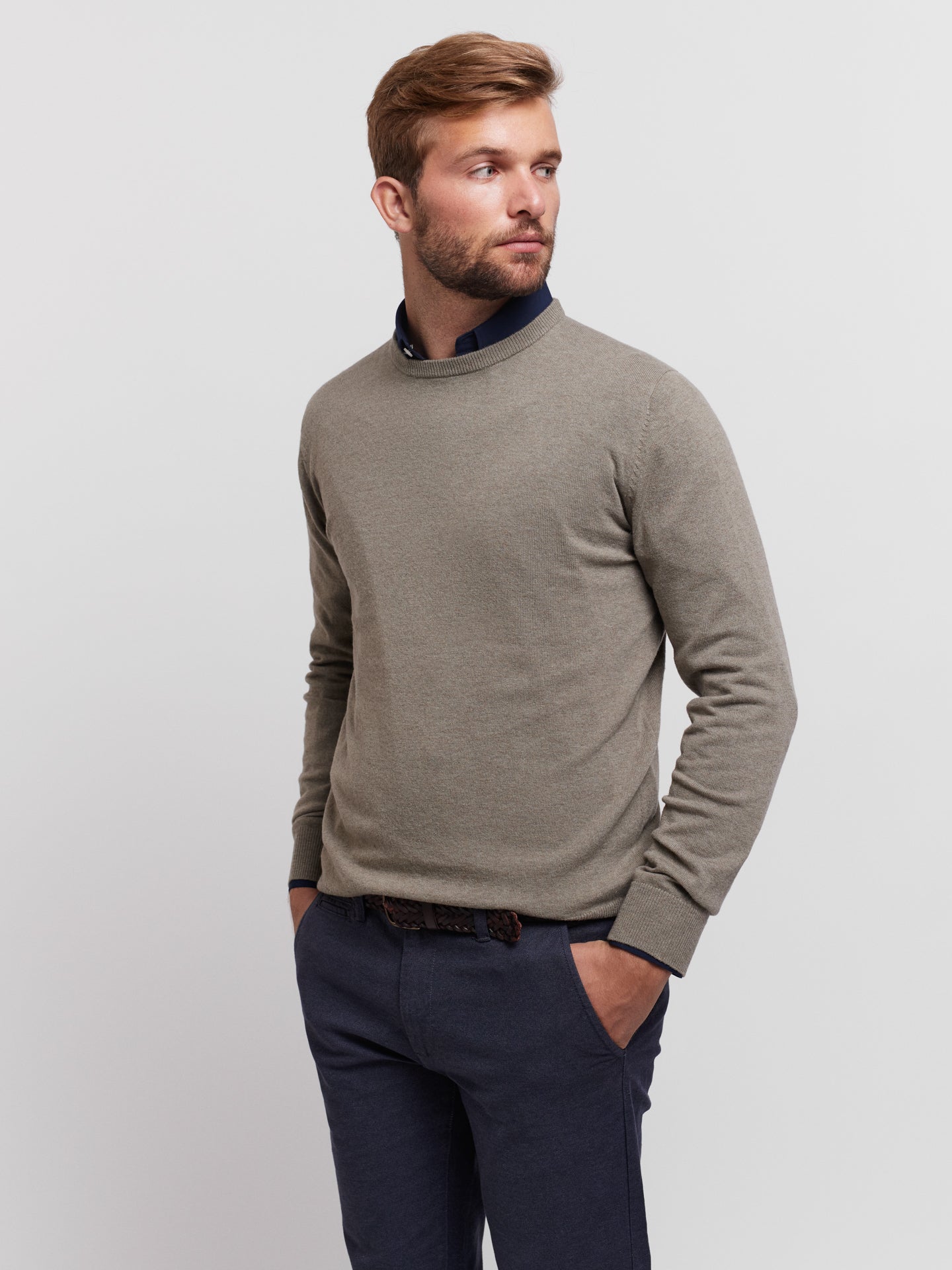 Pullover algodão e caxemira decote em V com cotoveleiras