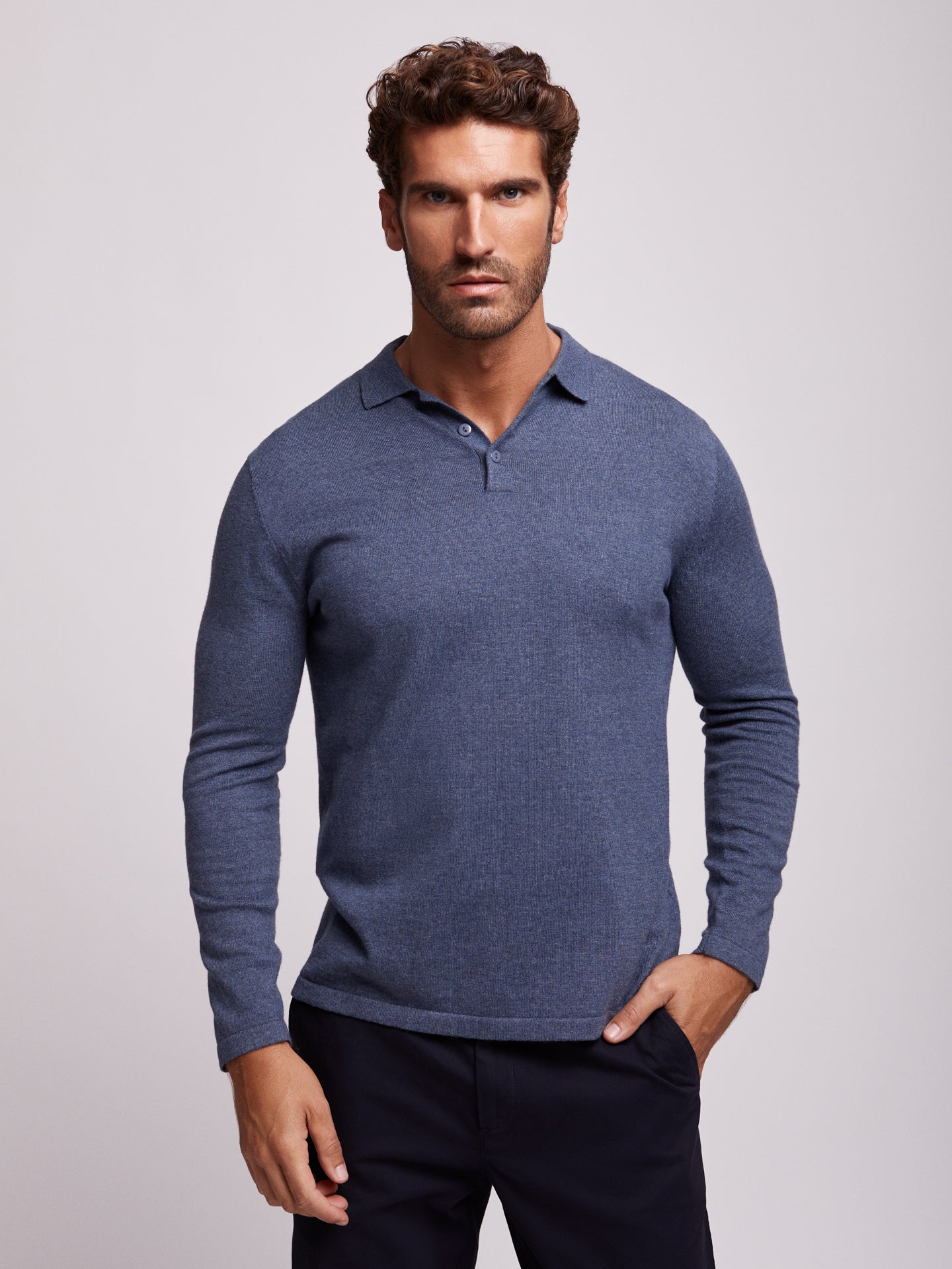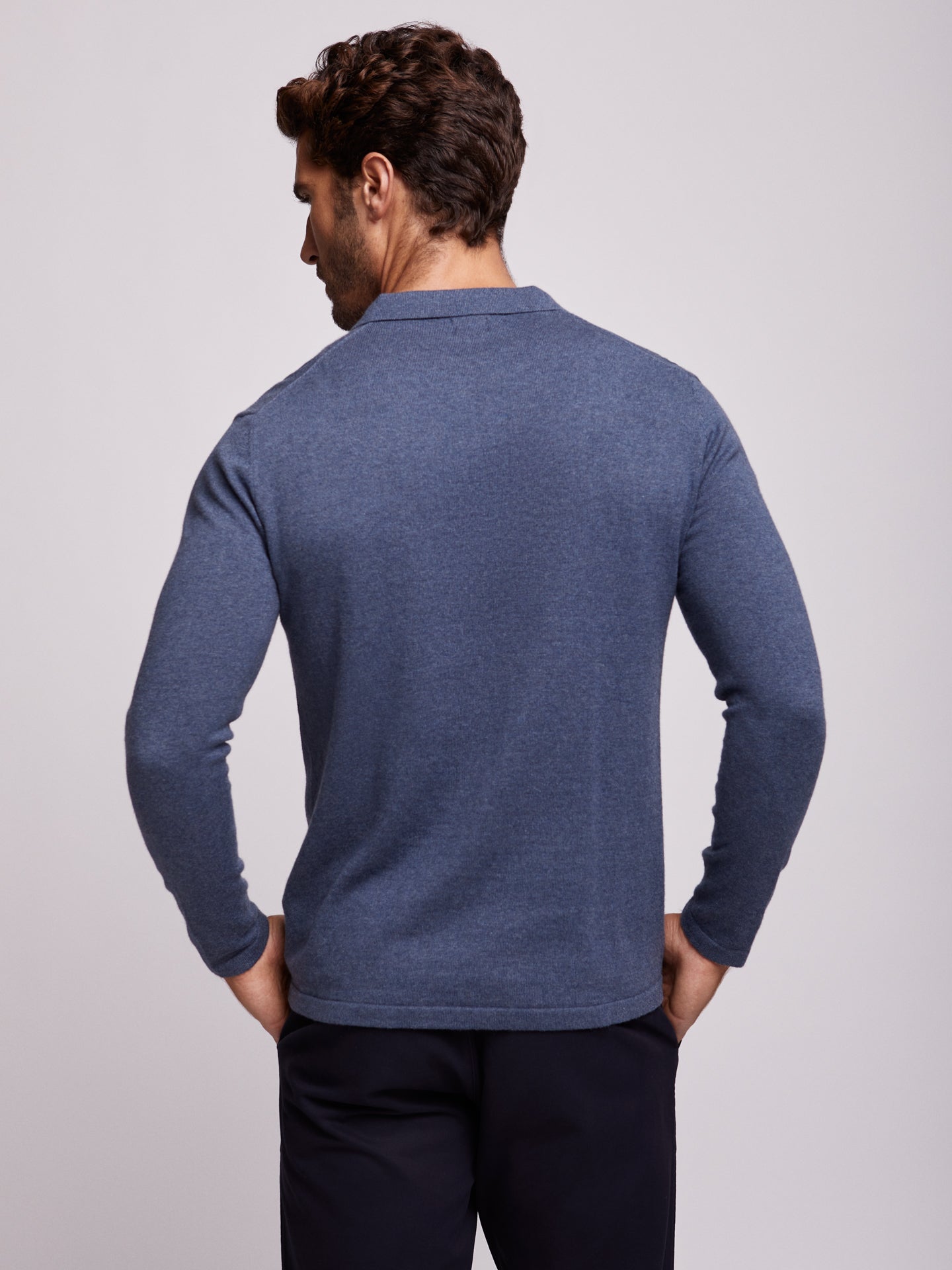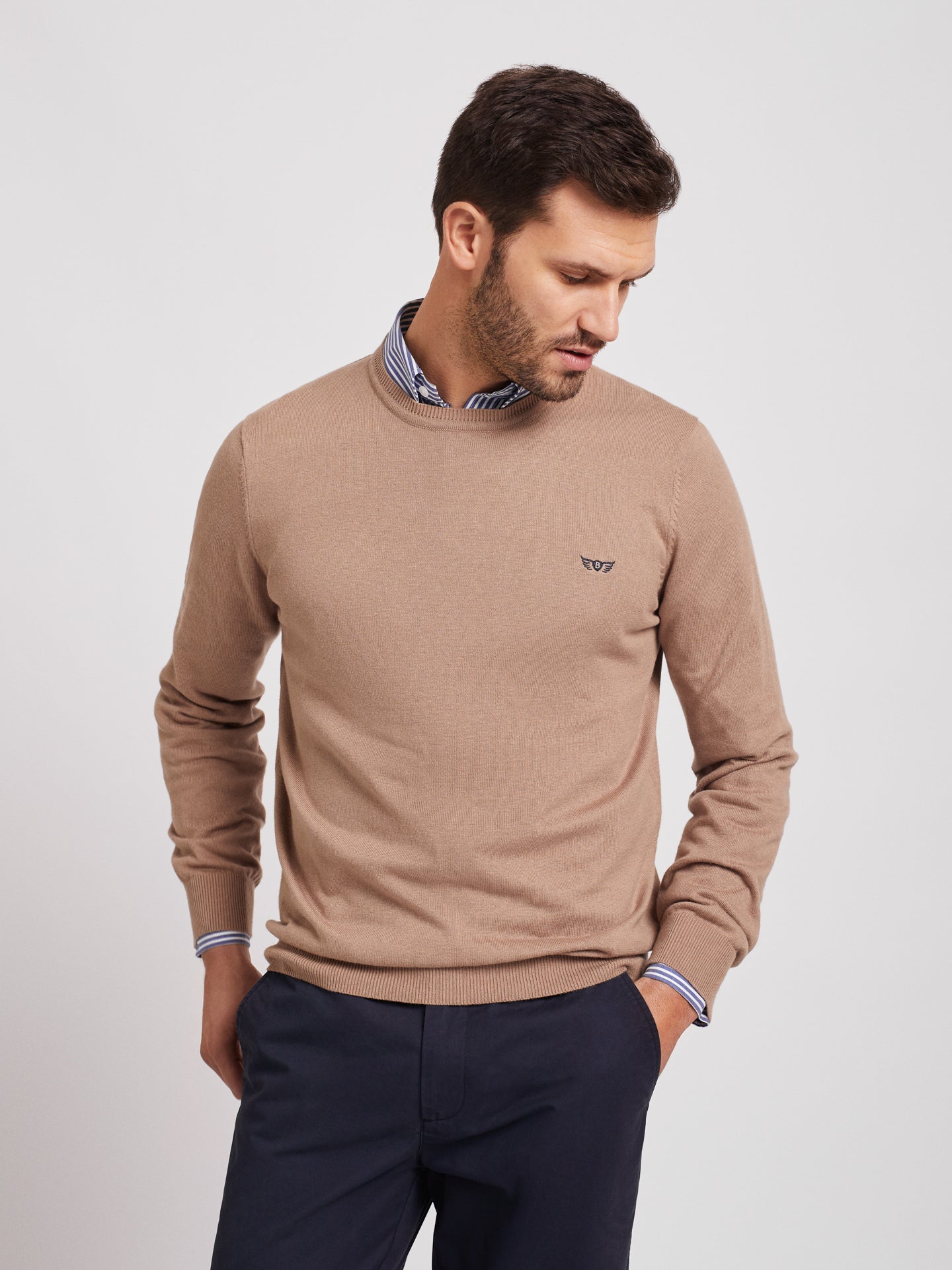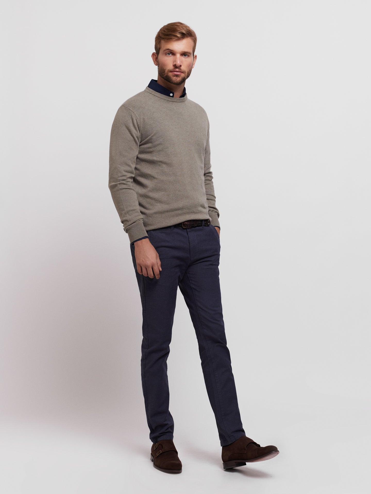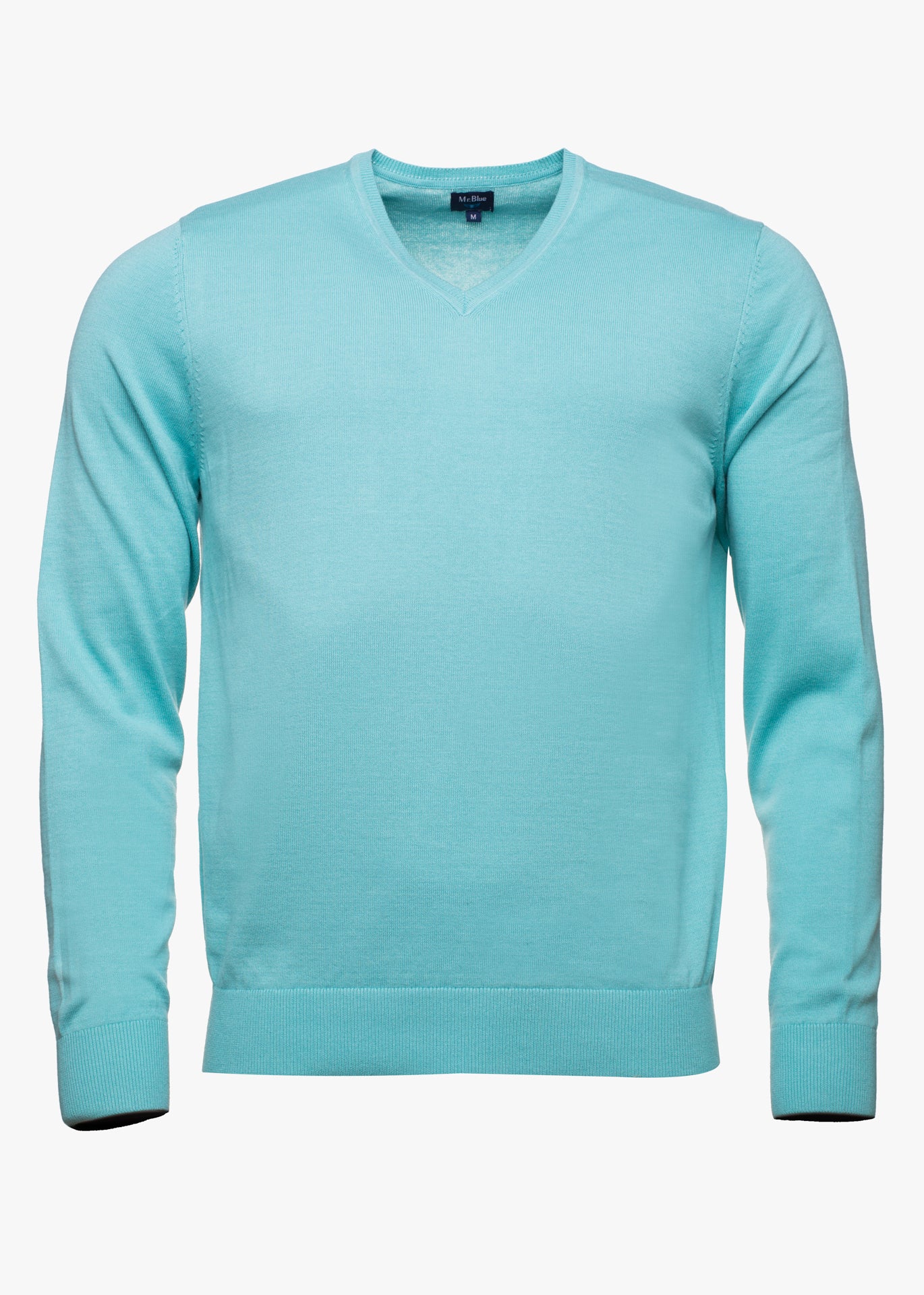 Pullover algodão e caxemira decote em V com cotoveleiras