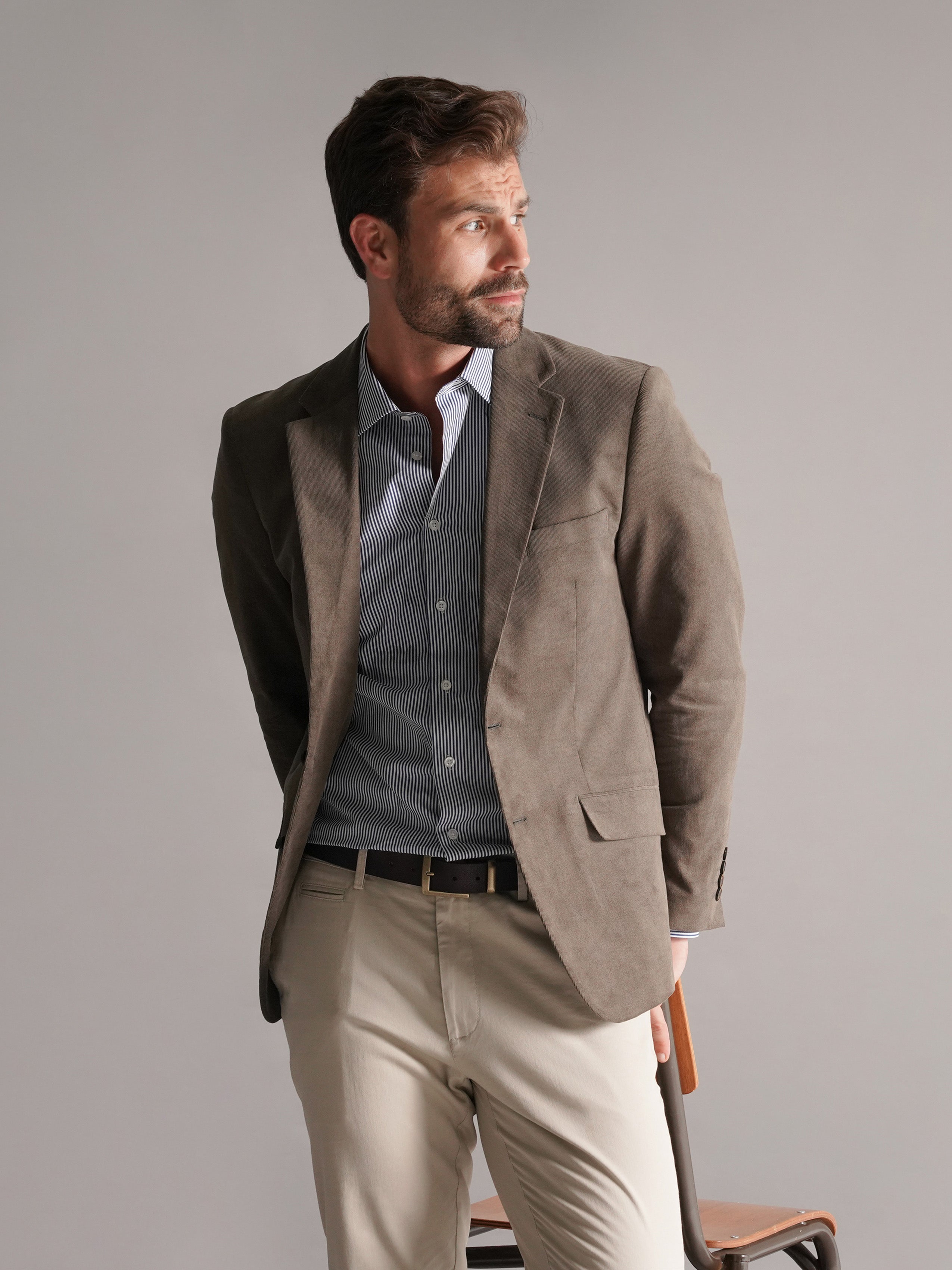 Blazer Algodão Azul Manga Comprida Regular Fit