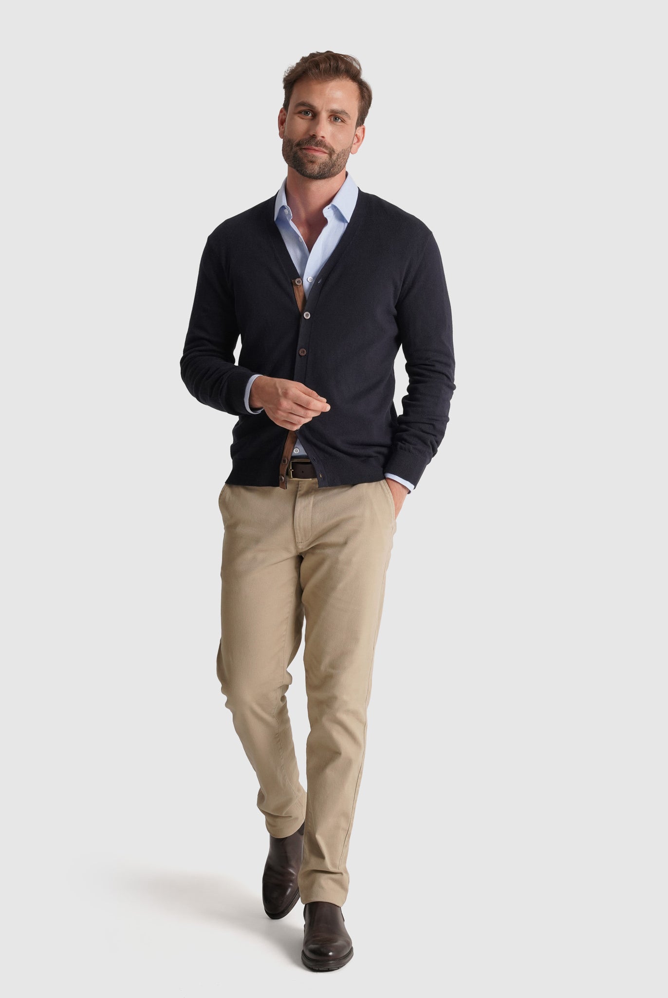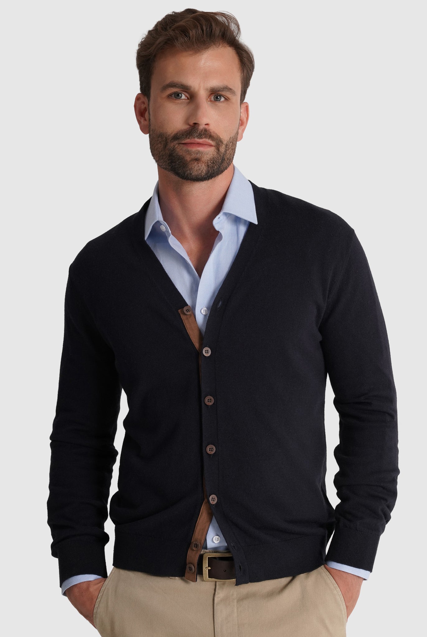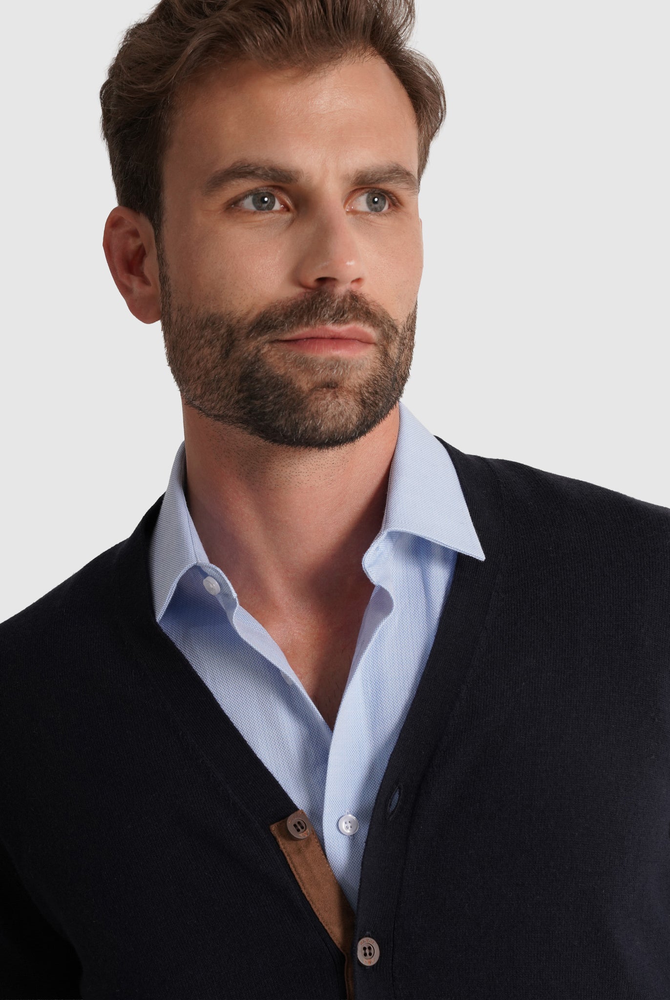 Pullover Lã Azul Com Cotoveleira Regular Fit