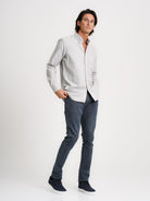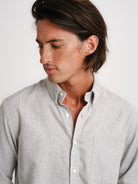Camisa Regular Fit Twill Cinzenta Algodão Liso Com bolso