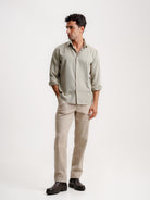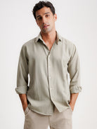 Camisa Regular Fit Dobby Verde Manga Comprida Sem Logo e Sem Bolso Lisa