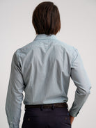 Camisa Slim Fit Oxford Verde Algodão Riscas
