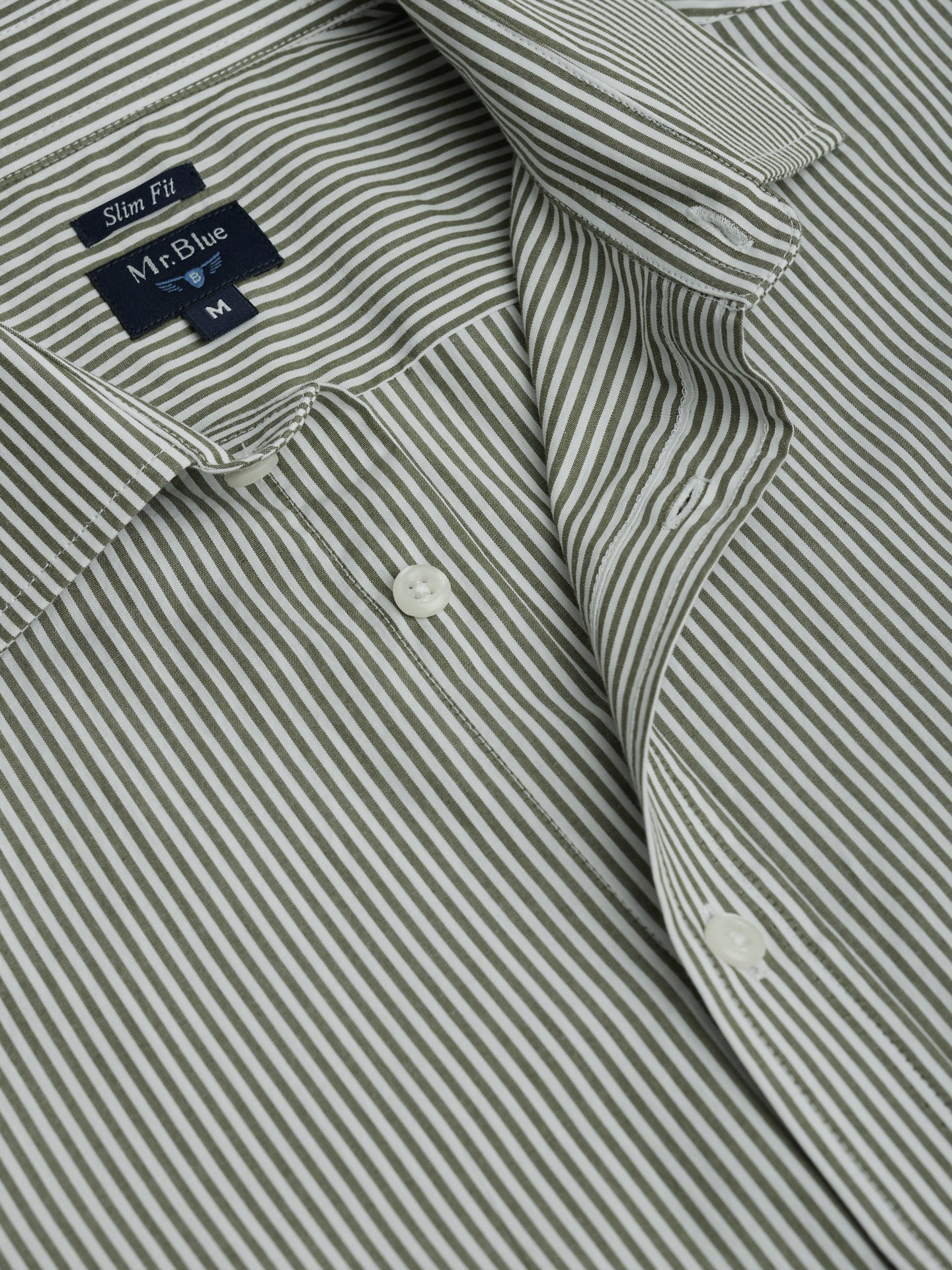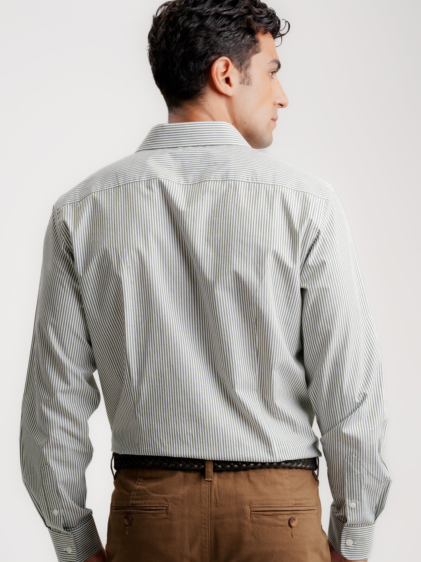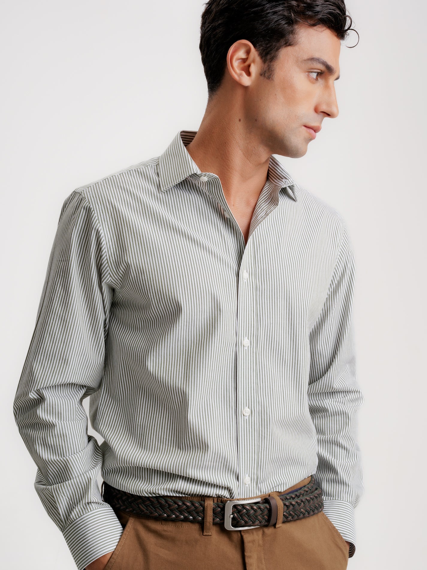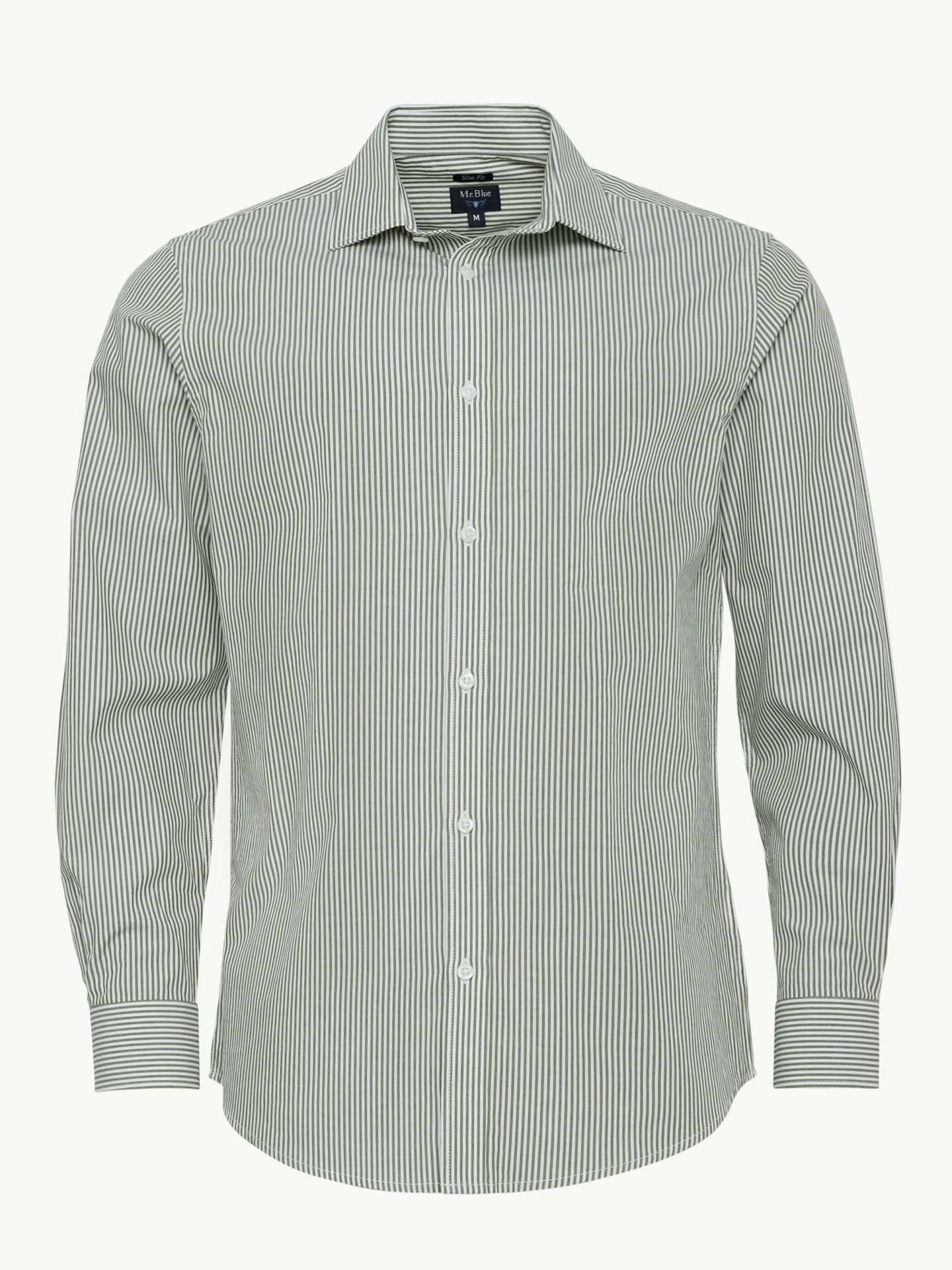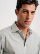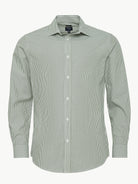 Camisa Slim Fit Popeline Verde Manga Comprida Sem Logo e Sem Bolso Com Riscas
