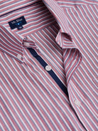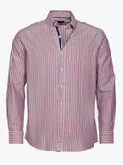 Camisa Regular Fit Oxford Vermelha Algodão Riscas Com bolso