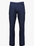 Calças Chinos Homem 100% Algodão Oxford azul escuro com interior do cós mil raias azul claro e riscas azul denim. Detalhe bolso traseiro em oxford azul médio. Corte Tailored Fit. Muito confortáveis, são a escolha certa para os dias m