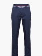 Calças Chinos Homem 100% Algodão azul escuro com textura e detalhe no cós. Corte Tailored Fit. Muito confortáveis, são a escolha certa para os dias mais quentes.