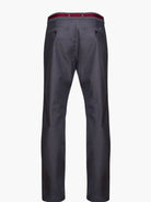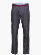 Calças Chinos Homem 100% Algodão Oxford cinza com tape no cós em bordeaux. Interior cós mil raias e riscas azul e branco. Corte Tailored Fit. Muito confortáveis, são a escolha certa para os dias mais quentes.