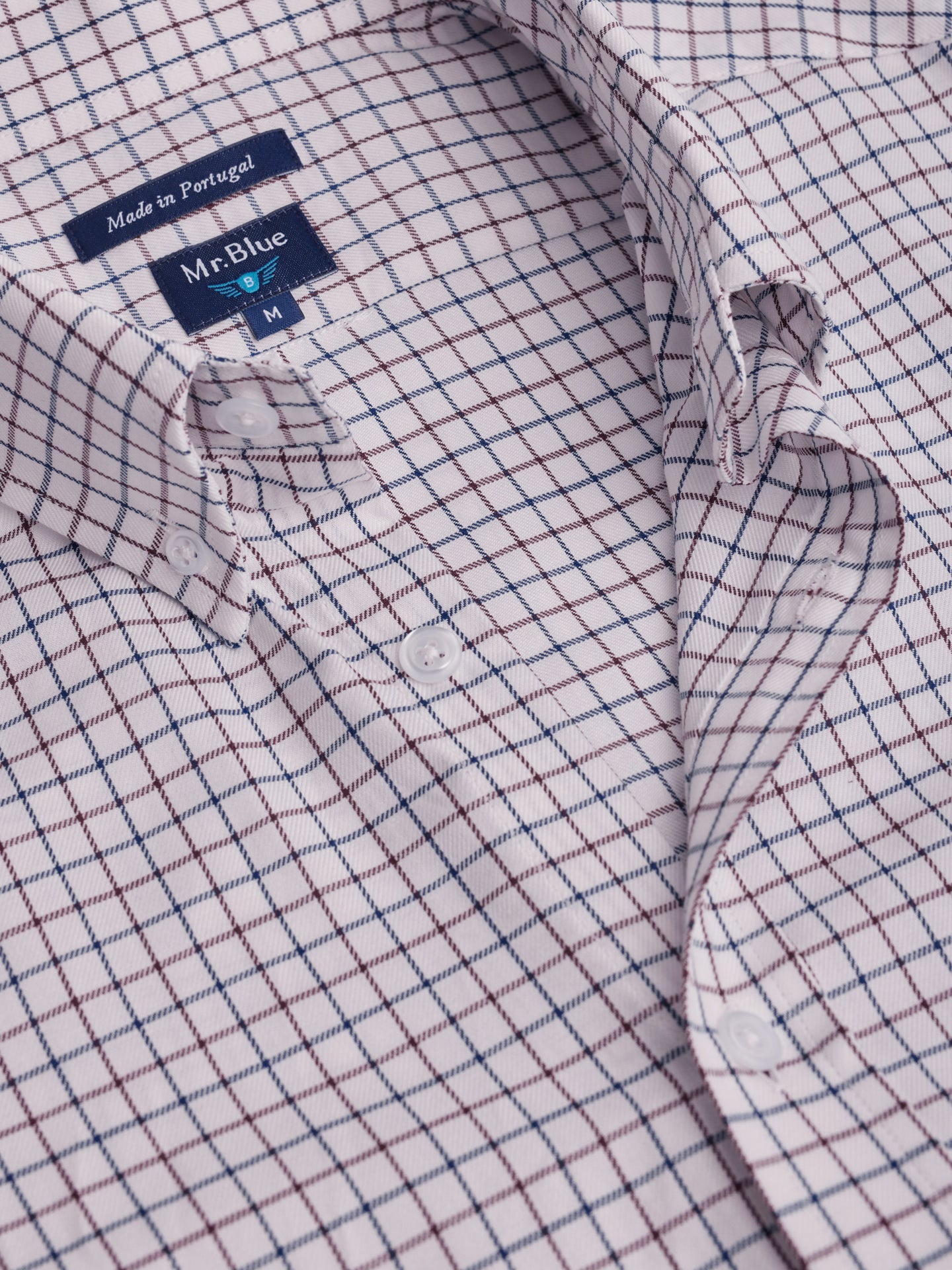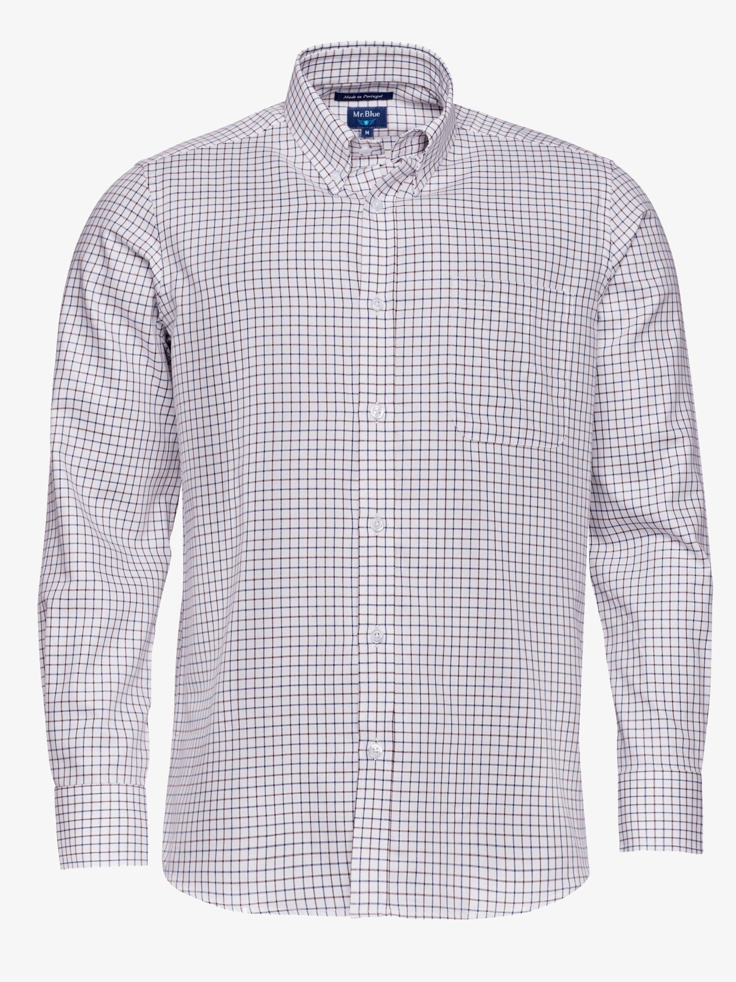 Camisa Regular Fit Castanha Quadrados Com Bolso