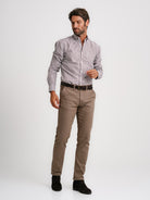 Camisa Regular Fit Popeline Castanha Algodão Riscas Com bolso