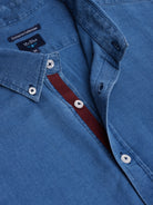 Camisa Regular Fit Estruturada Azul Algodão Liso Com logo
