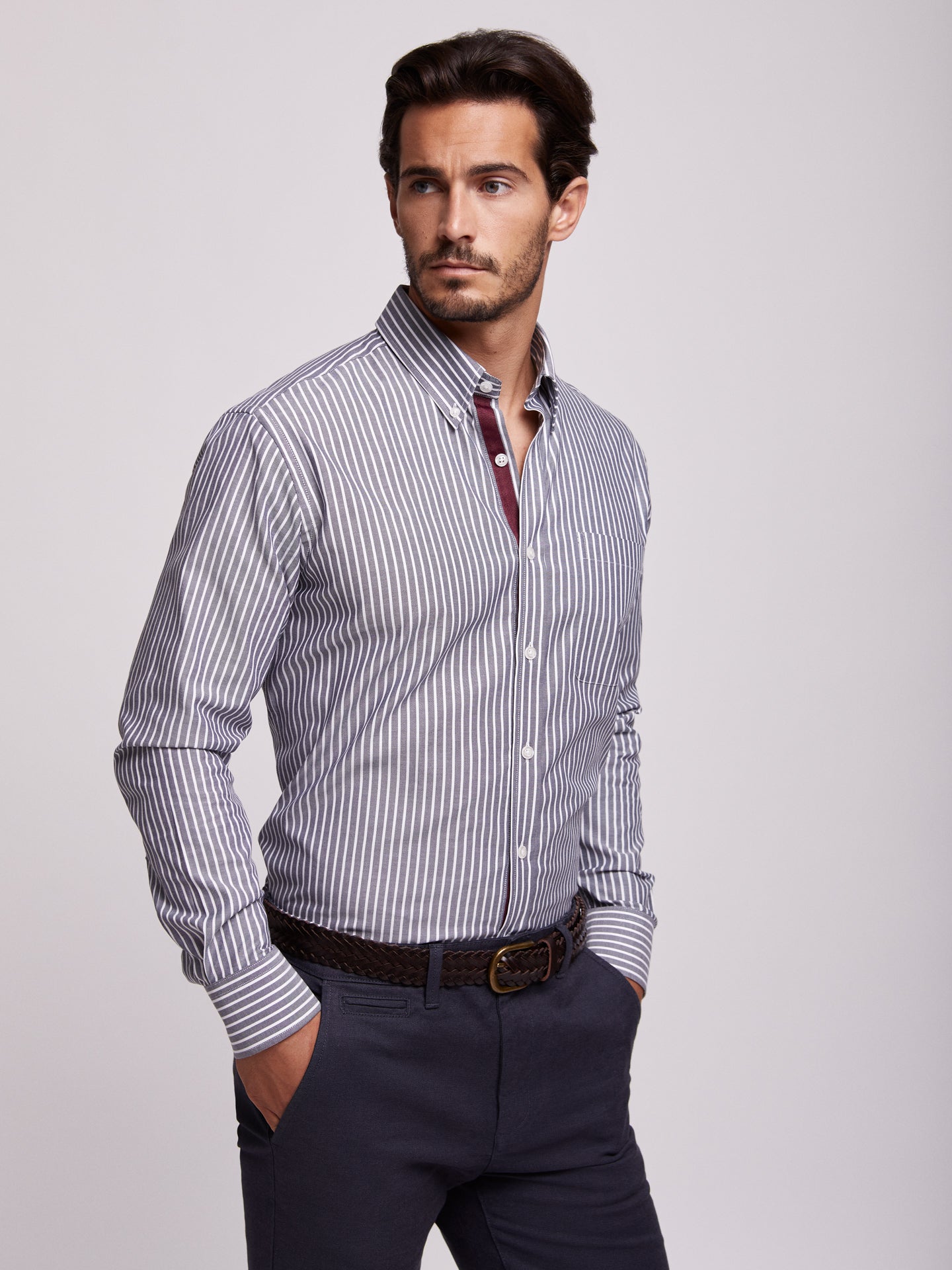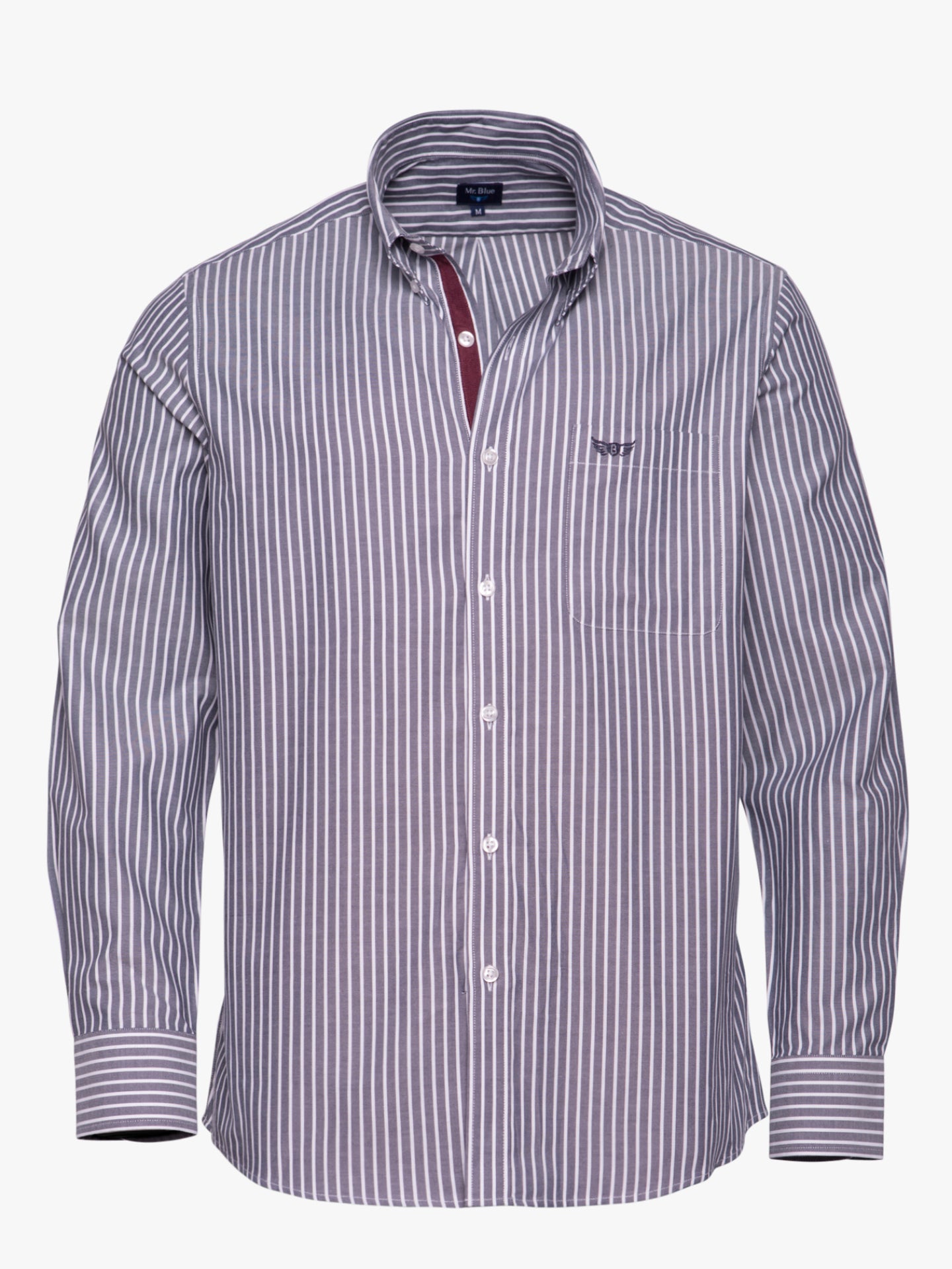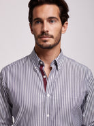 Camisa Regular Fit Cinzenta Manga CompridaManga Comprida Riscas